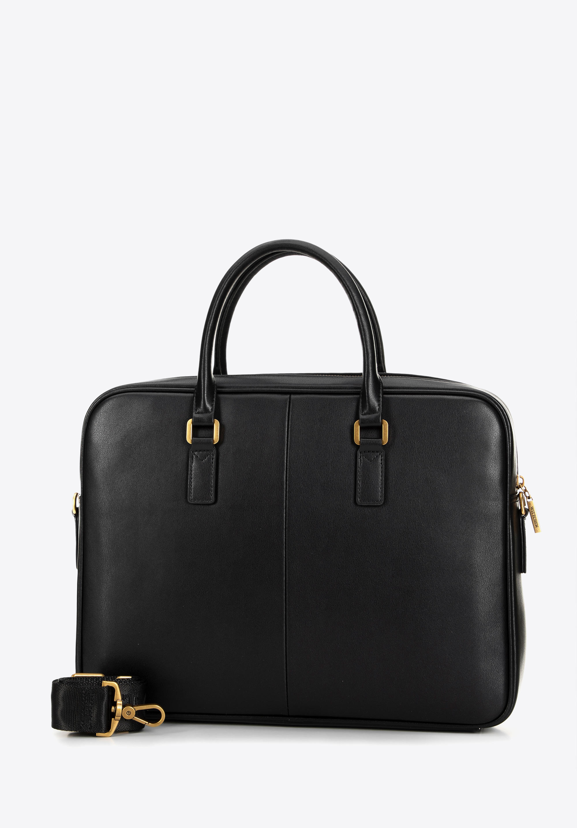 Tato dámská taška na notebook je vyrobena z vysoce kvalitní přírodní kůže, která kombinuje odolnost s luxusním vzhledem. Díky pevnému dnu a dvěma ergonomickým rukojetím poskytuje dlouhodobý komfort po celý den. Interiér byl navržen s ohledem na praktičnost, obsahuje kapsu na zip a speciální přihrádku na notebook s páskem na suchý zip , ideální pro zařízení o rozměrech až 19 cm x 31 cm . Navzdory svému elegantnímu designu nabízí brašna na notebook dostatečnou kapacitu pro notebook a nezbytné příslušenství.