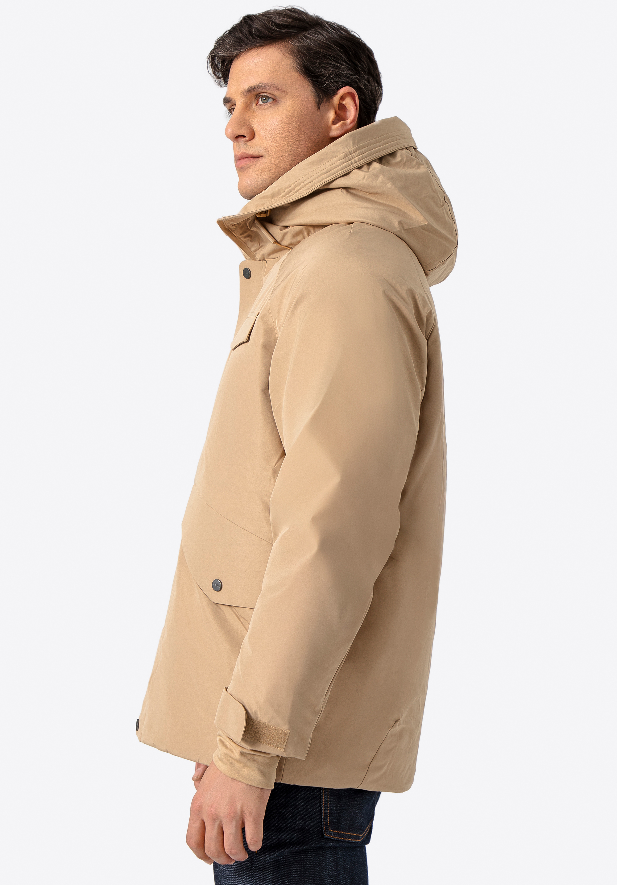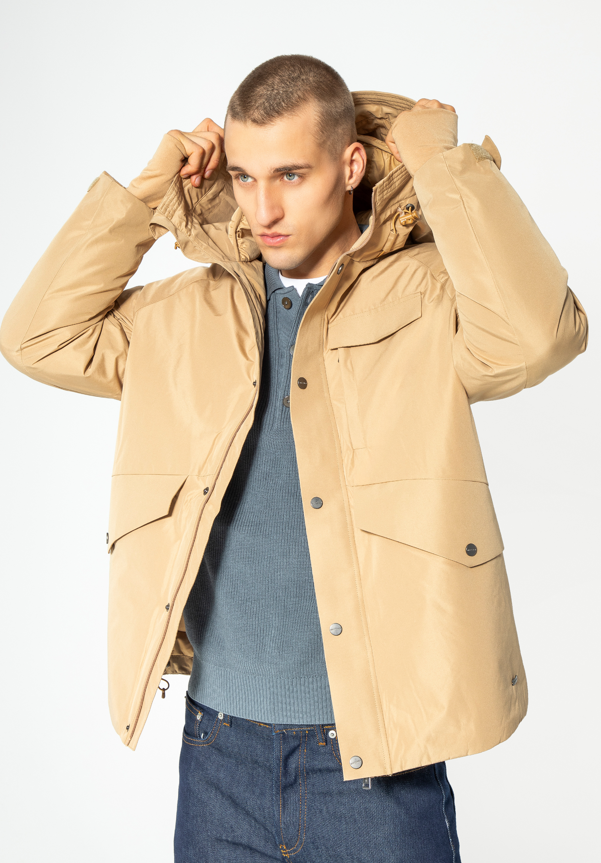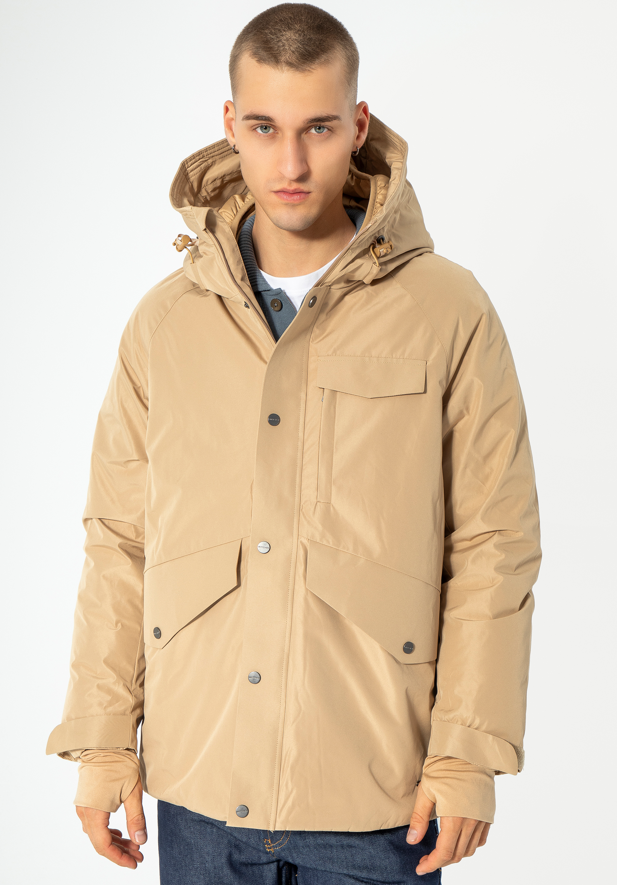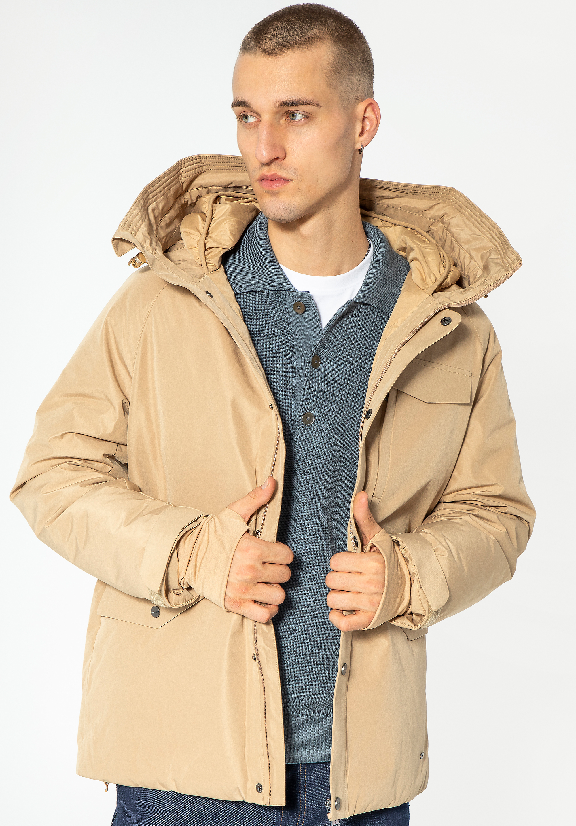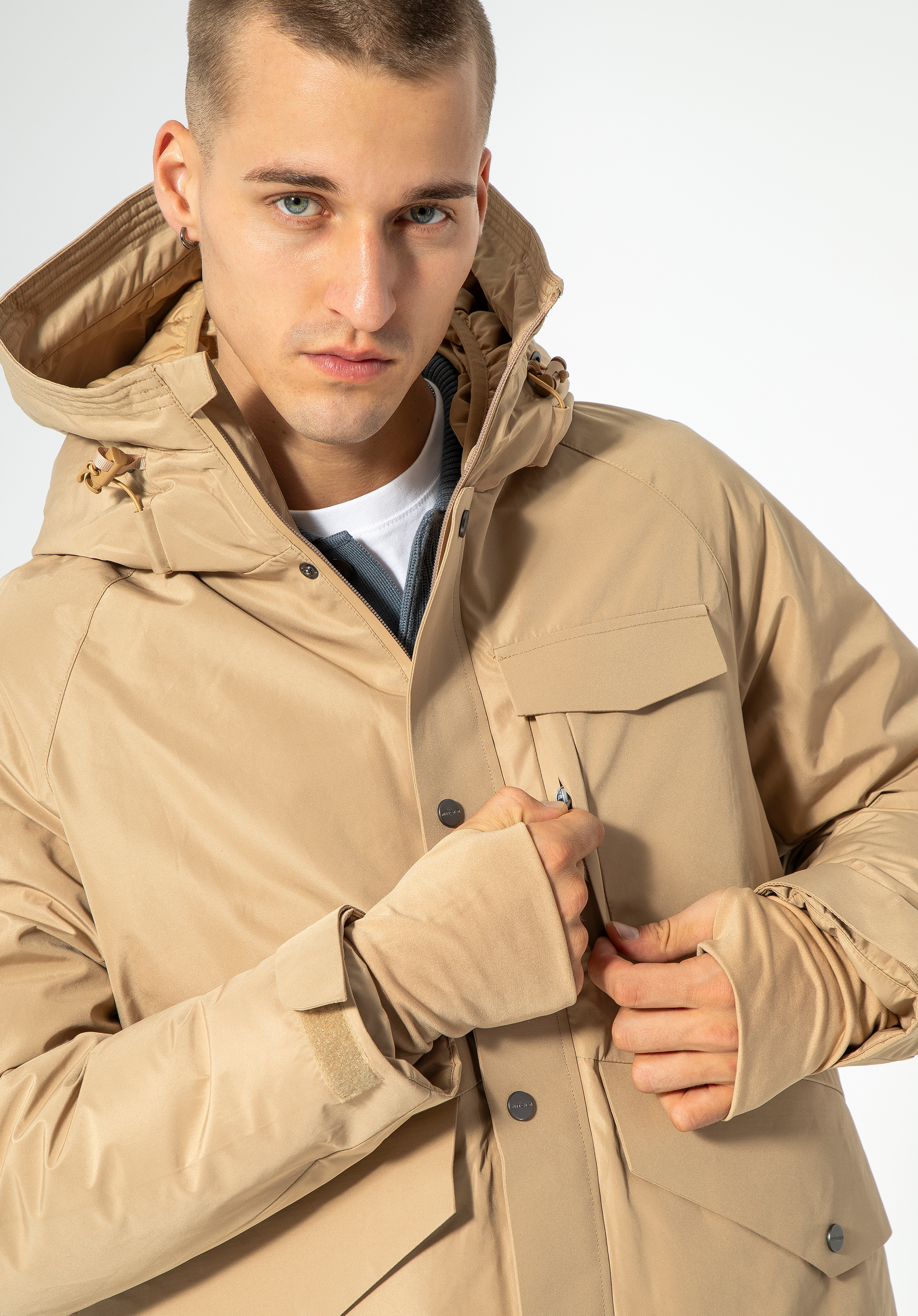 Zde je praktický model zimní bundy s jednoduchým tvarem a mnoha praktickými řešeními. Je vyrobena z odolného polyesteru a měkkou, zavinovací výplní. Vnitřní kapuce a podšívka mají pohodlné prošívání. Rukávy mají žebrovanou manžetu s otvorem na palec - užitečné řešení známé ze sportovního oblečení. Manžety můžete utáhnout také suchým zipem. Pánská zimní bunda s dvojitou kapucí udrží vás v teple a bude stylová po mnoho zim.
