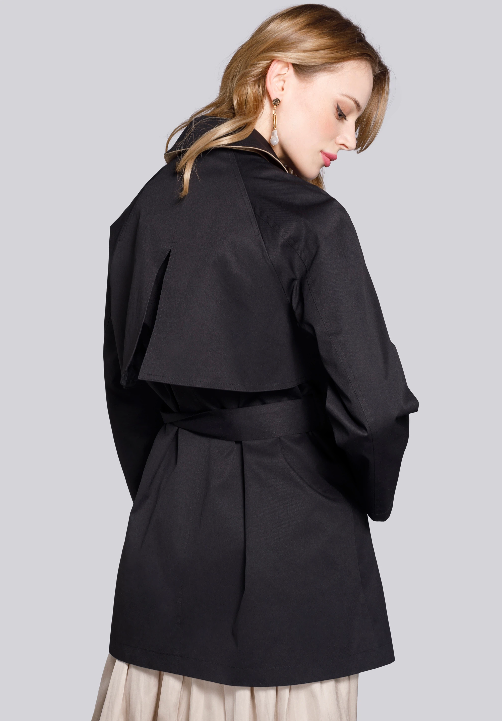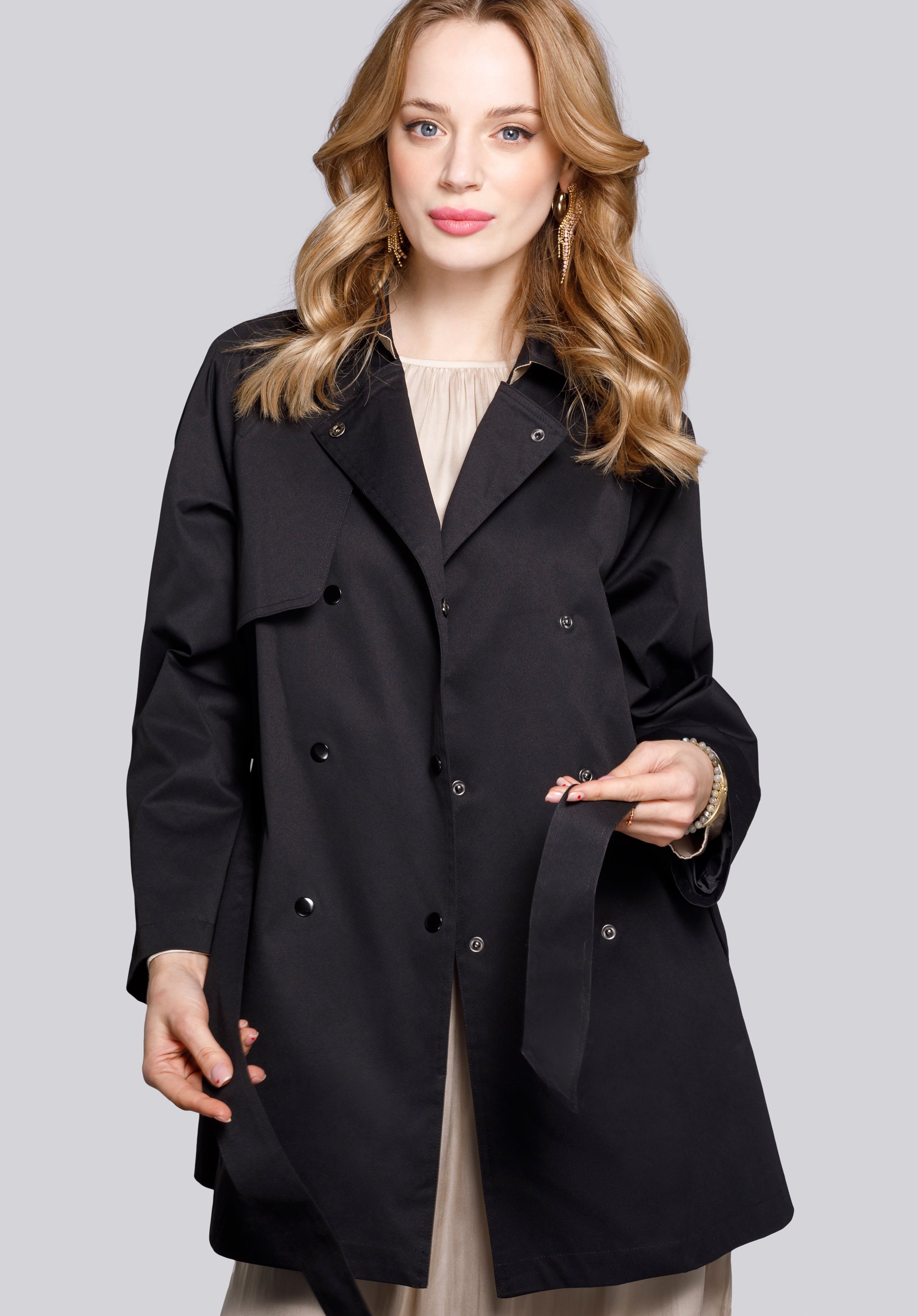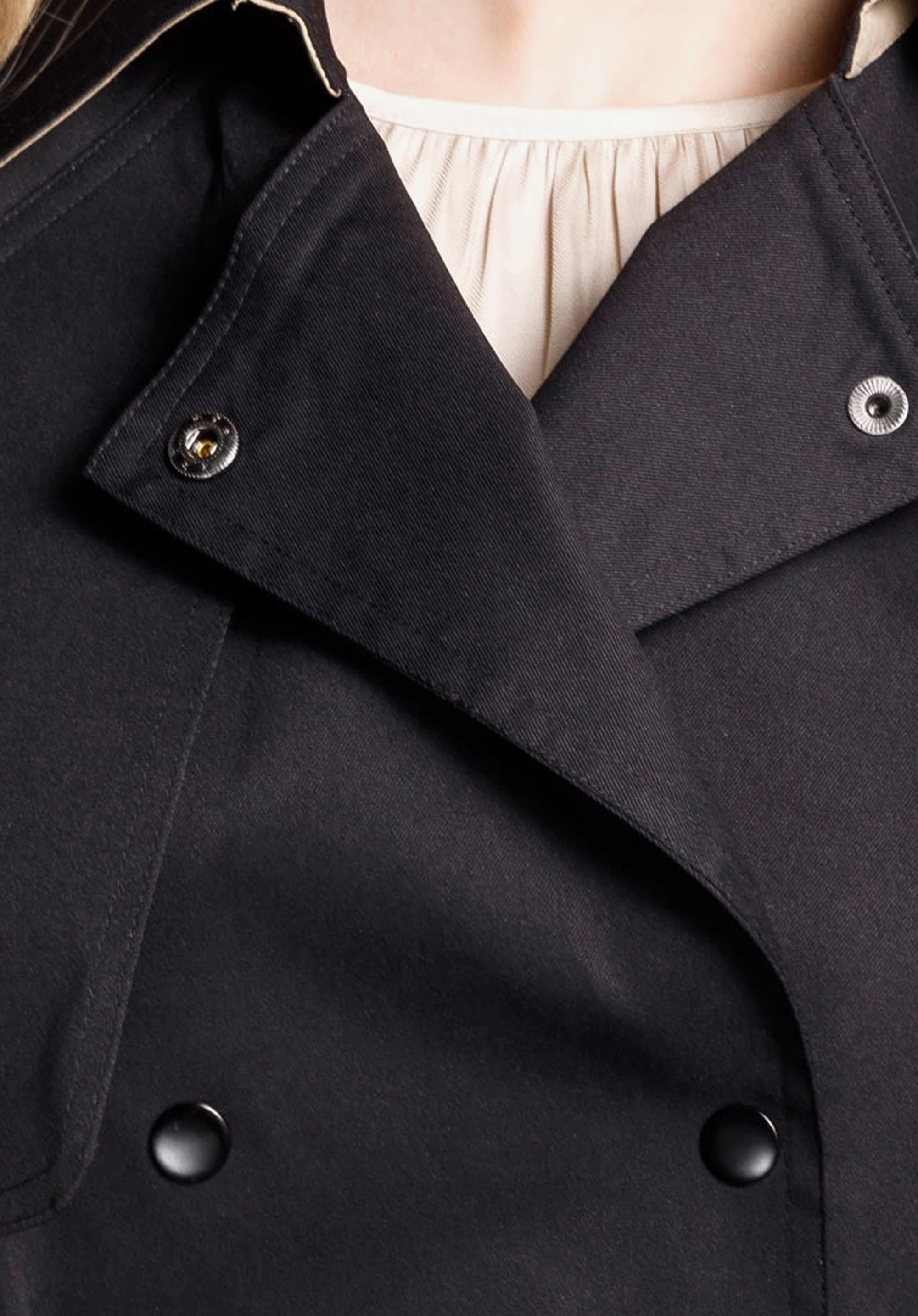 V této stylové bundě knoflíky byly nahrazeny dvěma řadami patentů. Velmi prakticky je velký límec, který můžete si obléknout nebo postavit. Tato krátká dámská bunda s dvojitým zapínáním bude po léta klasickým doplňkem vašeho šatníku.