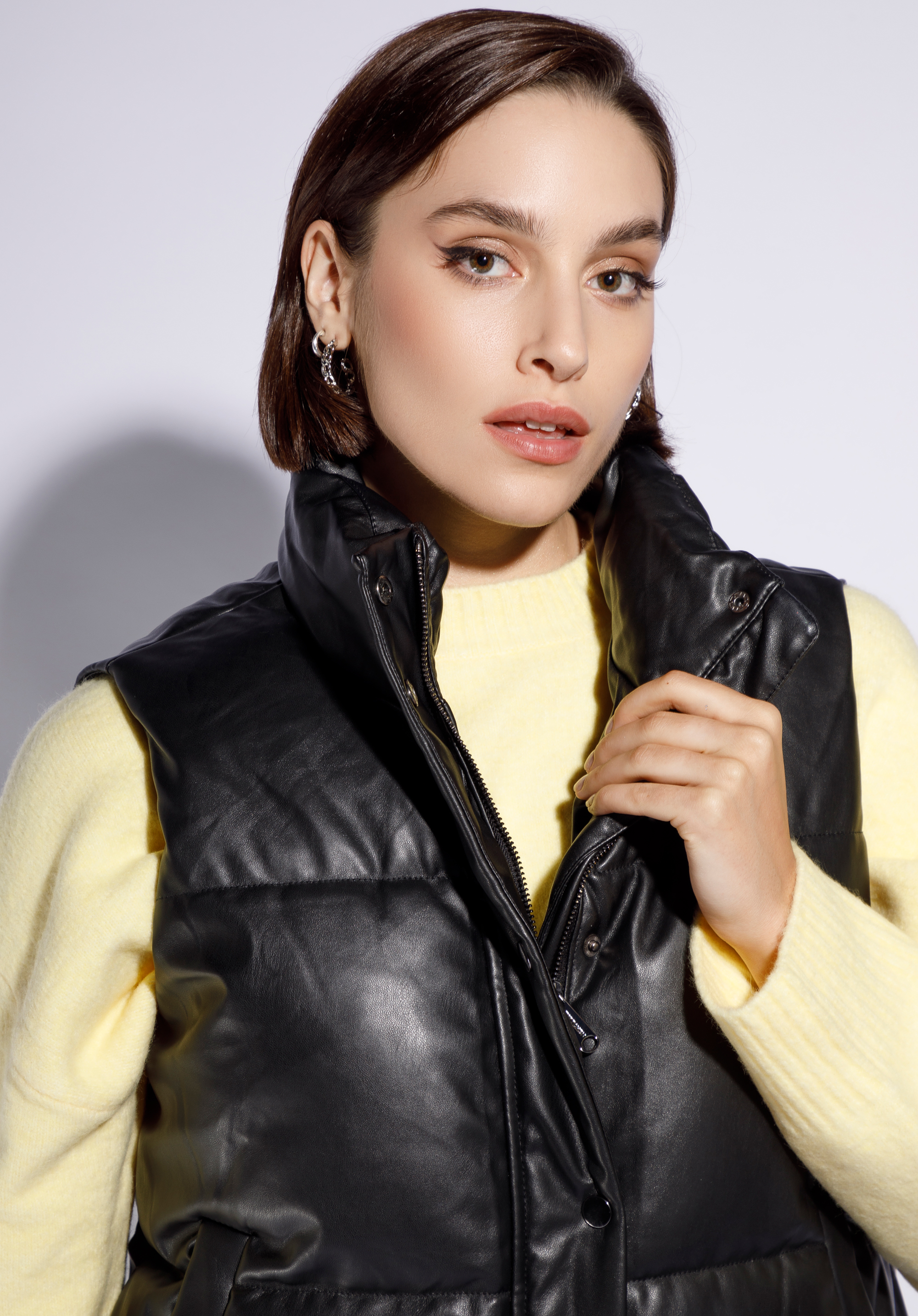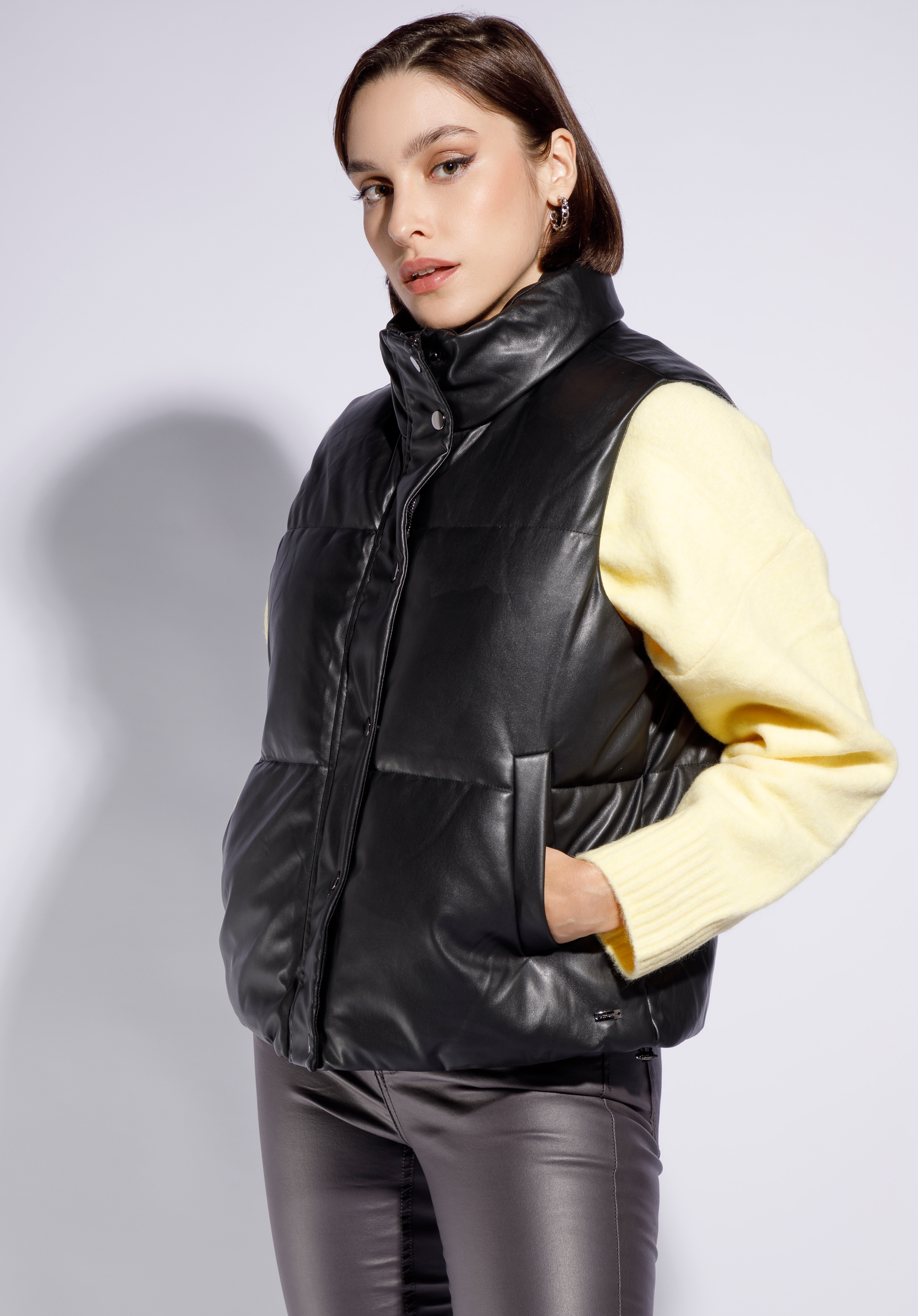 Tato bunda bude se hodit během chladnějších dnů. Je vyrobena z příjemné na dotek ekologické kůže s polyesterovou vložkou, což z ní dělá nejen praktický, ale i velmi stylový doplněk. Vysoký límec ochrání váš krk před nepříznivým počasí. Tato prošívaná bunda má klasický tvar, díky kterému budete vypadat svěže po mnoho let. Dámská prošívaná bunda z ekologické kůže je trochu elegantní a trochu sportovní - nejlepší kombinace.