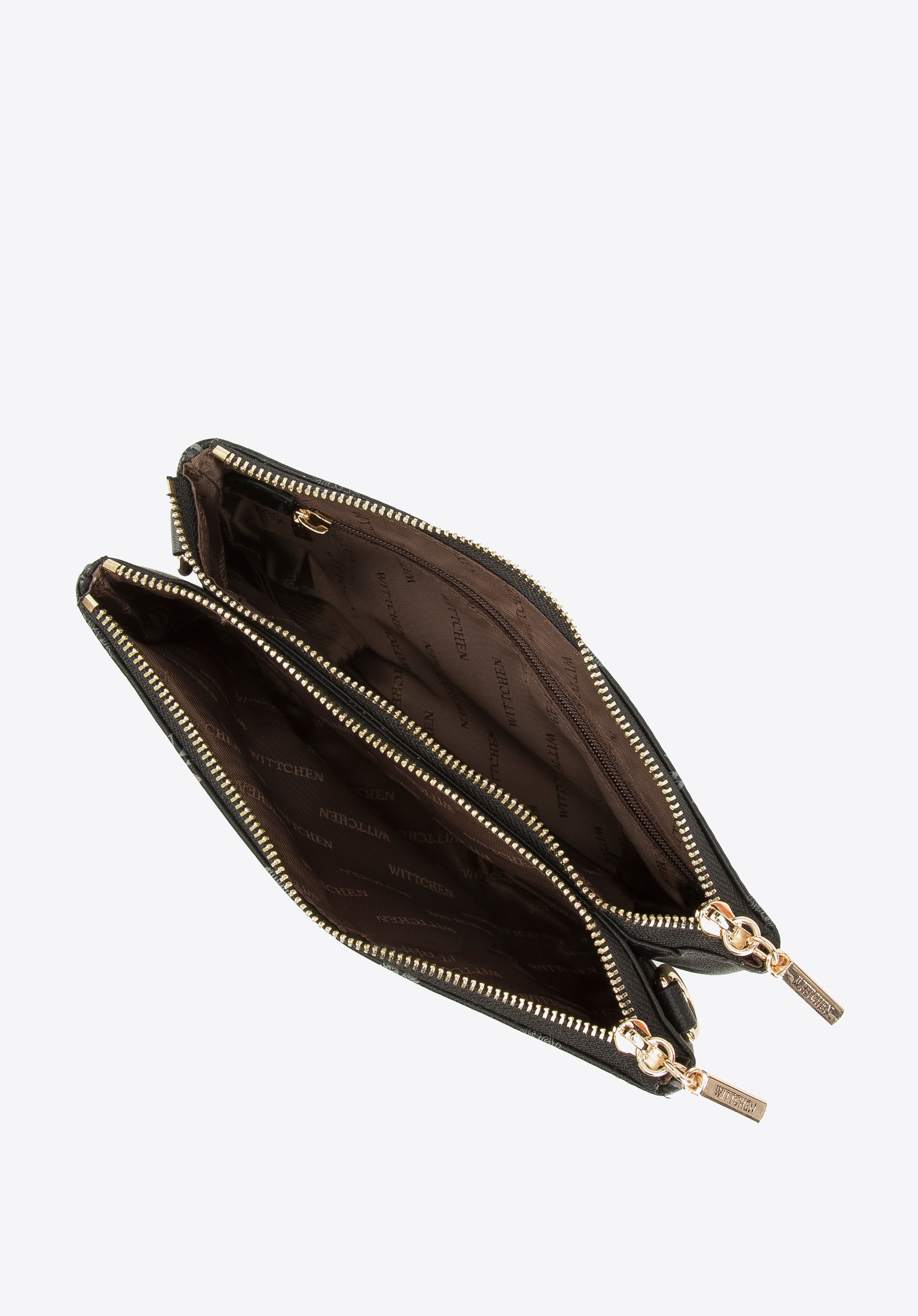 Tato malá kabelka je skvělou volbou pro ženu, která ráda vypadá elegantně. Má dvě samostatné přehrádky, ve kterých snadno udržíte pořádek. Do tašky vejde například telefon, pouzdro na karty, kapesníky a krém. Je vyrobena z vysoce kvalitní přírodní kůže a je zdobená monogramem WITTCHEN. Můžete ji nosit v elegantní i ležérní verzi. Dámská kožená mini kabelka se dvěma komorami s monogramem je stylovým doplňkem pro mnoho příležitostí.
