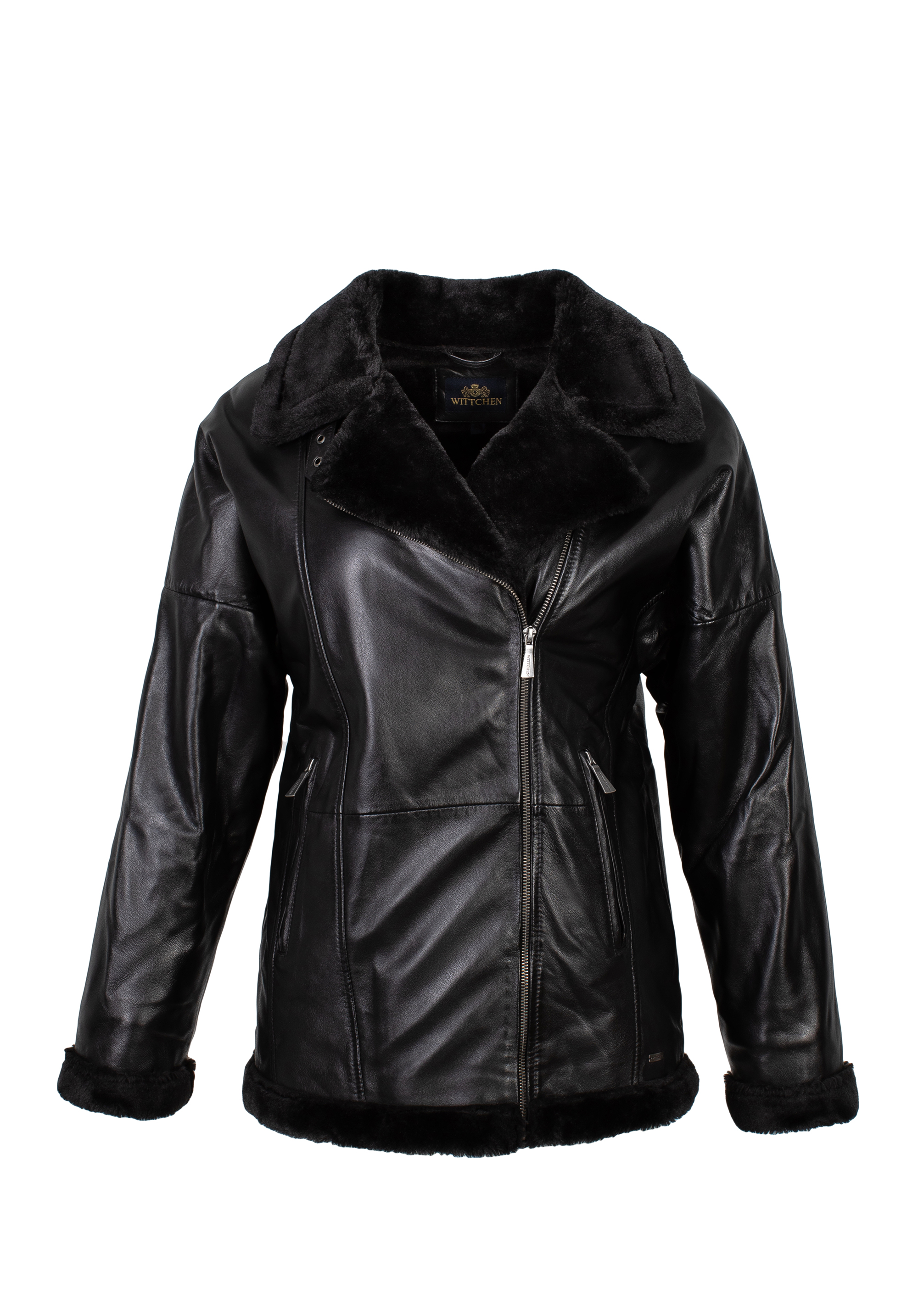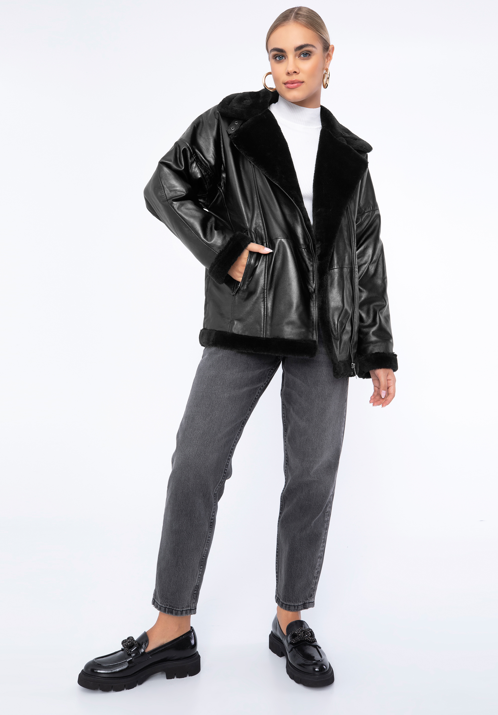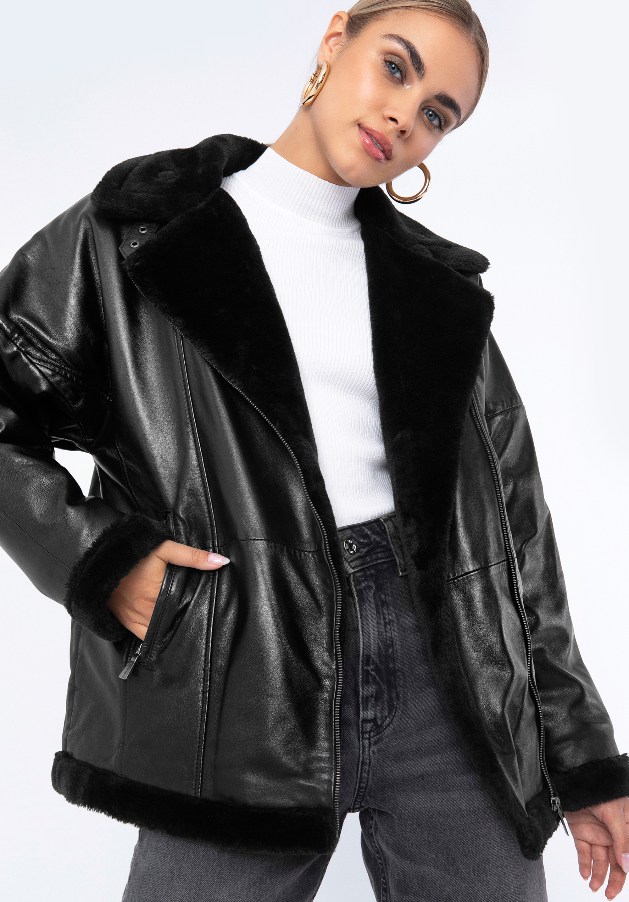 Kožená dámská bunda s ekologickou kožešinou