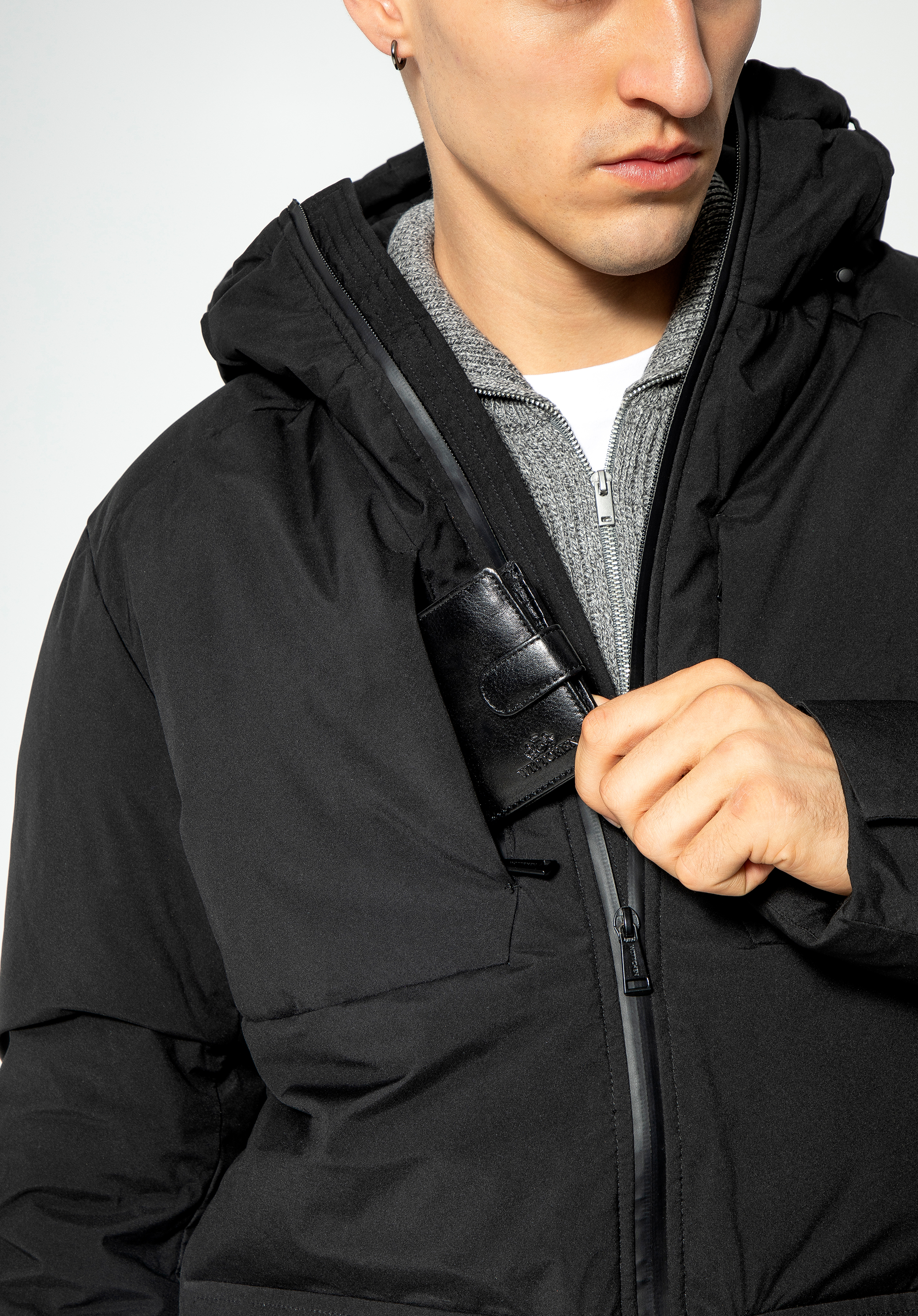 - jedna kapsa s ozdobou z ekologické kůže a zapínáním na zip na levém rukávu;