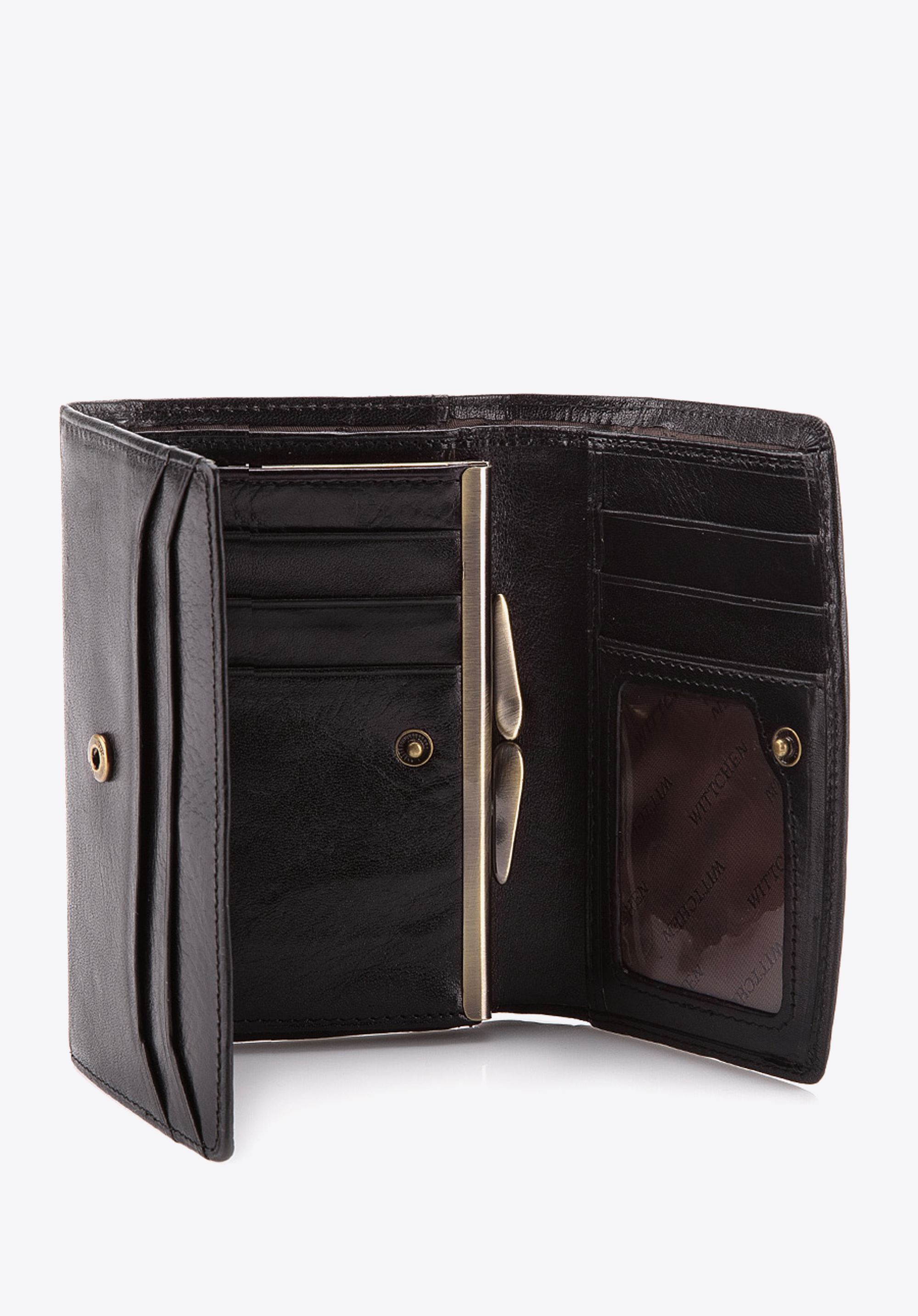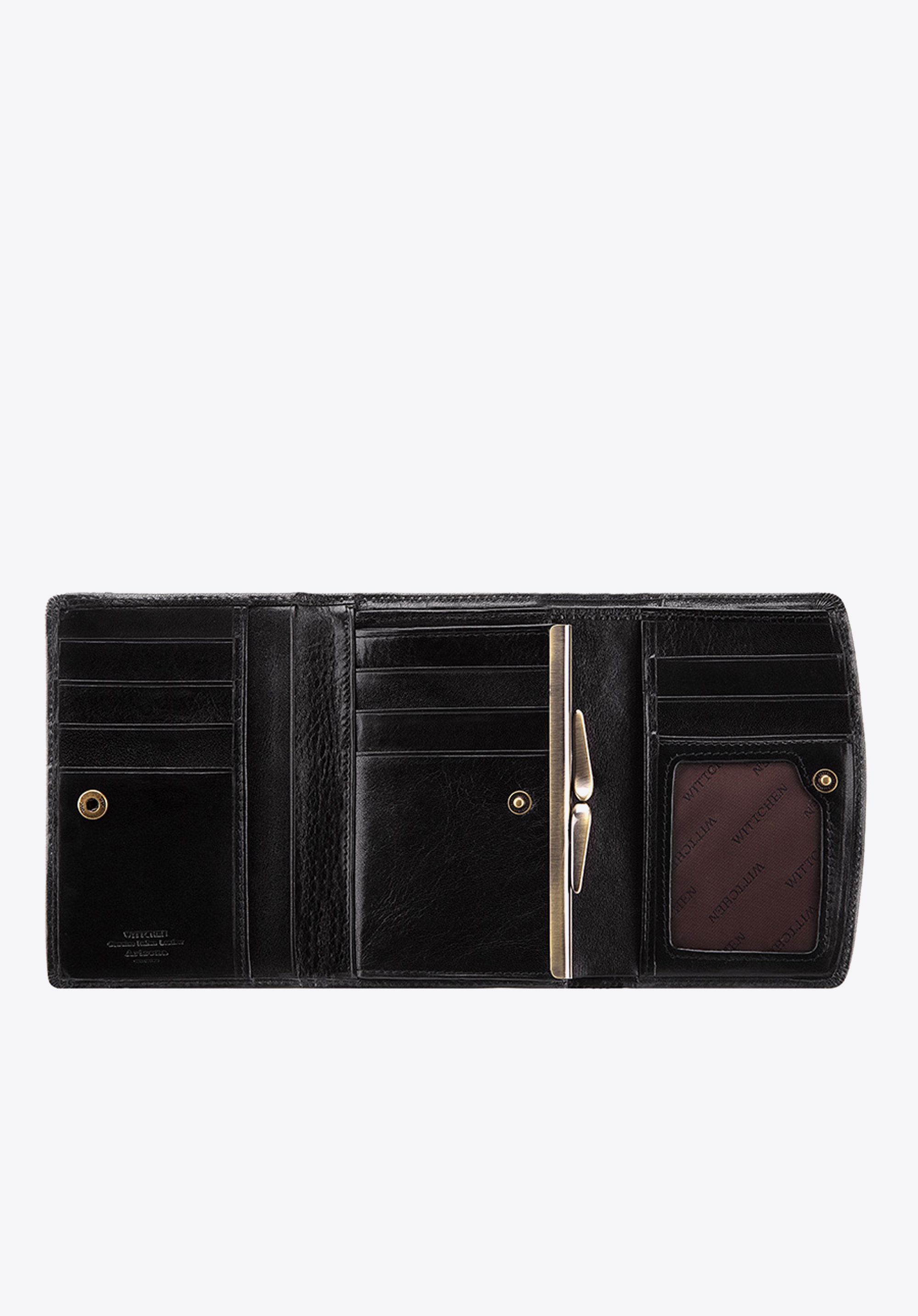 Tato střední velikosti dámská peněženka je ideálním doplňkem pro ženy, které si cení eleganci. Má ozdobu ve tvaru erbu WITTCHEN v barvě starého zlata.