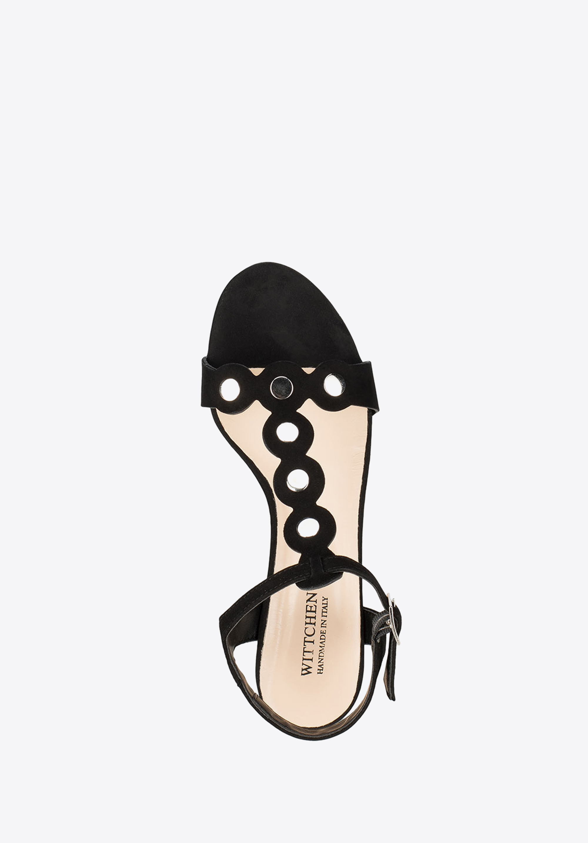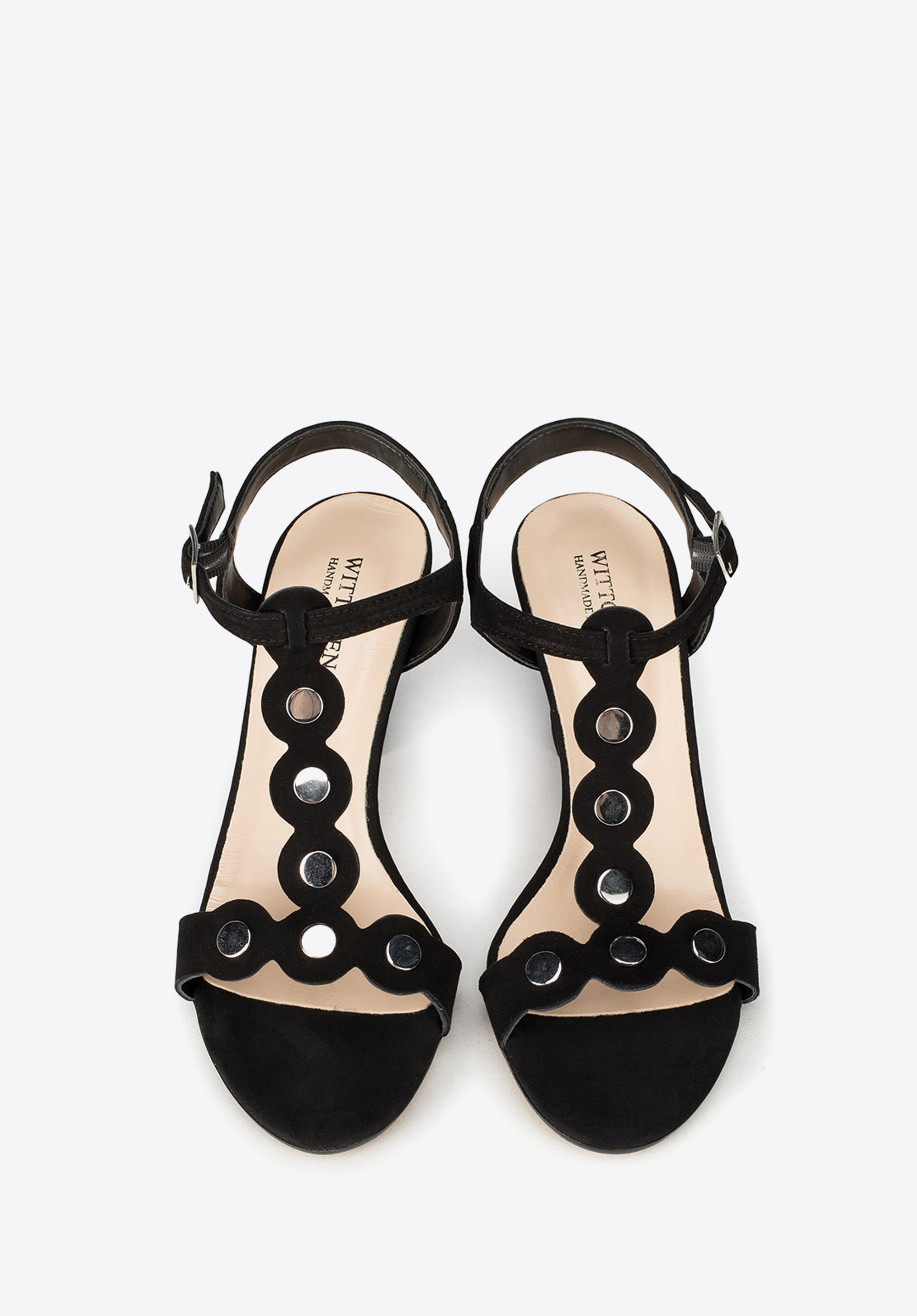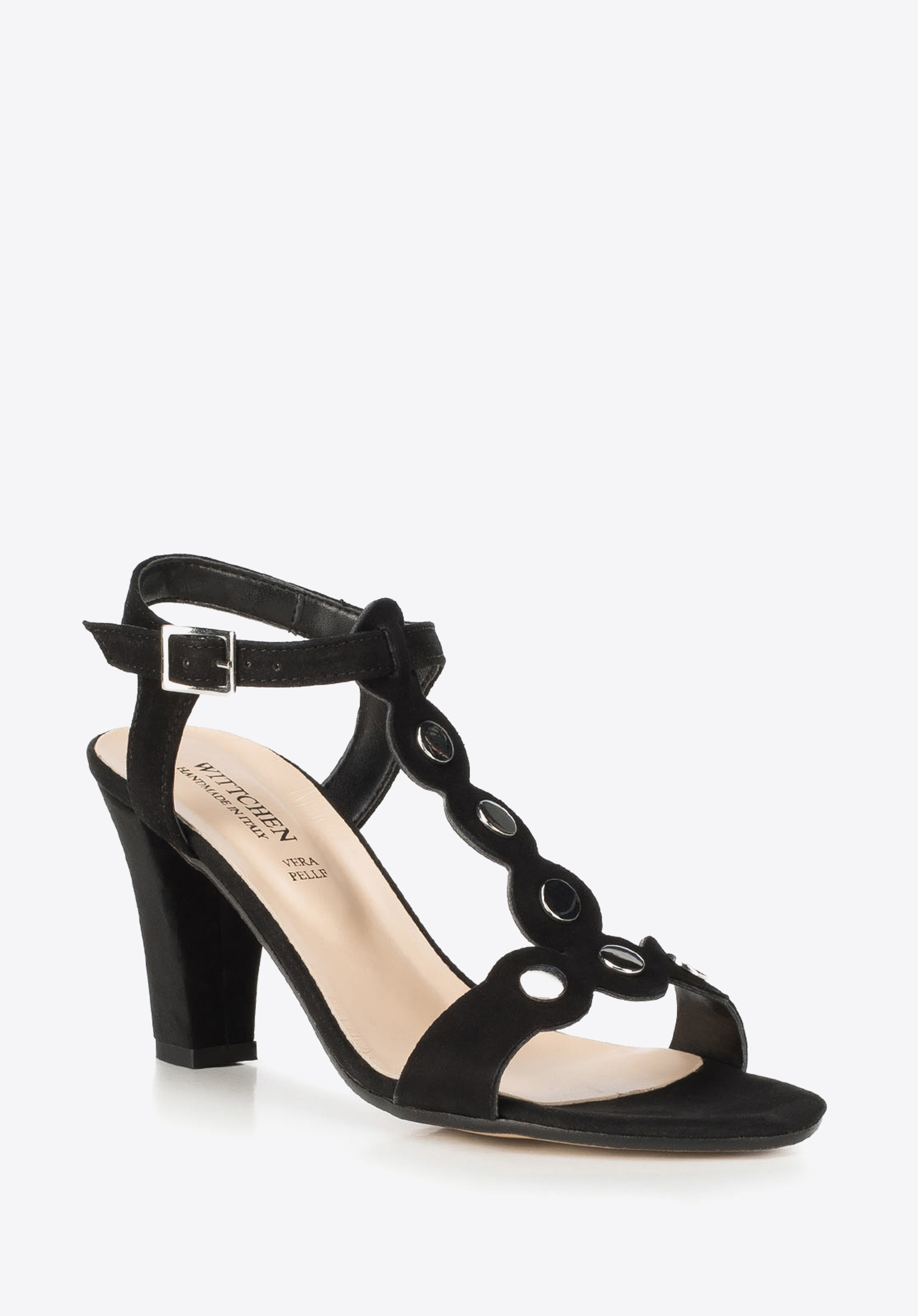 Letní dámské boty jsou ručně vyrobené v Itálii z nejkvalitnější semišové kůže. Model se stabilní patou je připevněn pomocí kotníku pomoci přezky. Kromě má kulaté kovové ozdoby na popruzích, které jsou elegantním a charakteristickým doplňkem.