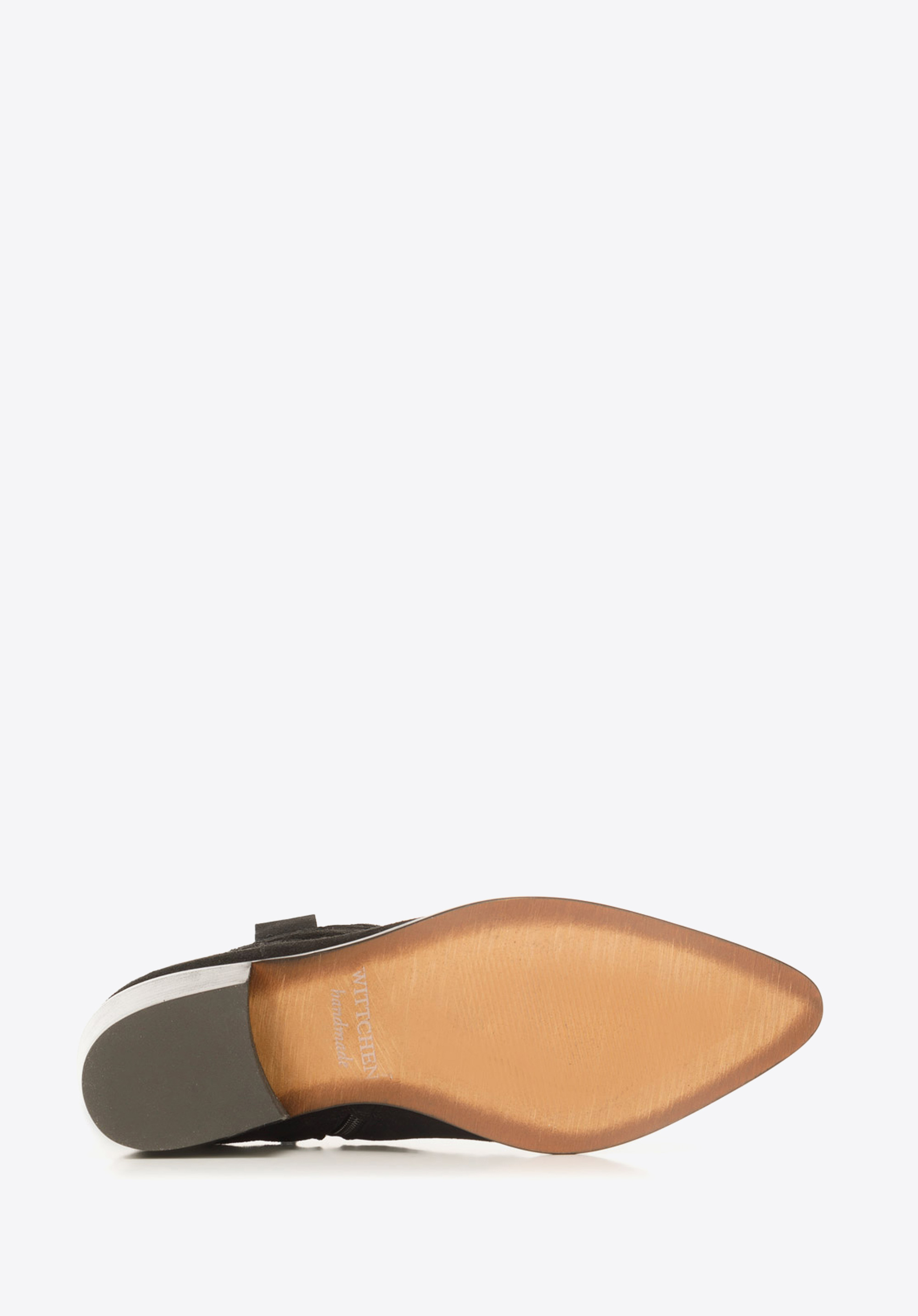 Tyto dámské boty mají elegantní zdobeni. Byly vyrobené ve Španělsku z nejkvalitnější kůže. Kožená stélka s měkkou podšívkou postará se o vaše pohodlí. Tyto velmi stylové boty osloví ženy, které hledající neobvyklé doplňky.
