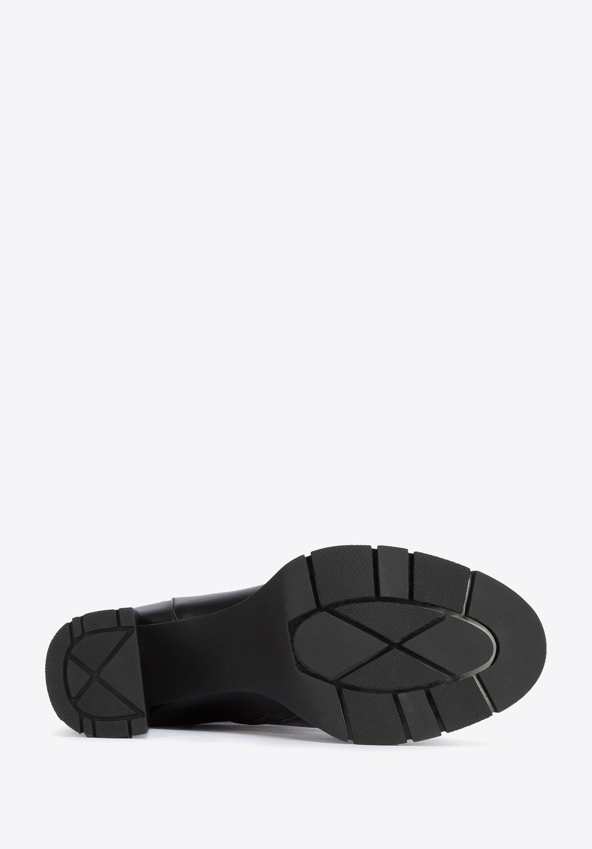 Tyto stylové dámské boty jsou klasickou s moderním nádechem. Jsou vyrobeny z vysoce kvalitní přírodní kůže, díky čemuž jsou doplňkem na léta. Mají pásek s cvočky, který dodává jim nový charakter. Podrážka s nášlapem zajistí trakci a stabilní pata zeštíhlí postavu a přidá pár centimetrů na výšce. Dámské kožené boty s ozdobnými cvočky jsou skvělým doplňkem pro ženy, které mají rády módní doplňky.