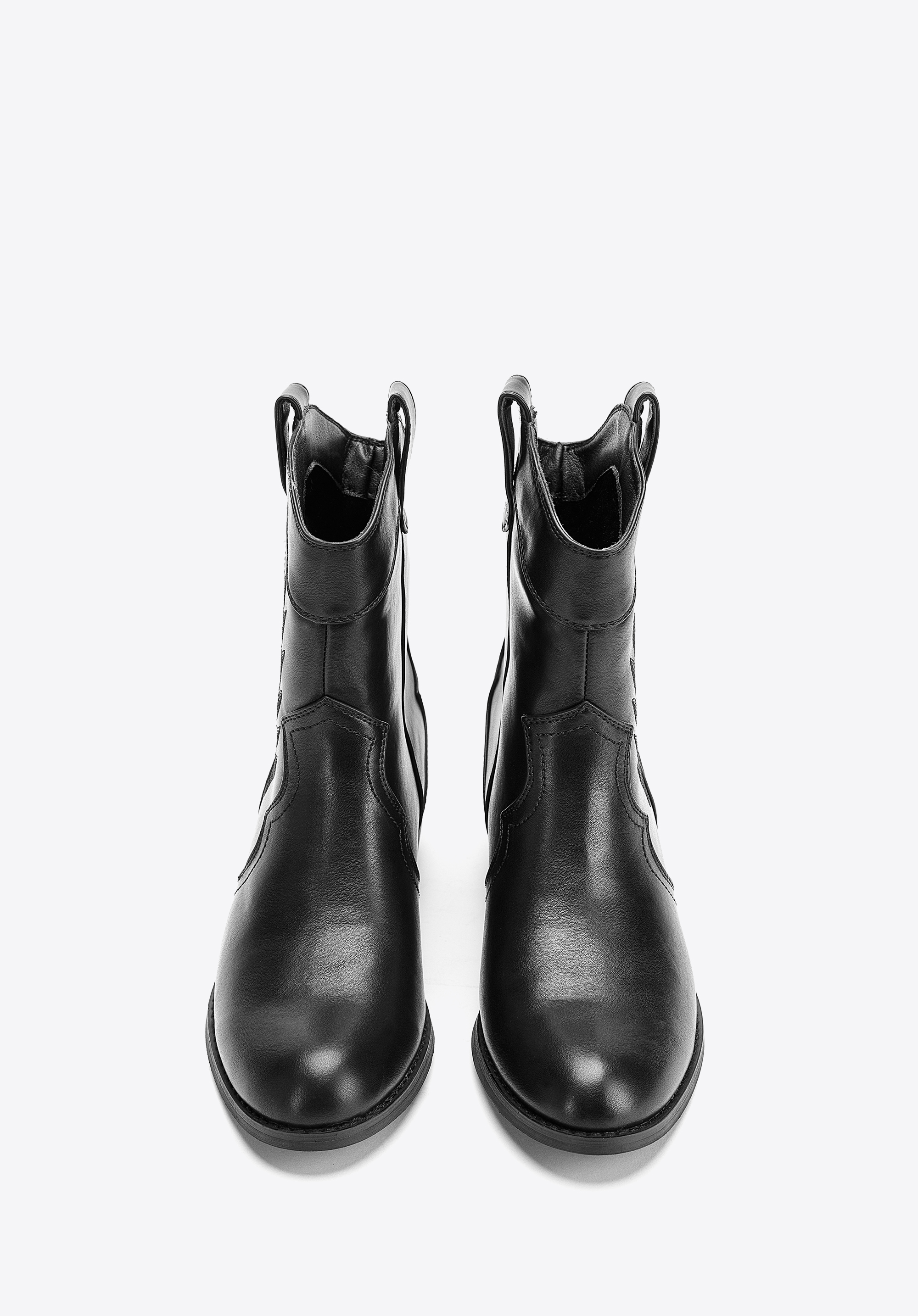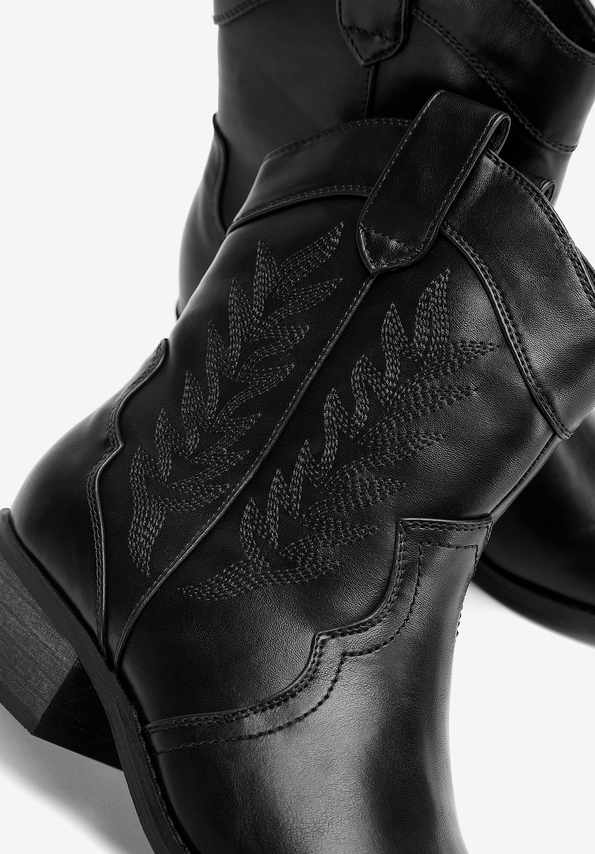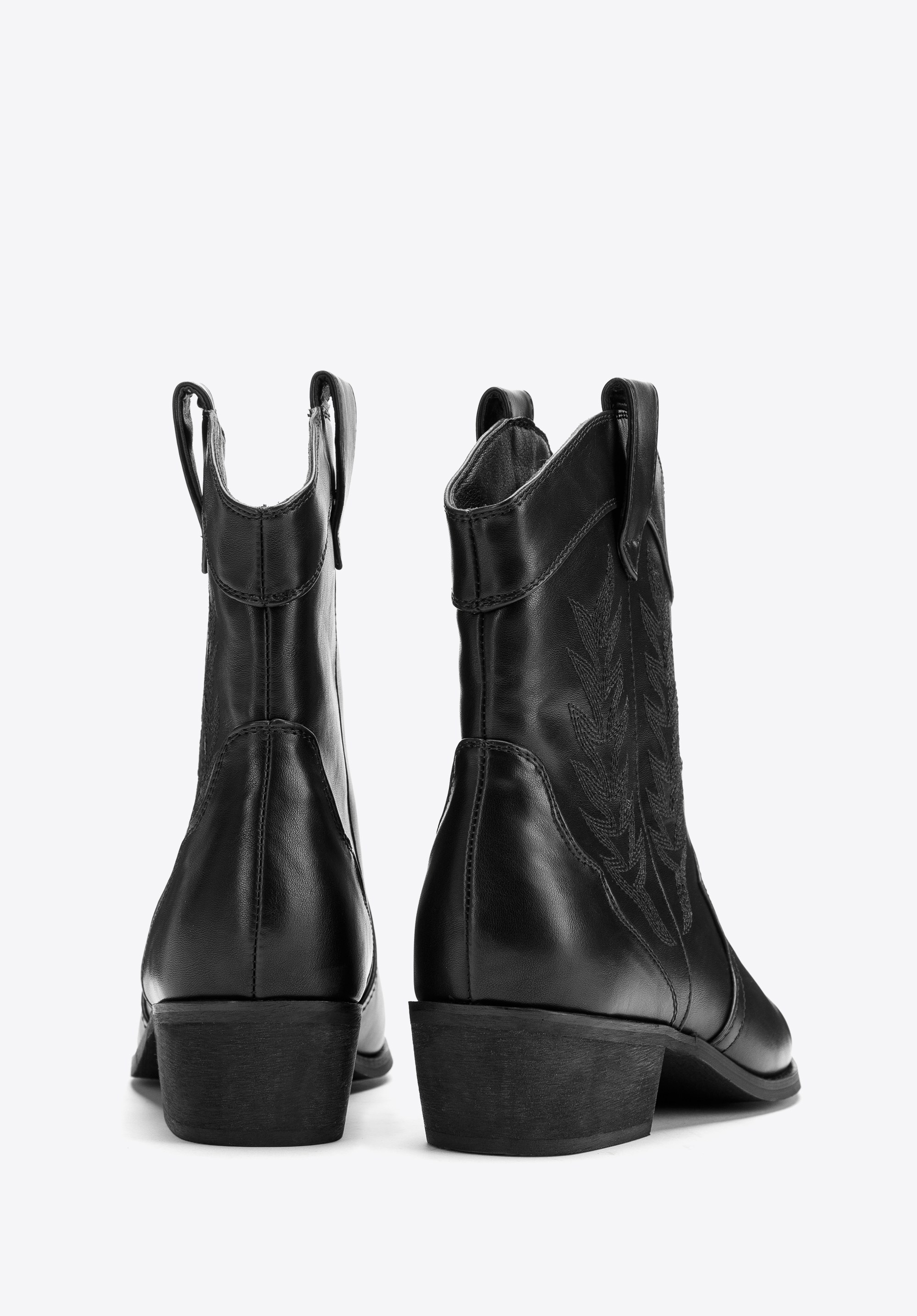 Tyto dámské kovbojské boty jsou skvělou volbou pro každodenní nošení na podzim a na jaře. Jsou vyrobeny z vysoce kvalitní ekologické kůže. Zaoblené strany jsou zdobeny výšivkou prošívanou tmavou nití, která dodává jim jedinečný charakter. Pohodlný a široký podpatek přidá vám pár centimetrů na výšce a můžete v nich pohodlně chodit mnoho hodin. Noste je ke svým oblíbeným džínům a košili. Krátké dámské boty s výšivkou jsou nadčasovým doplňkem, který bude se hodit při mnoha příležitostech.