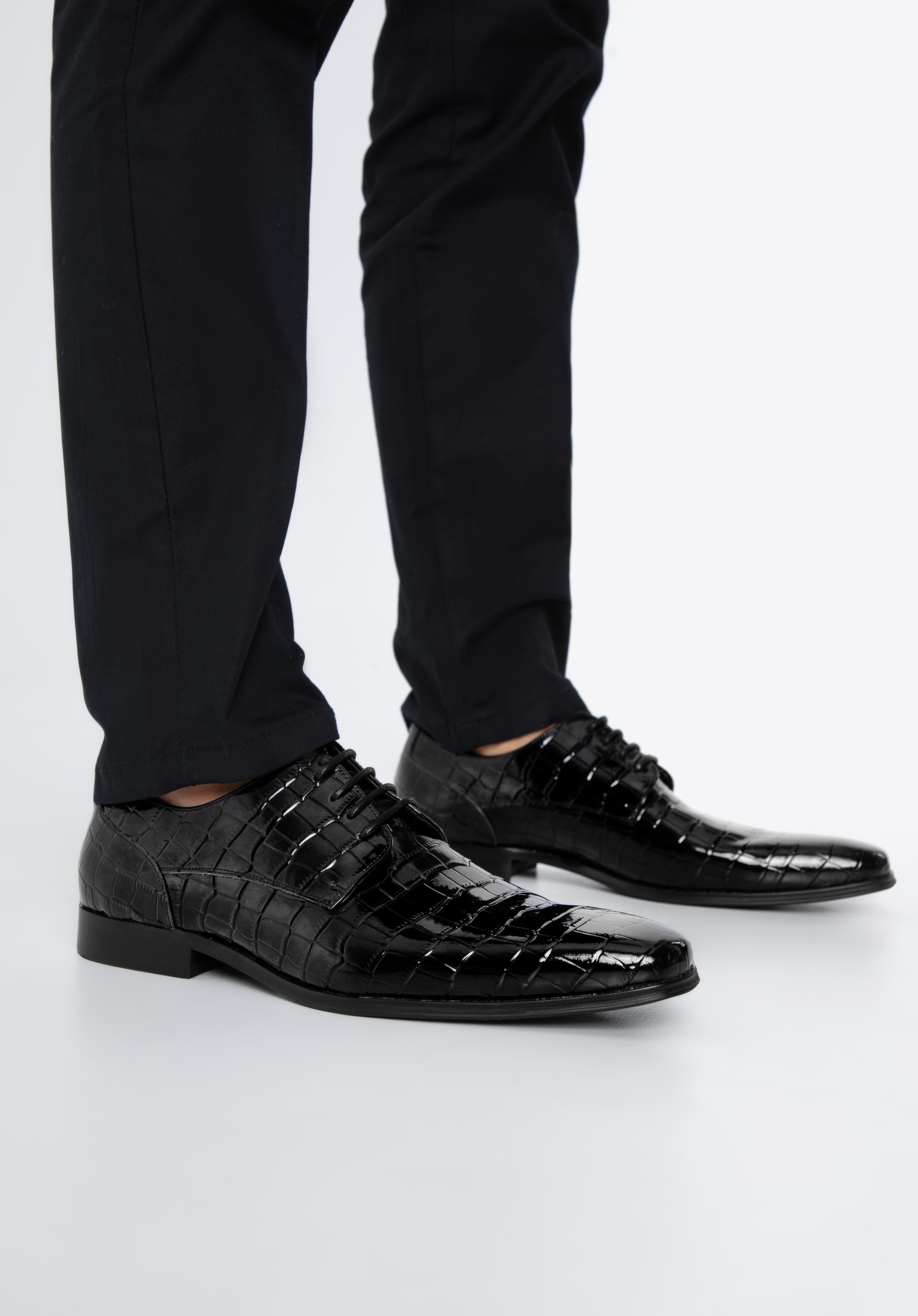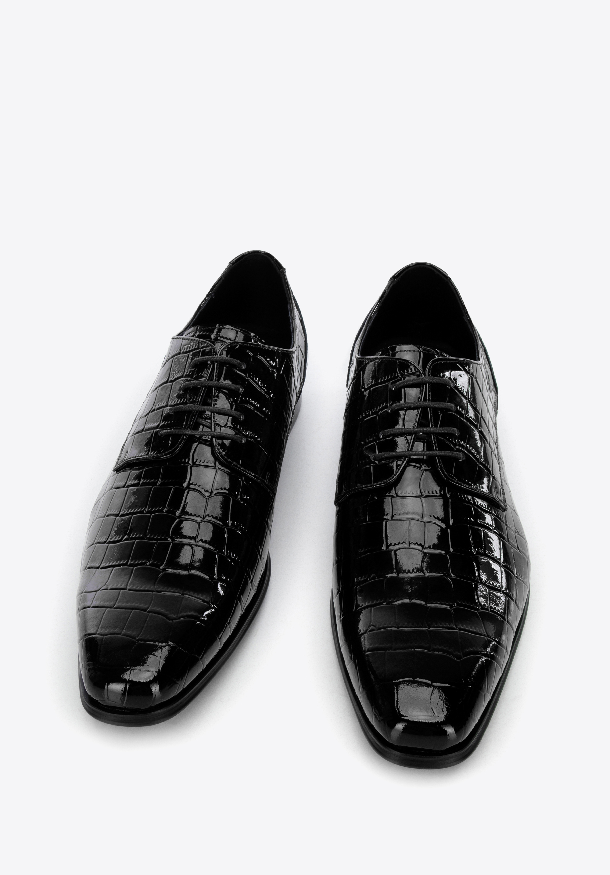 Tyto boty poskytnou vám dokonalý vzhled na každé elegantní oslavě. Jsou vyrobeny z vysoce kvalitní lakované kůže s krokodýli texturou, která zaujme mnoho pohledů. Klasický střih s moderní úpravou vytváří originální celek. Bez ohledu na to, zda je obléknete na svatbu nebo vyrazíte ven s přáteli, budete v každé situaci vypadat jedinečně. Pánské lakované boty s krokodýlím povrchem elegantně doplní každý oblek.