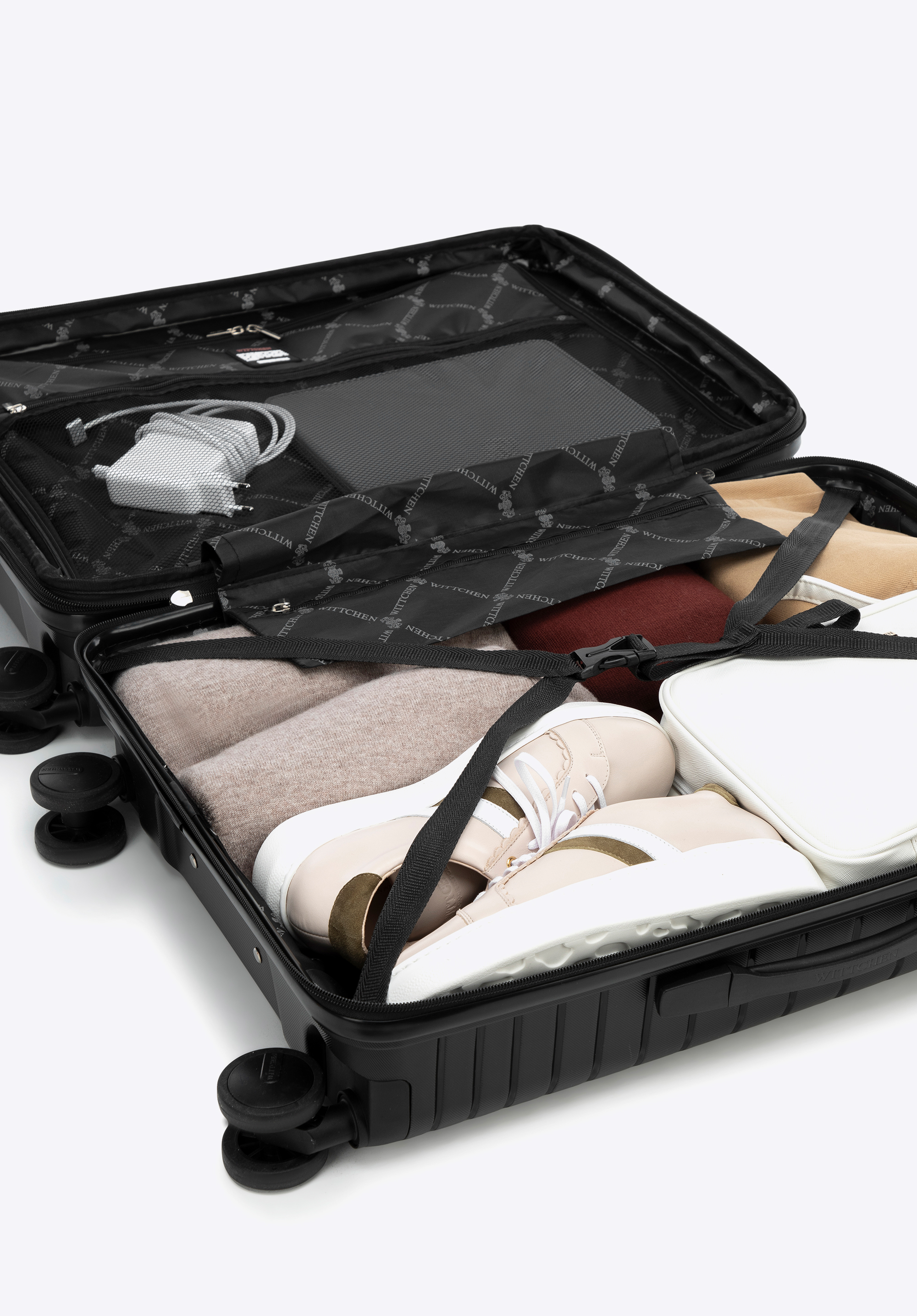 - zámek se systémem TSA, velmi užitečný v případě kontroly zavazadla celními službami - zaručuje neinvazivní otevření kufru a jeho opětovné uzavření bez poškození zámku;