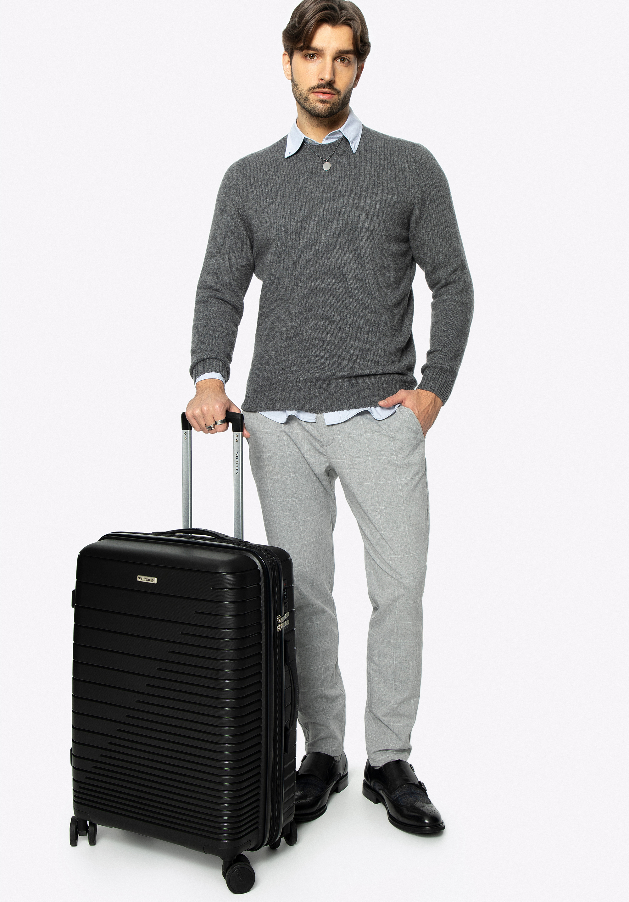 - kufr je vybaven čtyřmi dvojitými otočnými kolečky pro snadné manévrovaní;