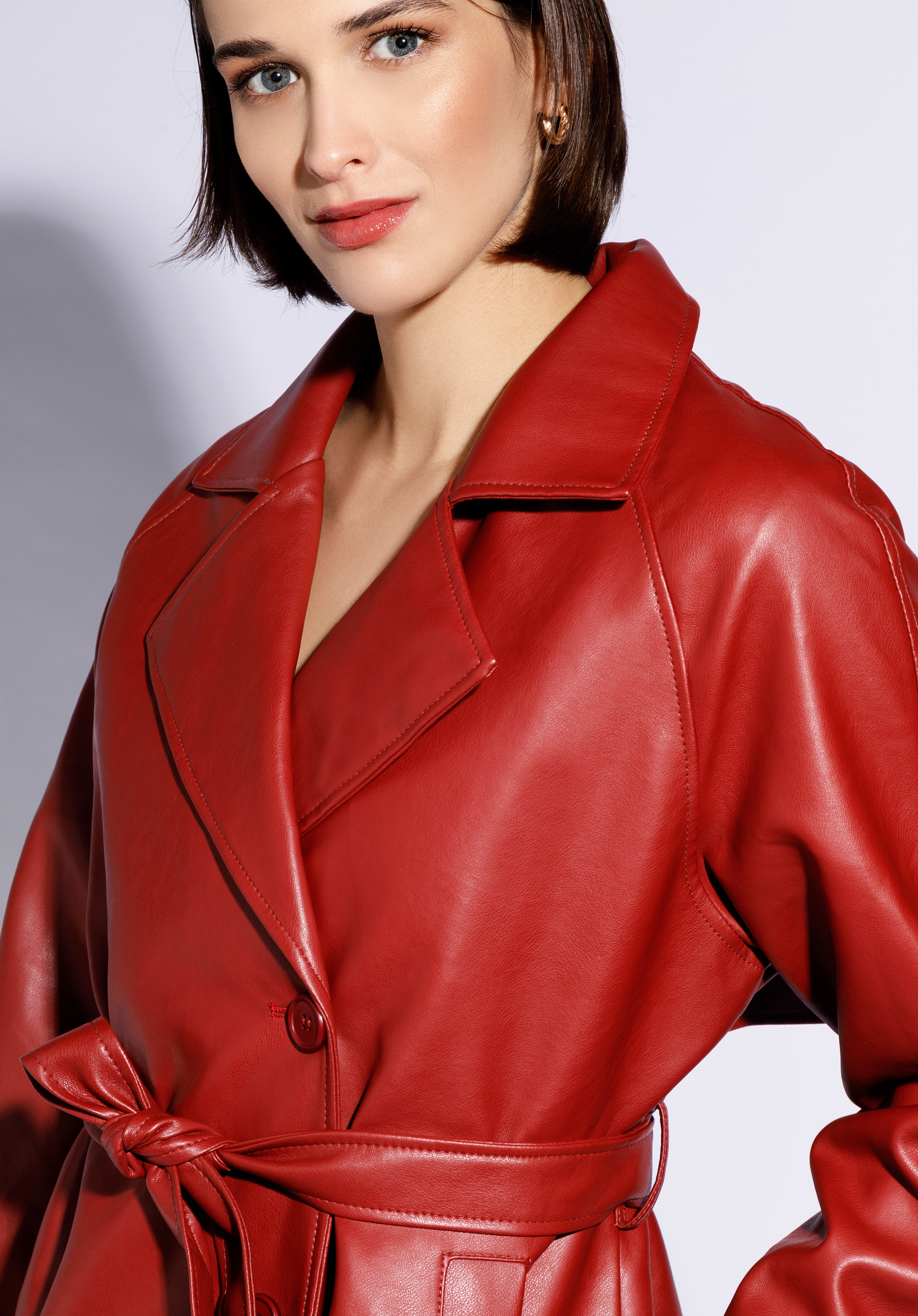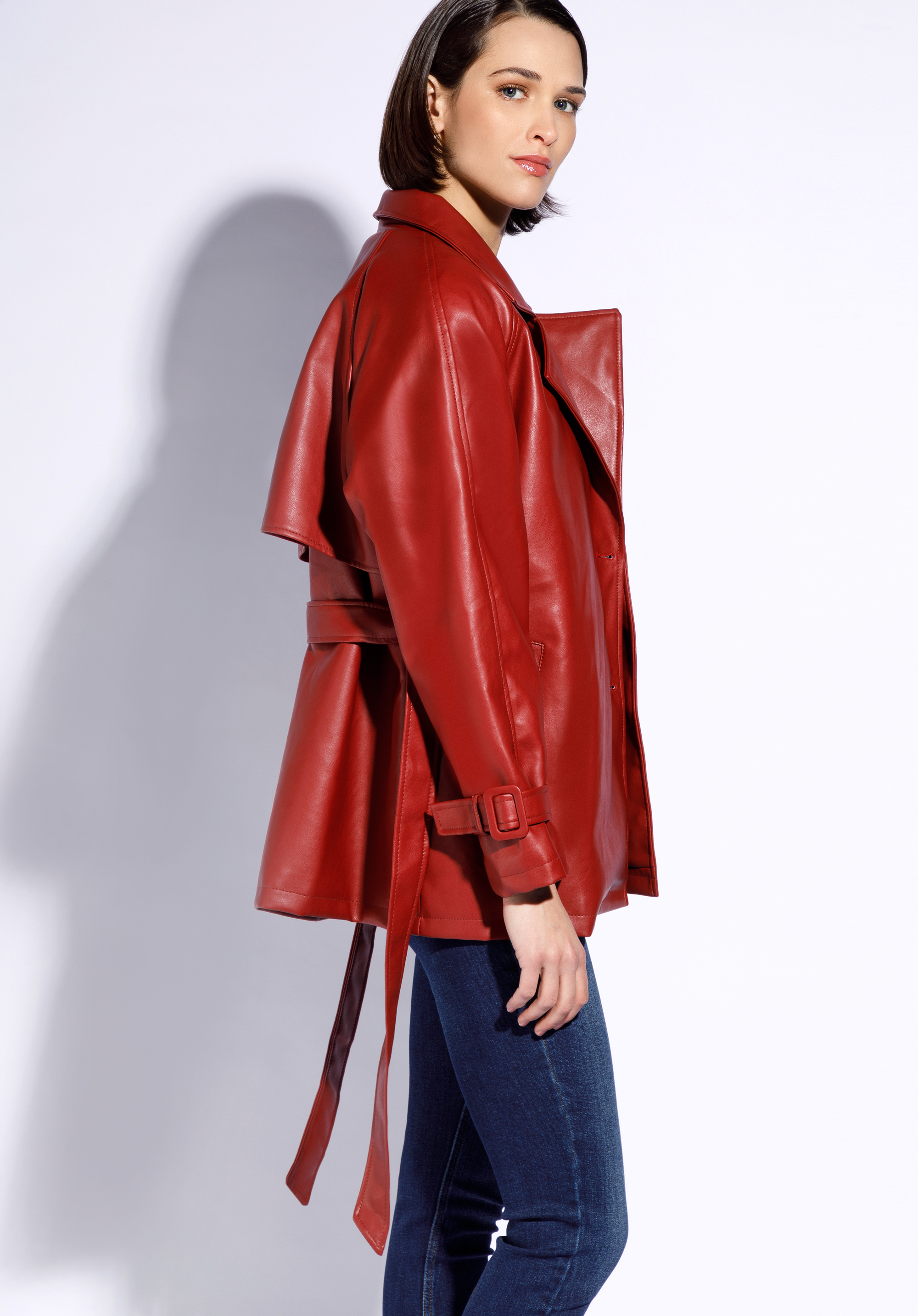 Tato stylová dámská bunda bude se hodit každé milovnici módních doplňků. Střih dodává ji originální charakter a pásek pěkně zvýrazní vaši postavu. Tento model je vyroben z vysoce kvalitní ekologické kůže. Rukávy jsou zakončeny gumičkami, díky kterým můžete si upravit jejich šířku. V otevřených kapsách snadno schováte ruce. Dámská bunda z ekologické kůže s páskem je skvělou volbou na léto, podzim nebo jaro.