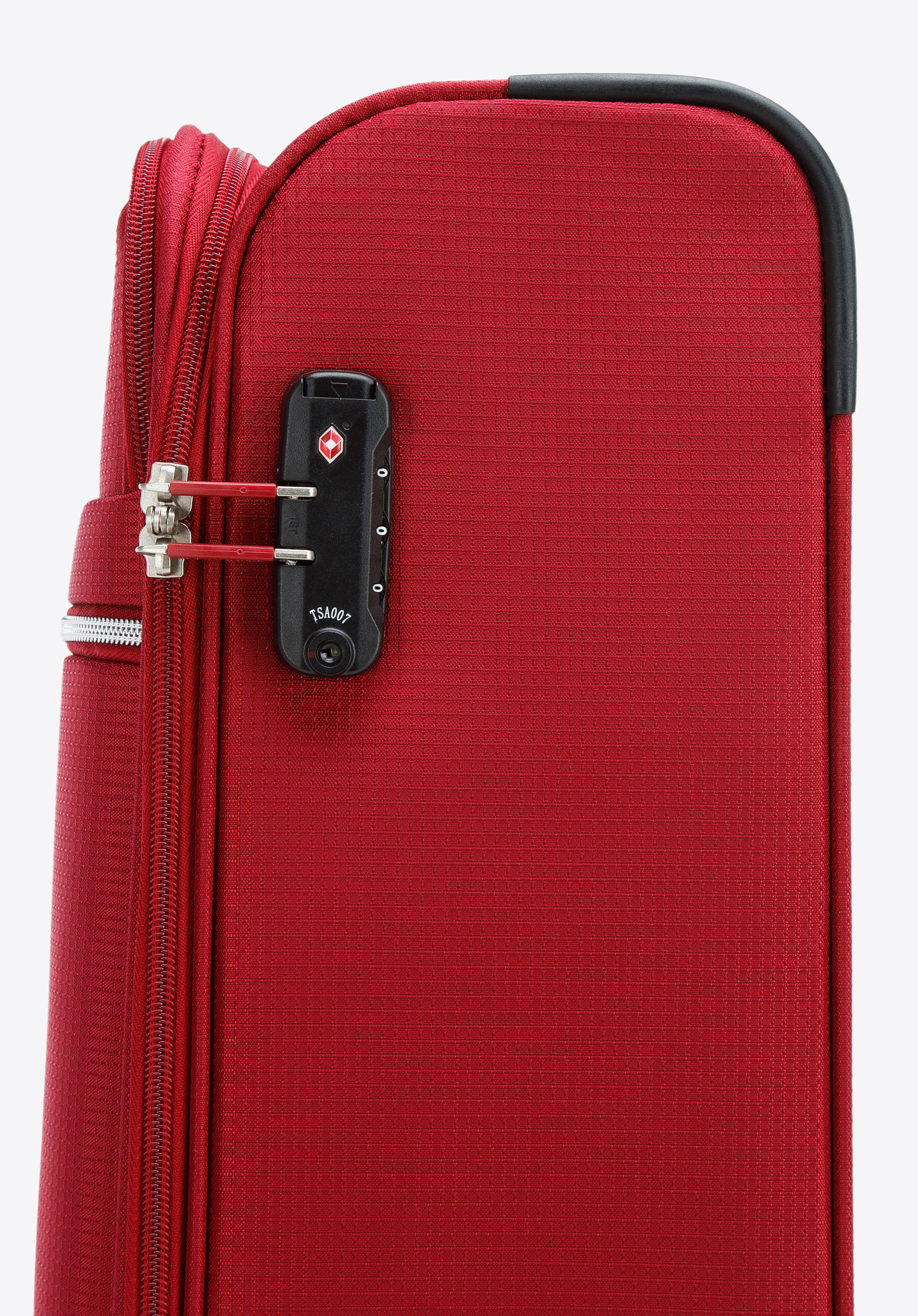 - zámek s TSA kódem - velmi užitečný v případě kontroly zavazadla - zaručuje neinvazivní otevření kufru a jeho opětovné uzavření, bez poškození zámku;