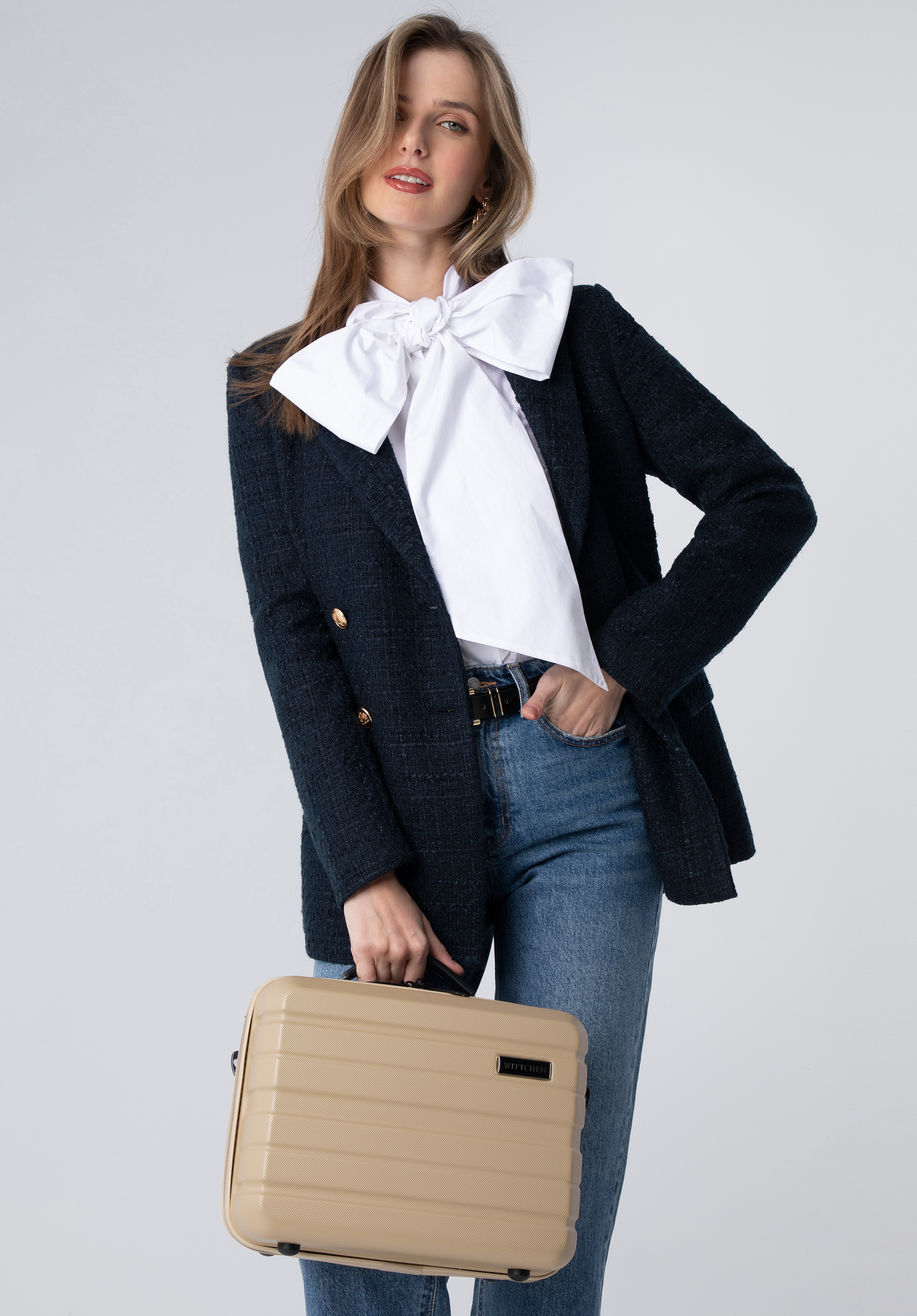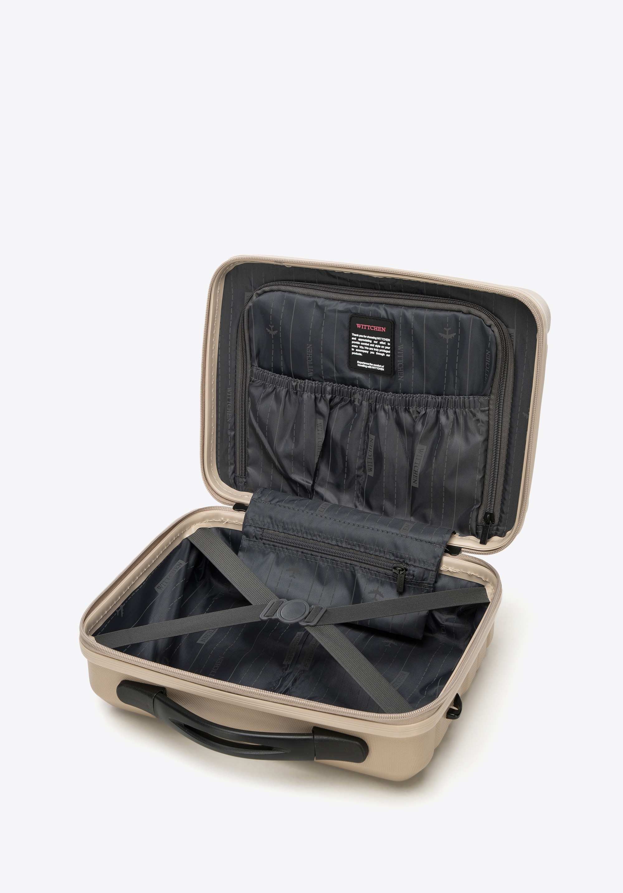 Cestovní béžová kosmetická taška z ABS s vodorovnými pruhy