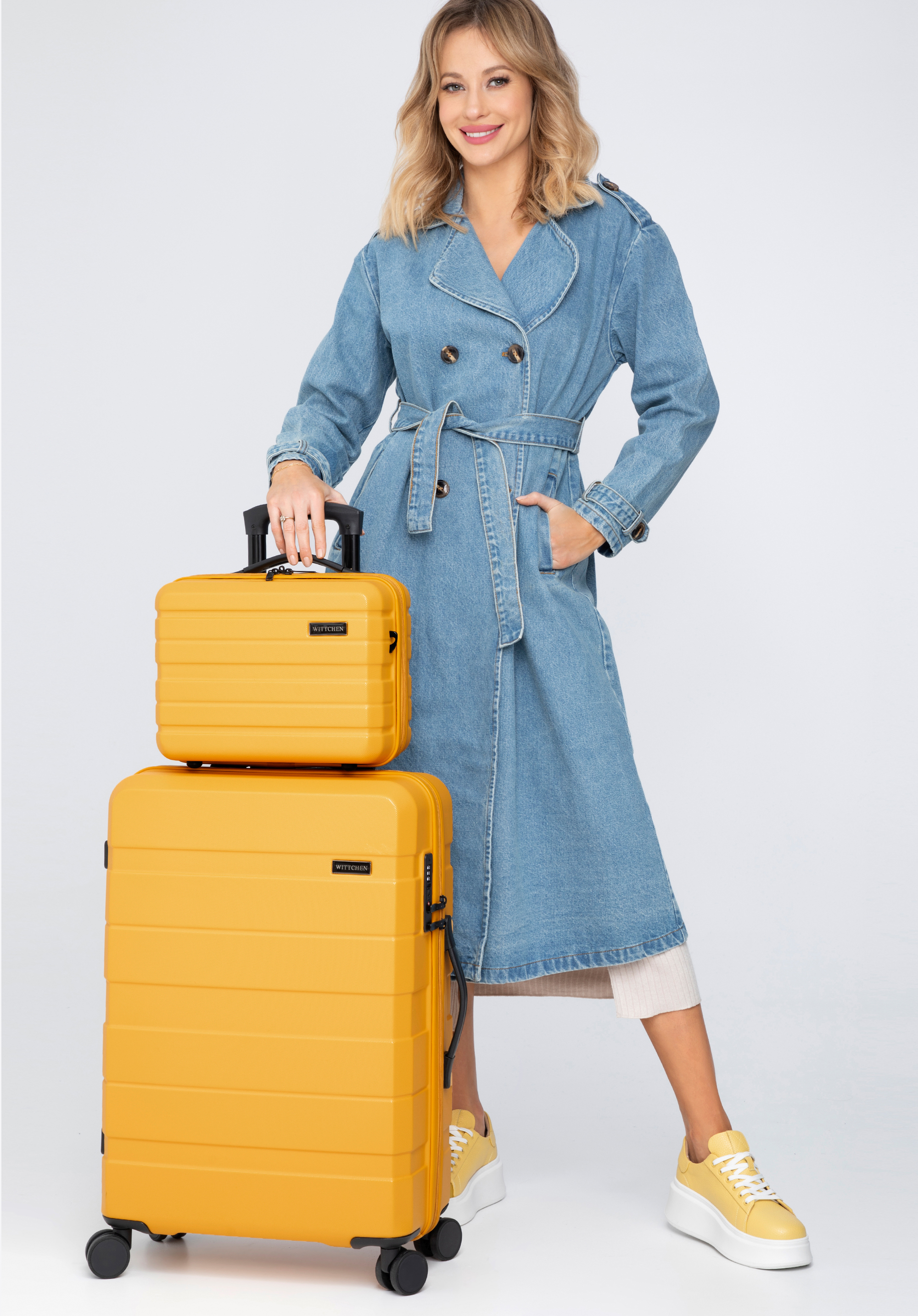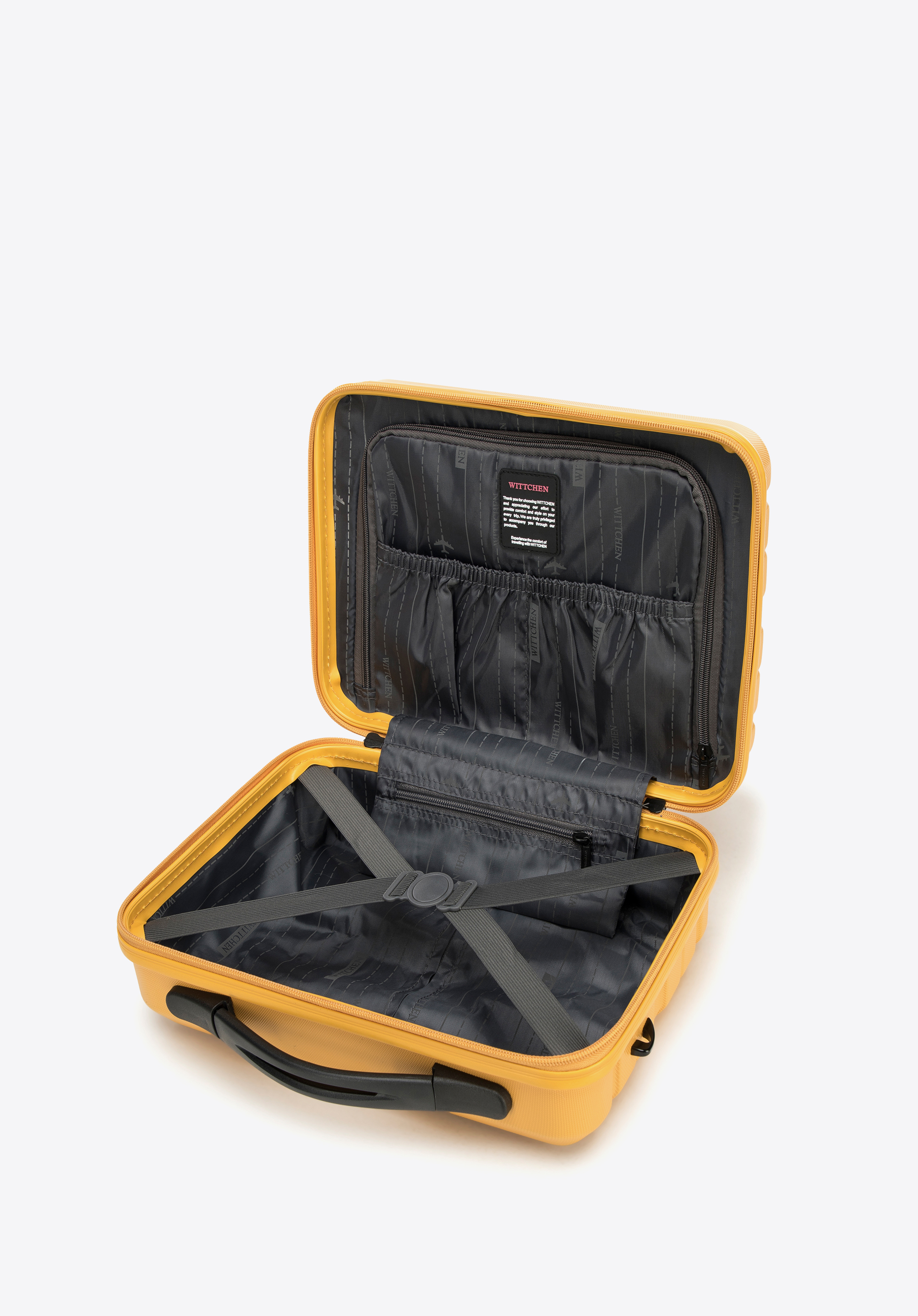 Cestovní žlutá kosmetická taška z ABS s vodorovnými pruhy