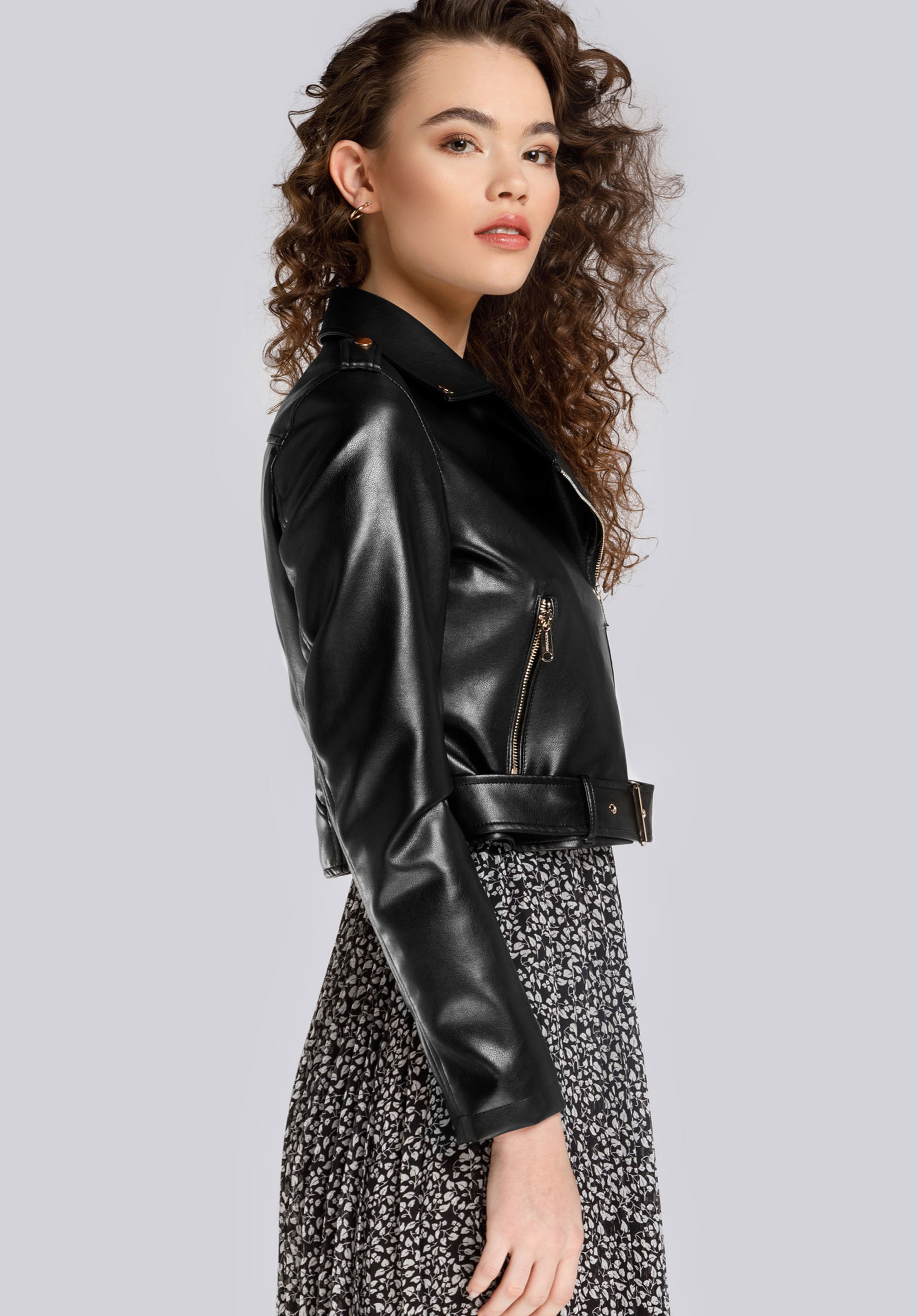 Tuto moderní verzi klasické bundy osloví každá žena. Je vyrobena z příjemné na dotek ekologické kůže. Má ozdobné nárameníky, pás, který můžete zapnout nebo nosit otevřený. Je krátká a vypasovaná, díky čemuž zdůrazní postavu. Tento klasický model můžete nosit k mnoha příležitostem: elegantním i každodenním. Zkrácená dámská bunda promění každý styl.