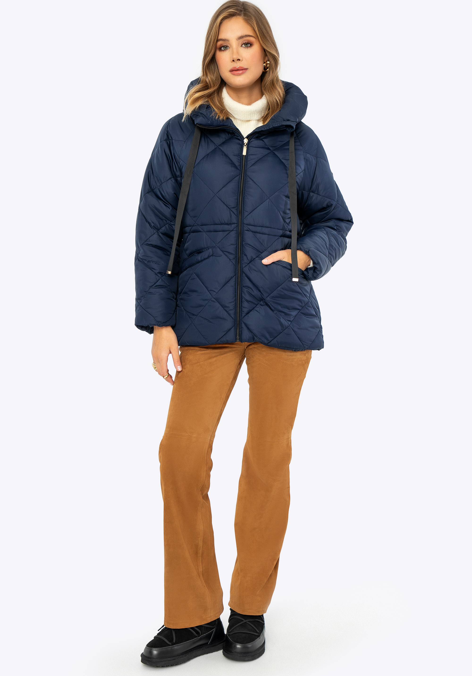 Dámská bunda s kapucí a šňůrkou Barva: tmavě modrá