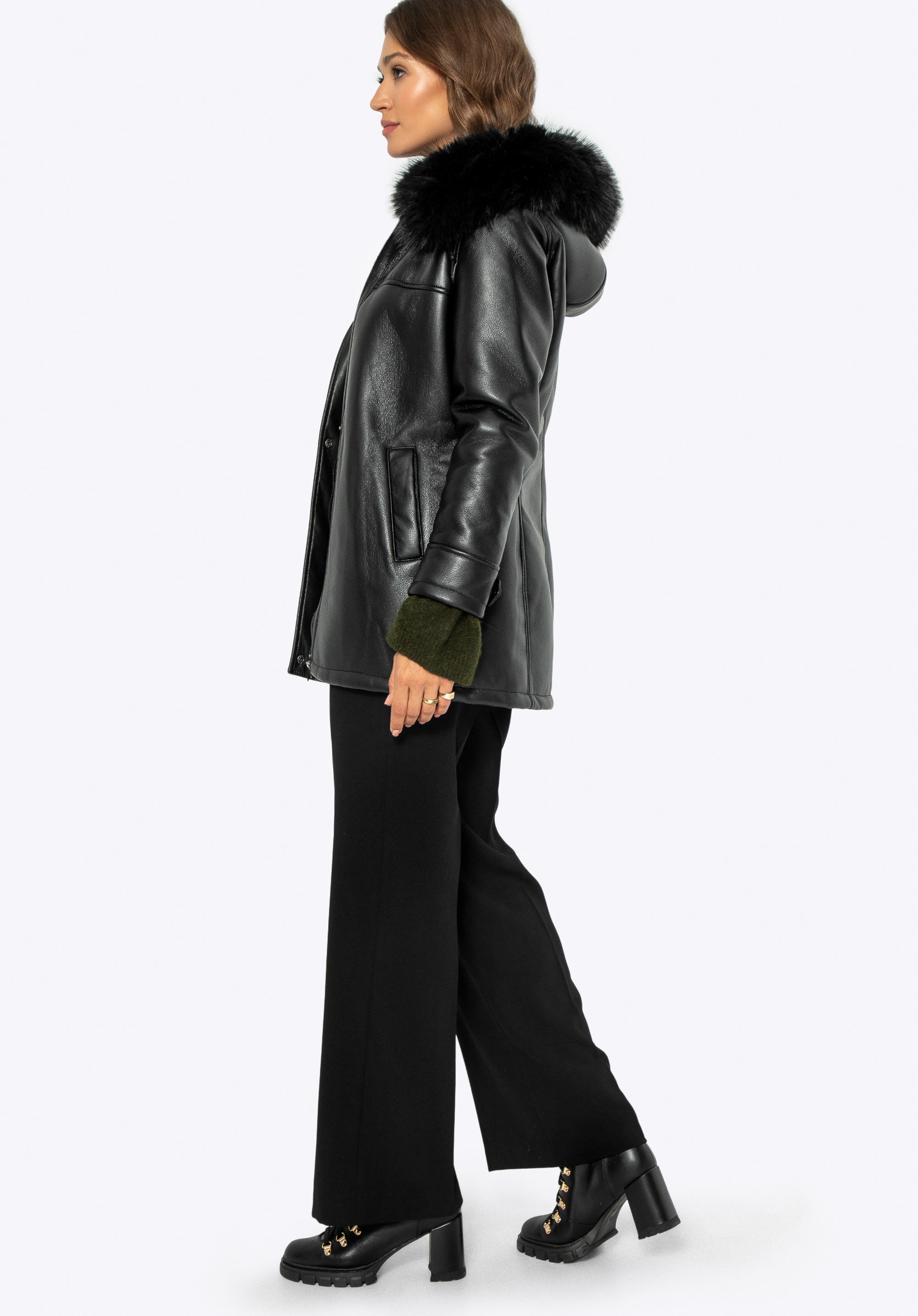 Stylová bunda s kožešinovou kapucí