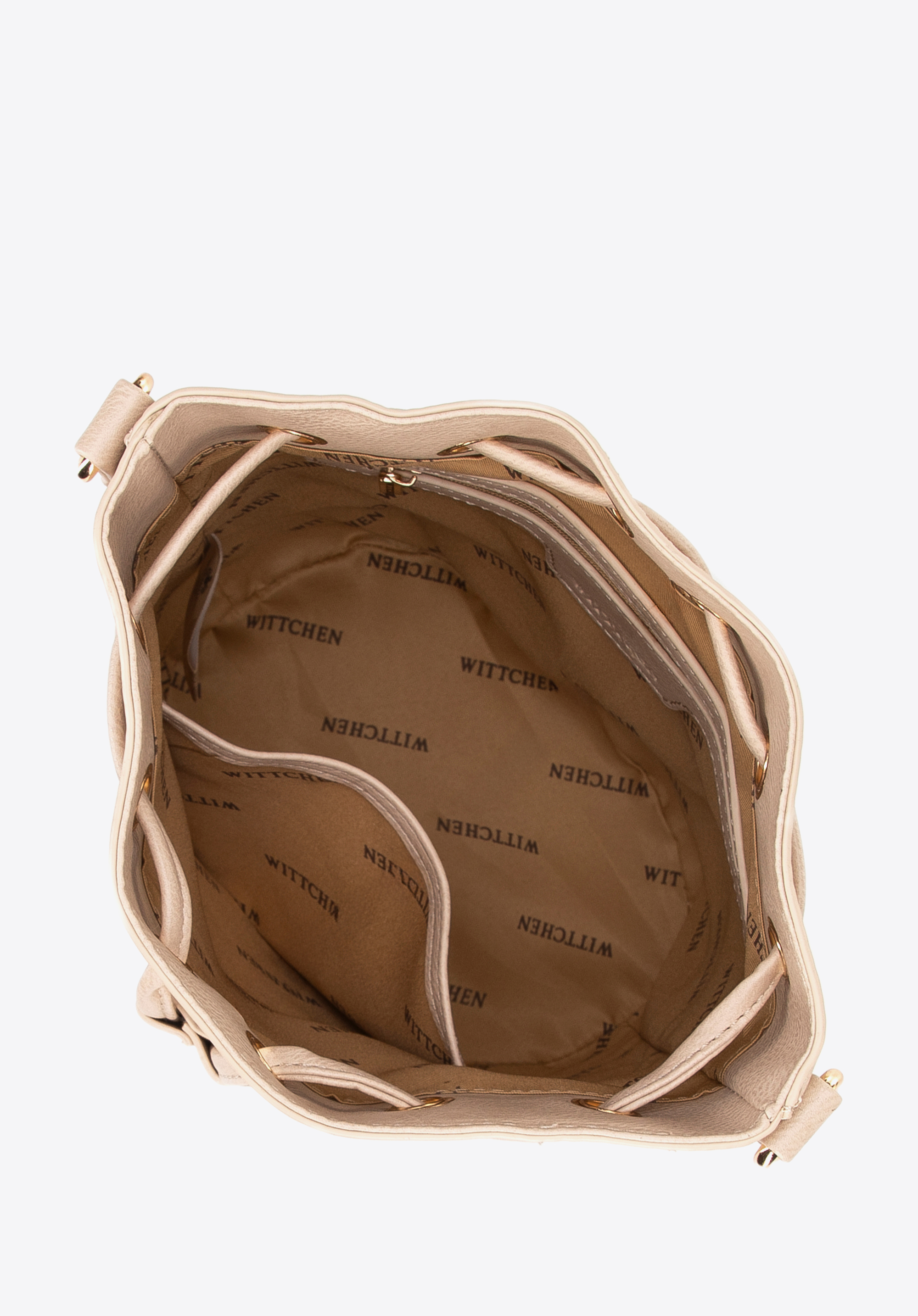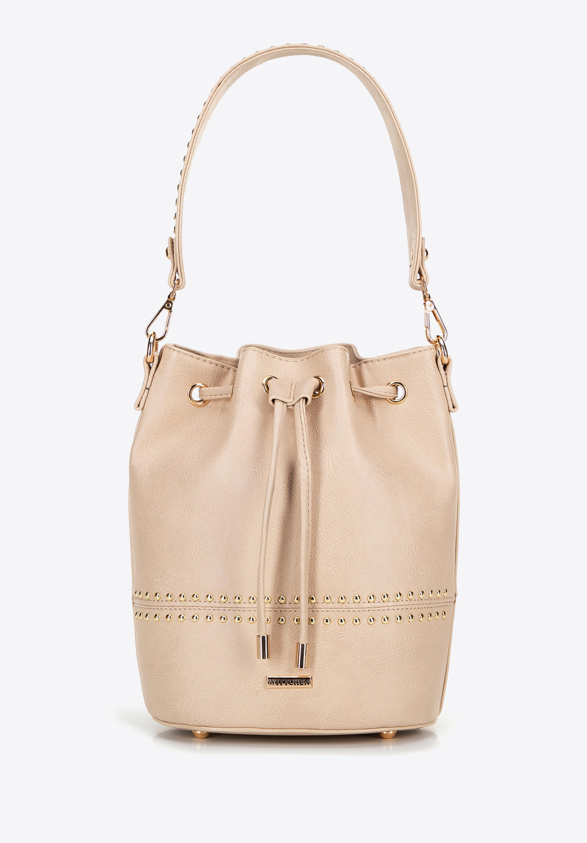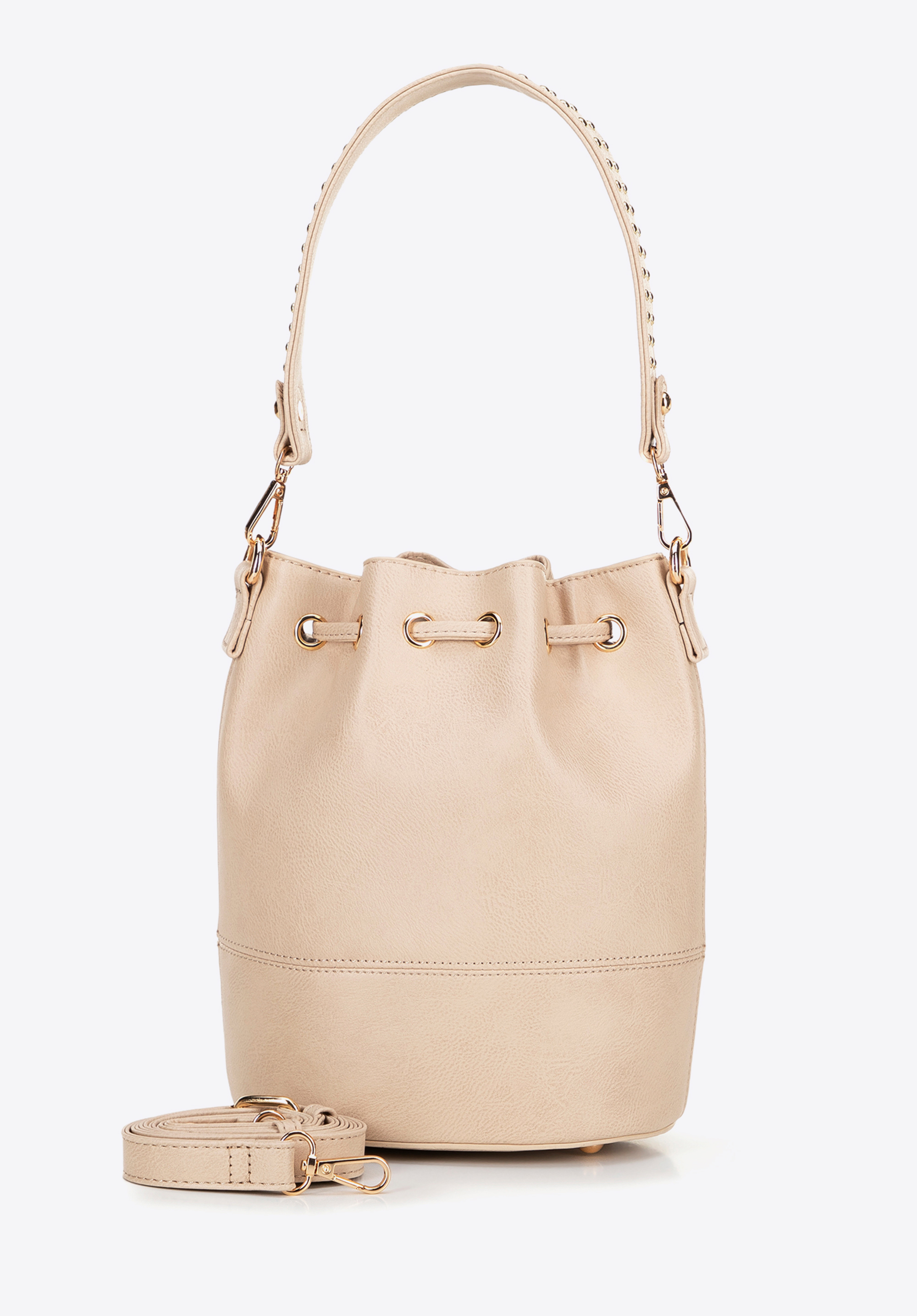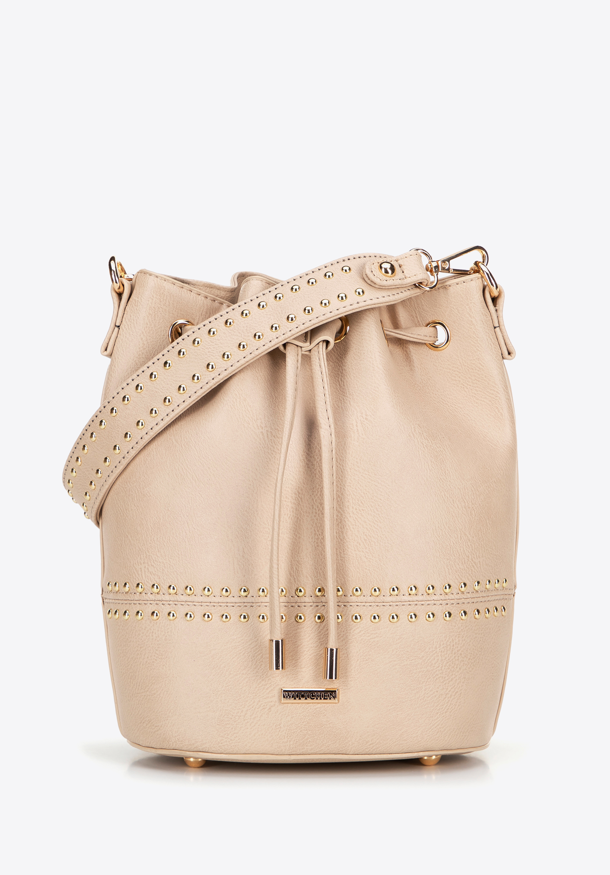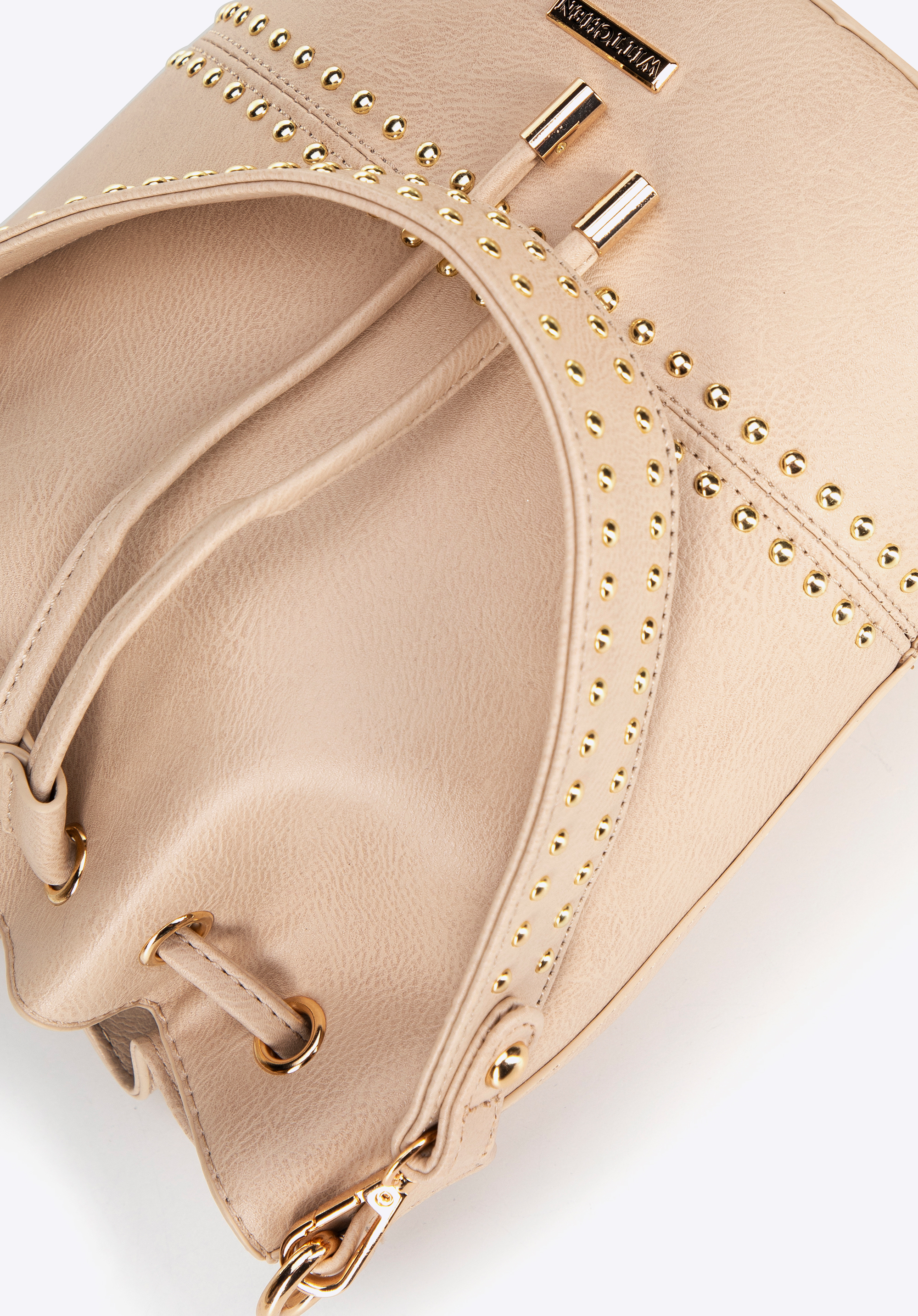 Spojte boho styl s funkčností s touto jedinečnou hobo taškou . Jeho odvážný design je zvýrazněn lesklými cvočky zdobícími rukojeť a přední část, které mu dodávají výrazný, trendy vzhled. Zapíná se na šňůrky a má praktické vnitřní kapsy a je ideální jak na každodenní výlety, tak na večerní setkání. Odnímatelný, nastavitelný popruh vám umožní přizpůsobit střih, zatímco čtyři kovové cvočky na základně pomáhají chránit jej před nečistotami.