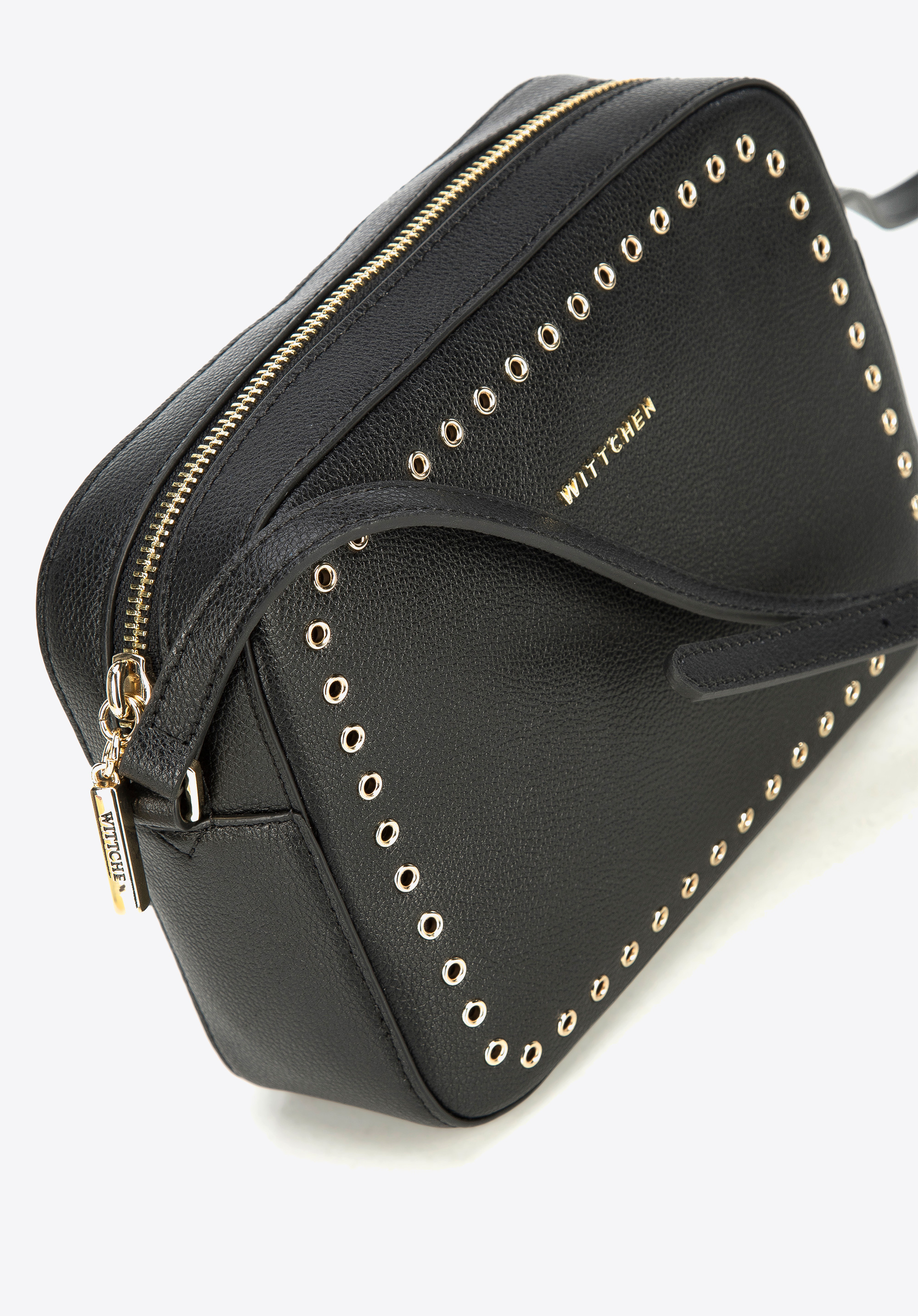 Tato malá dámská kabelka je skvělým doplňkem pro mnoho příležitostí. Je vyrobena z kvalitní přírodní kůže, takže bude vám dlouho sloužit. Klasický, krabicový tvar zdobí třpytivé nýty. Nové logo WITTCHEN je tvořené pouze písmeny. Dovnitř vejde telefon, peněženka, kapesníčky, sluneční brýle, krém a pár drobností. Ideální na procházku, do kina nebo na víkendovou prohlídku. Dámská kožená kabelka s nýty stylově doplní váš oblek.