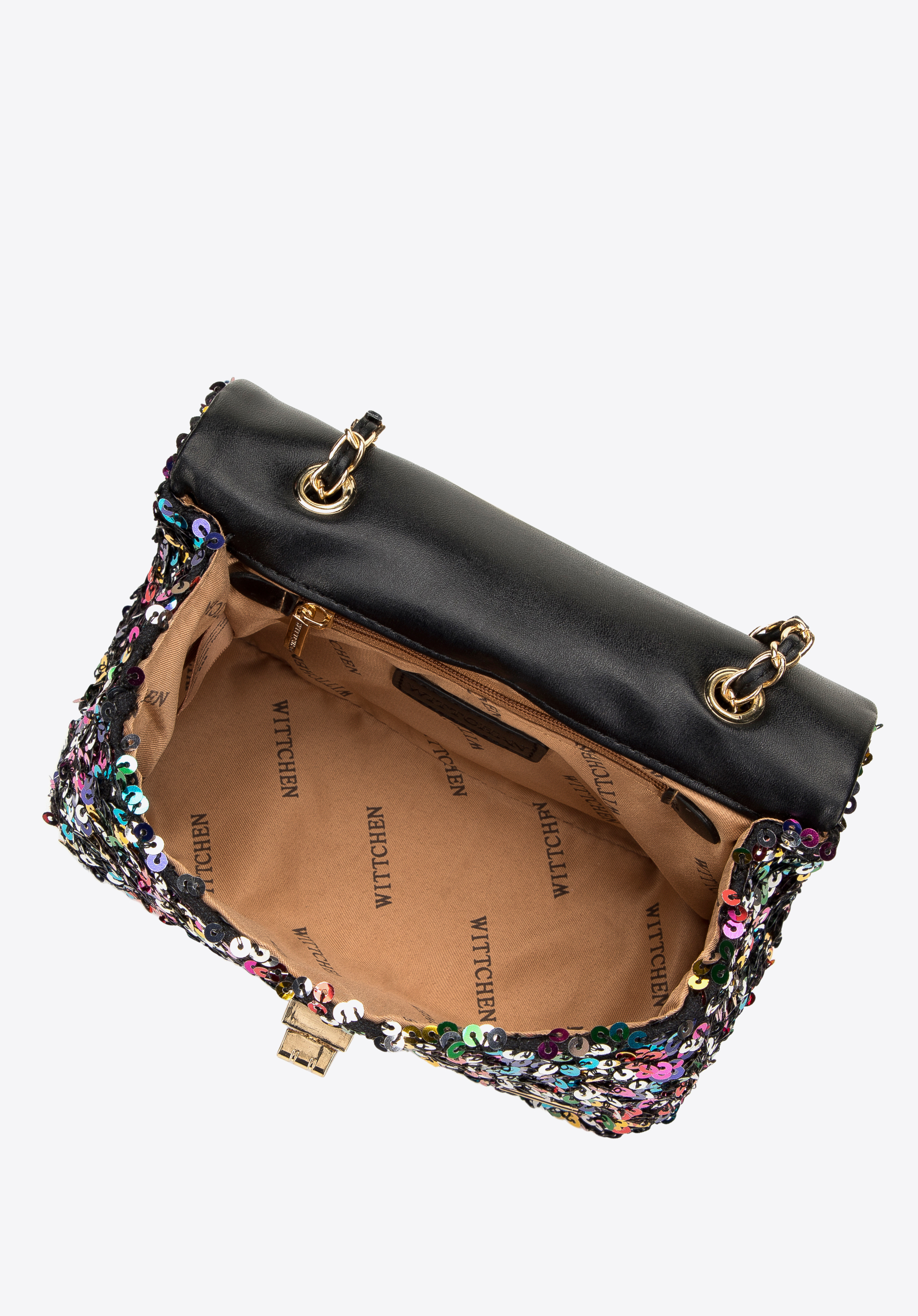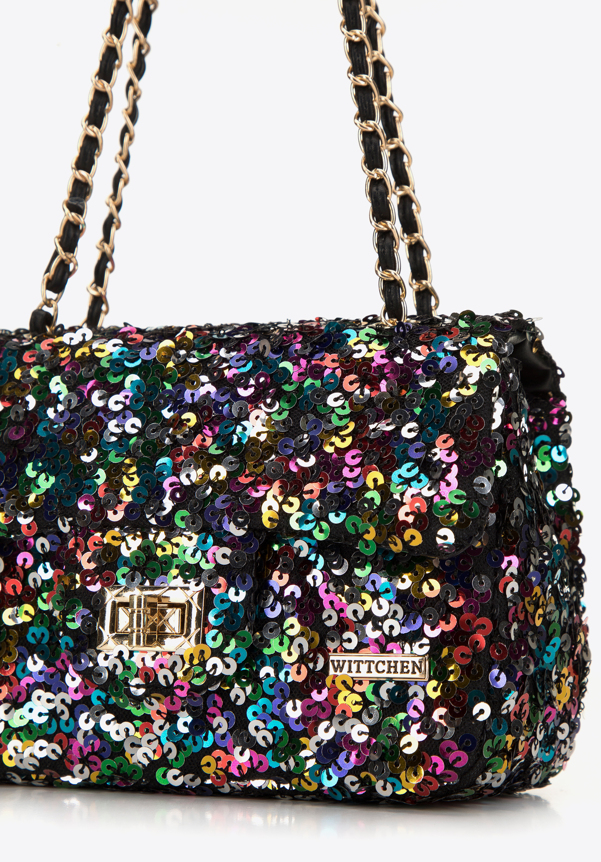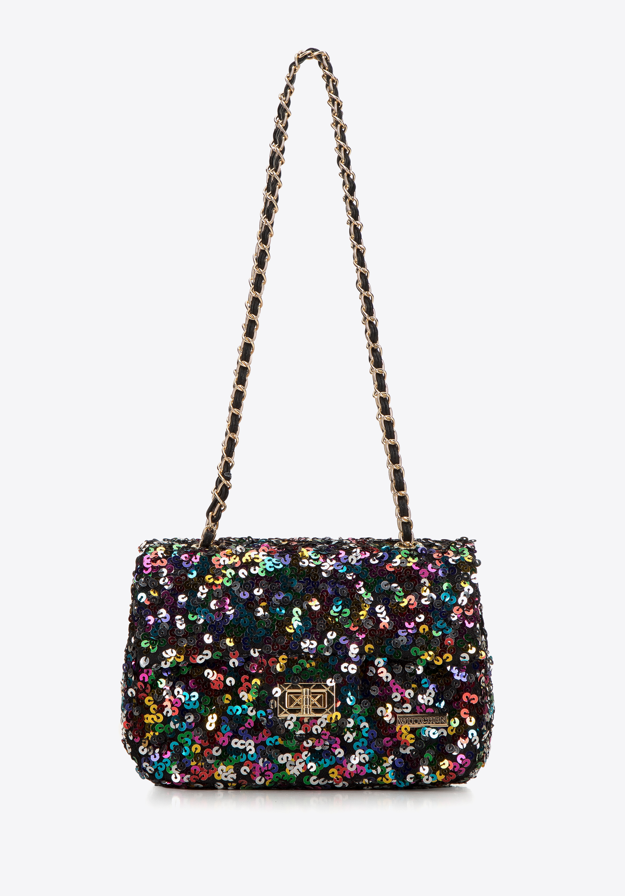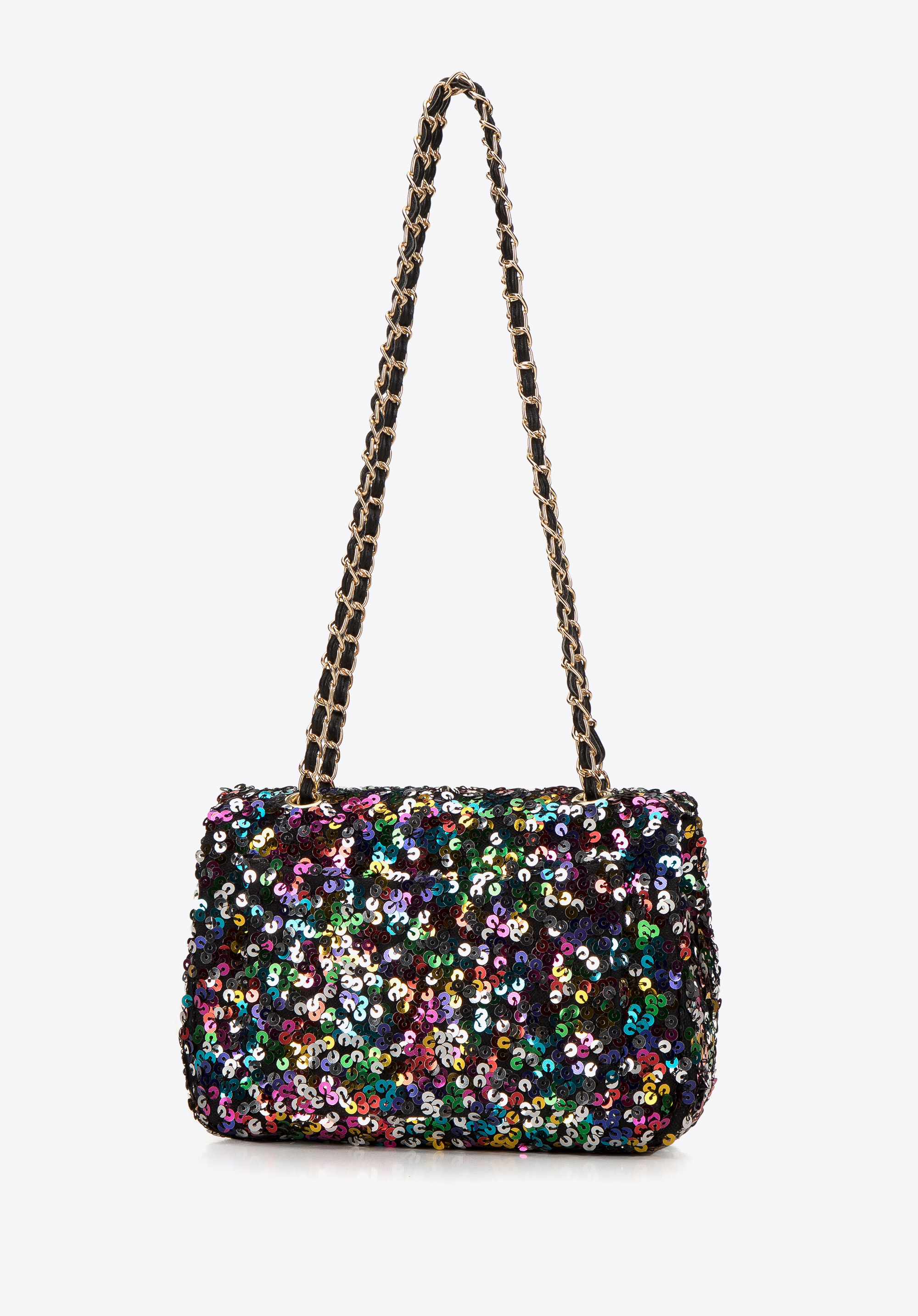 Tato kabelka je skvělou volbou pro každou milovnici originálních doplňků. Stylově zvýrazní vaše obleky a dodá jim jedinečný charakter. Dovnitř vejde telefon, pouzdro na karty, kapesníčky a oblíbená rtěnka – ideální na večeři, do divadla nebo na elegantní večírek. Je zakončena lesklými flitry a dlouhým, lesklým řetízkem. Dámská kabelka s flitry na řetízku přitáhne pozornost, proto se vyplatí ji mít ve svém šatníku.