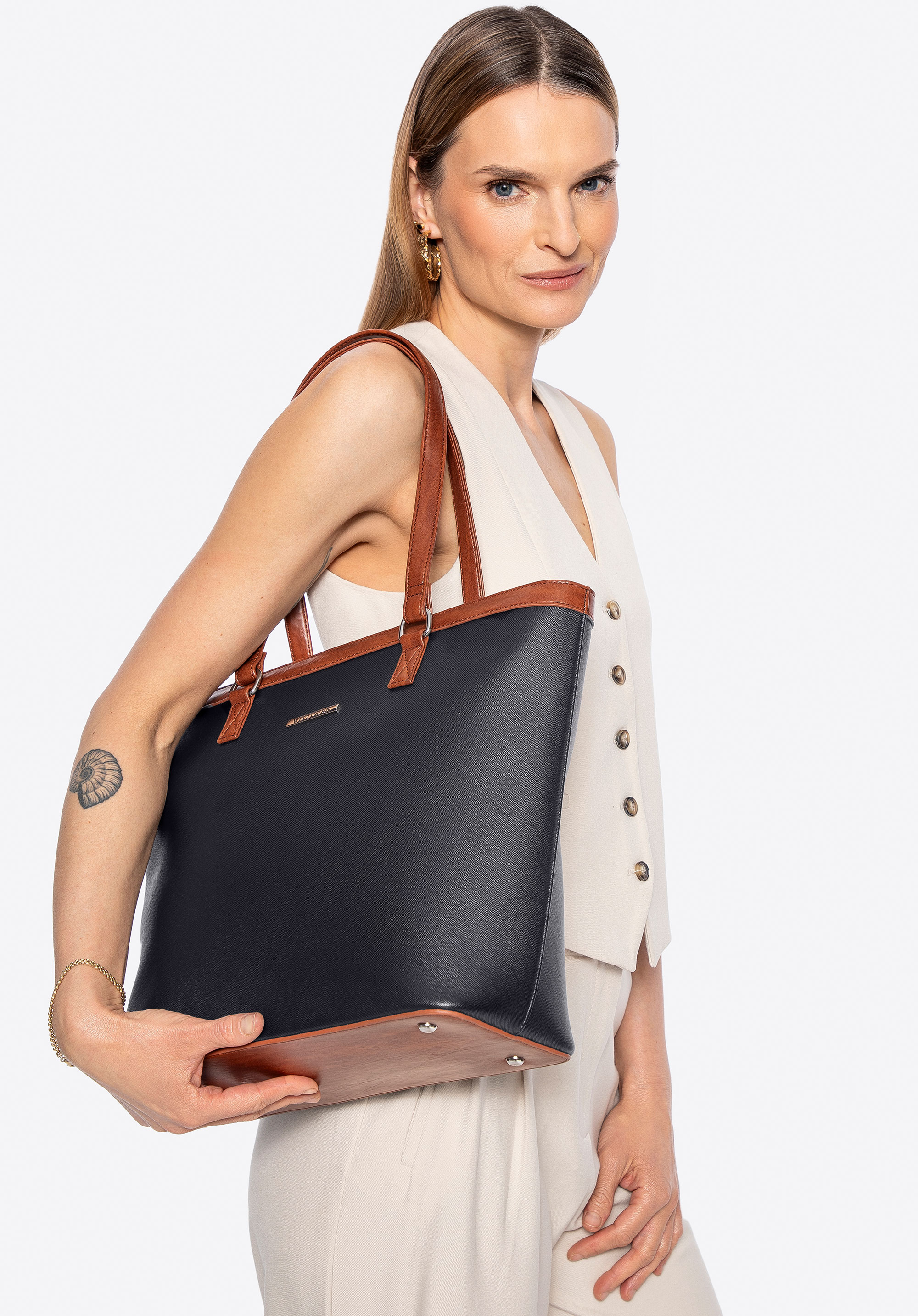 Představte si kabelku, která přizpůsobí se vašemu životnímu tempu a nabízí jedinečný styl a funkčnost. Vyrobena z eko kůže, zaujme svým elegantním povrchem. Tato kabelka je ideální pro každodenní nošení i zvláštní příležitosti, nabízí nejen nadčasový vzhled, ale také neuvěřitelnou praktičnost. Díky promyšlenému designu pojme vše, co potřebujete – od dokumentů A4 až po drobnosti, které stojí za to mít vždy po ruce.