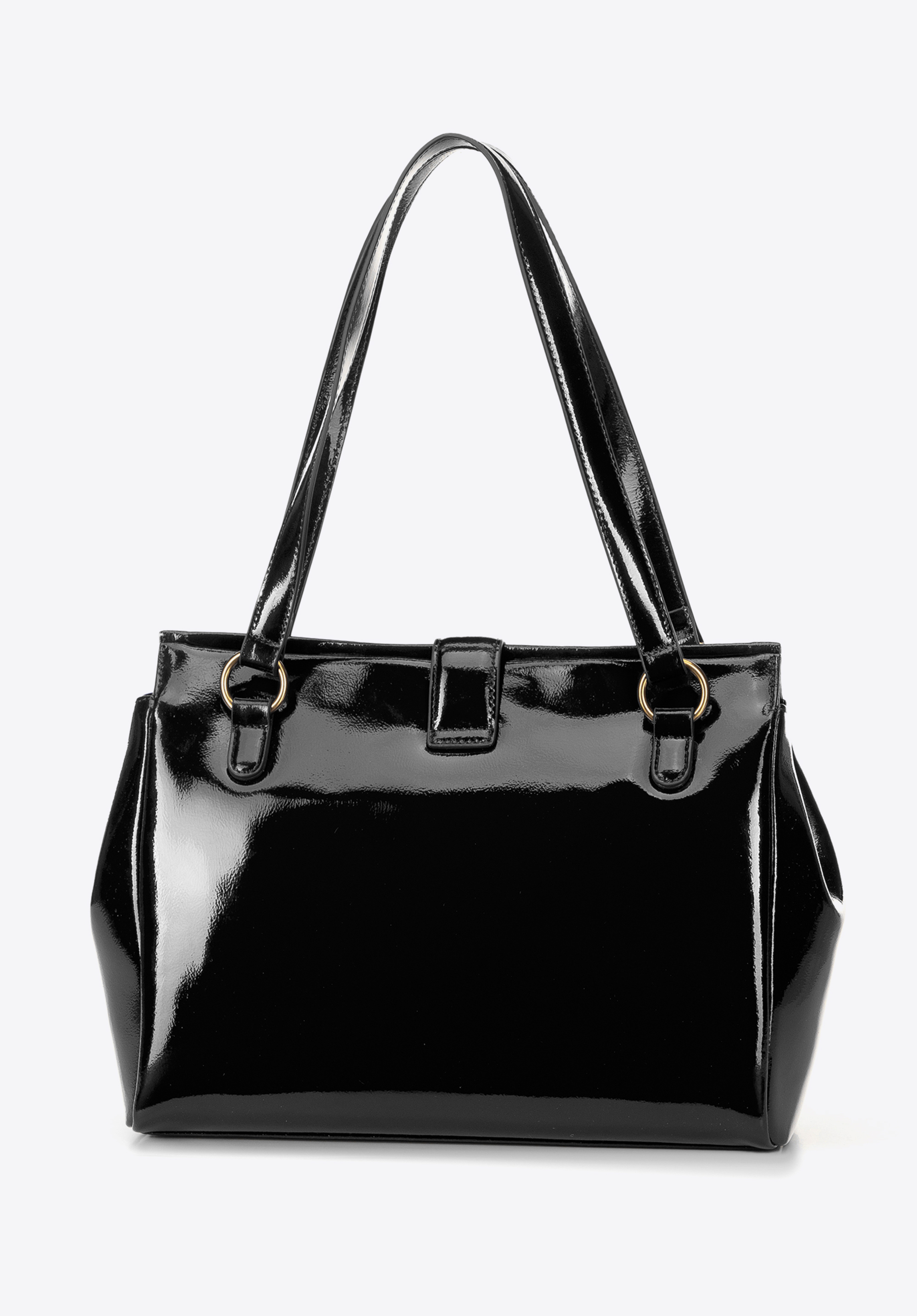 Stylová a funkční – tato kabelka je nezbytností pro milovnice klasické elegance s moderním nádechem. Vyrobena z přírodní lakované kůže, zaujme jemným leskem, který jí dodává jedinečný charakter. Dvě ucha z mikrovlákna imitujícího kůži zajišťují pohodlné nošení a promyšlená konstrukce umožňuje změnu tvaru díky bočním patentkám. Kabelka se uzavírá na zip a magnetický pásek, což poskytuje bezpečnost i komfort při používání.