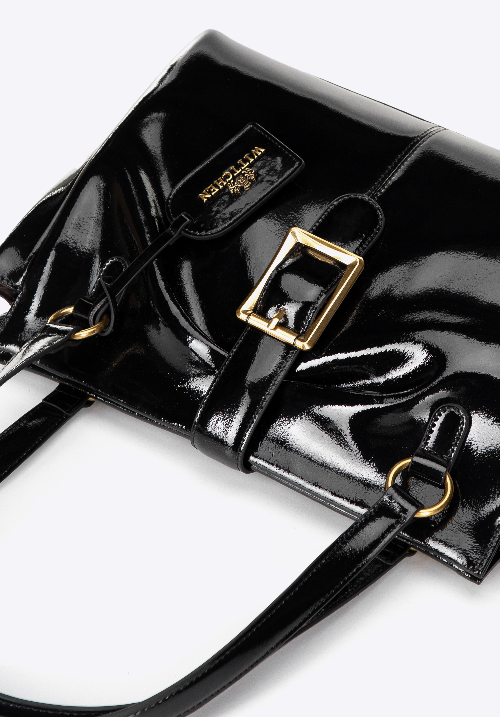 Elegantní lakovaná kabelka s odnímatelným přívěskem