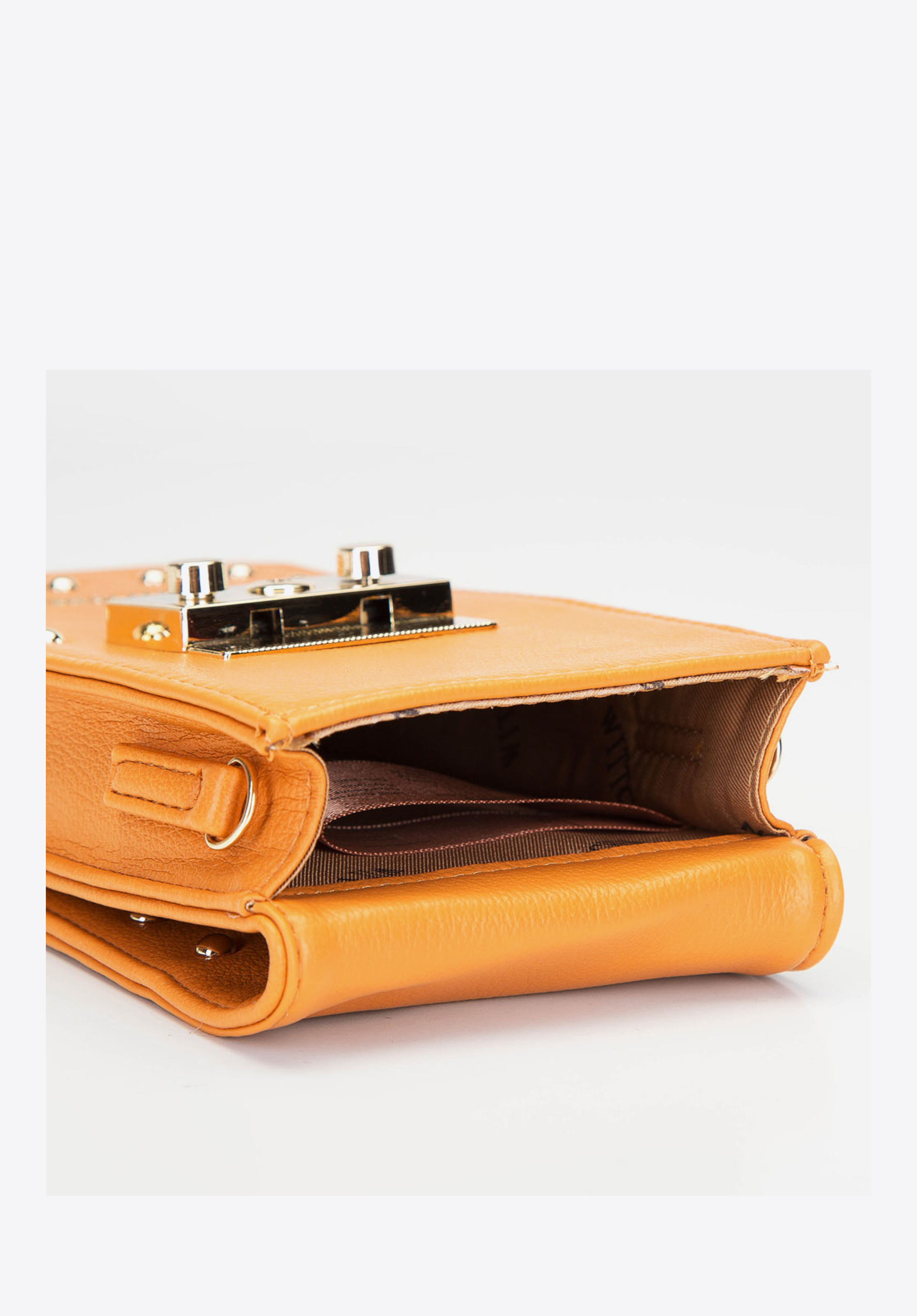 Tato kabelka je zdobená nýty. Nejen skvěle vypadá, ale je také praktická. Můžete do něj vložit své základní osobní věci. Perfektní řešení pro rychlé nakupování. Je vyrobena z ekologické kůže. Má zesílenou přední a zadní stěnu a udržuje svůj pěkný krabicový tvar. Po odejmutí tenkého pásku získáte praktické pouzdro.