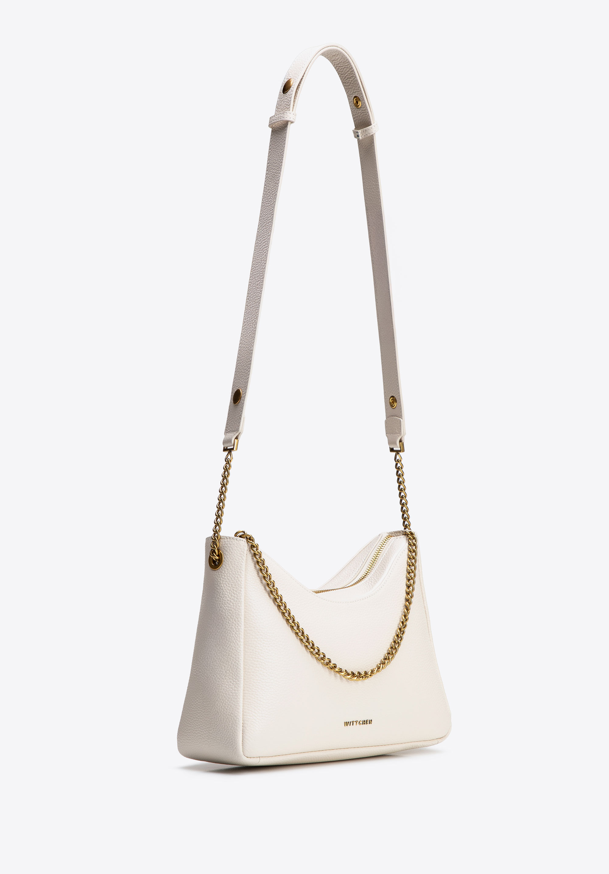 - Estetické akcenty: Řetízek a široký popruh s nýty dodávají tašce jedinečný charakter a módní styl.