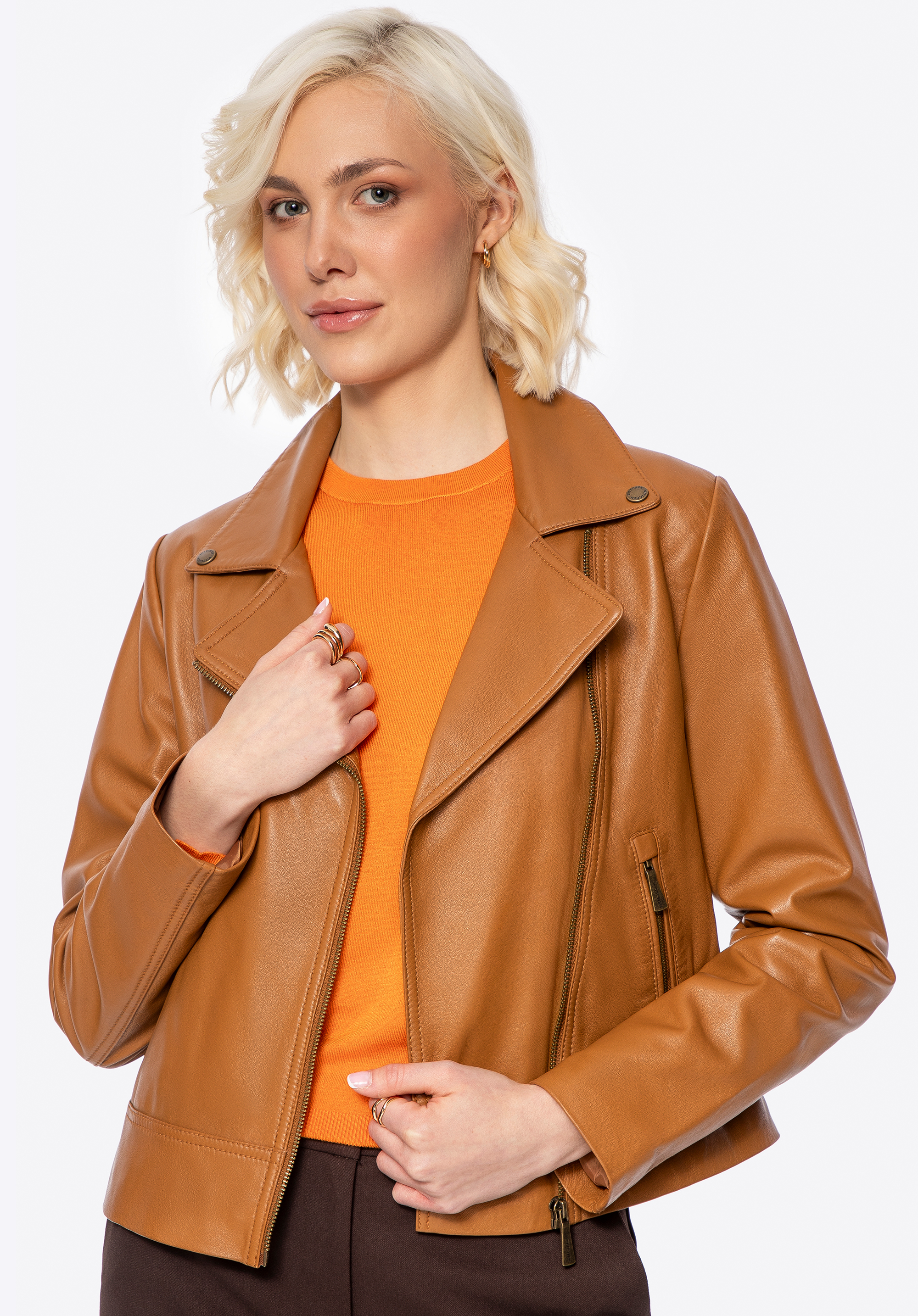 Dámská kožená motorkářská bunda Barva: karamelová