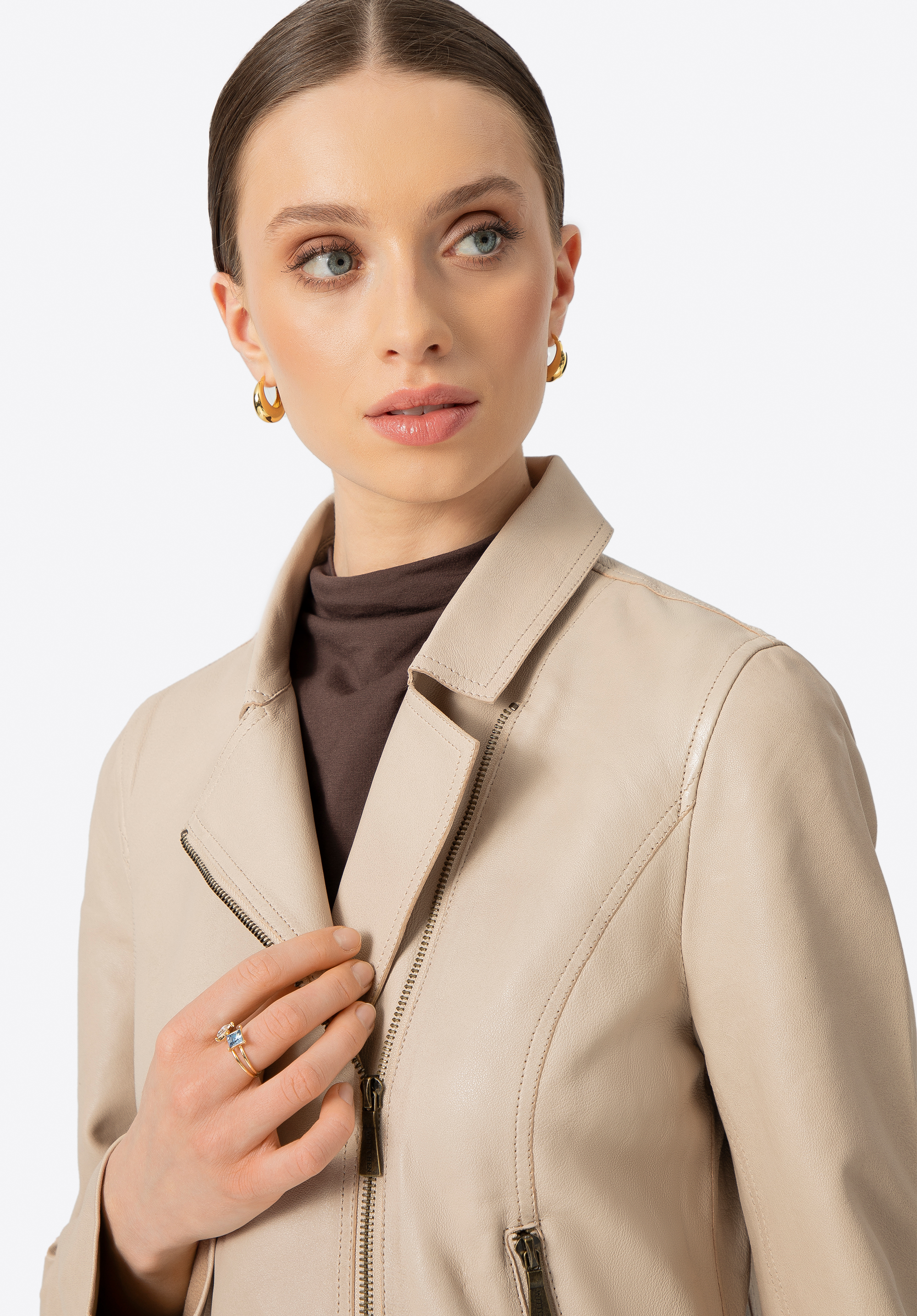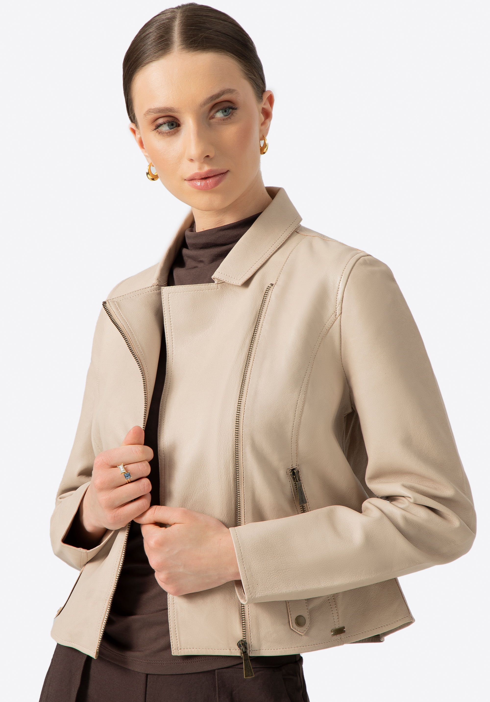 Dámská krémová bunda z ovčí kůže