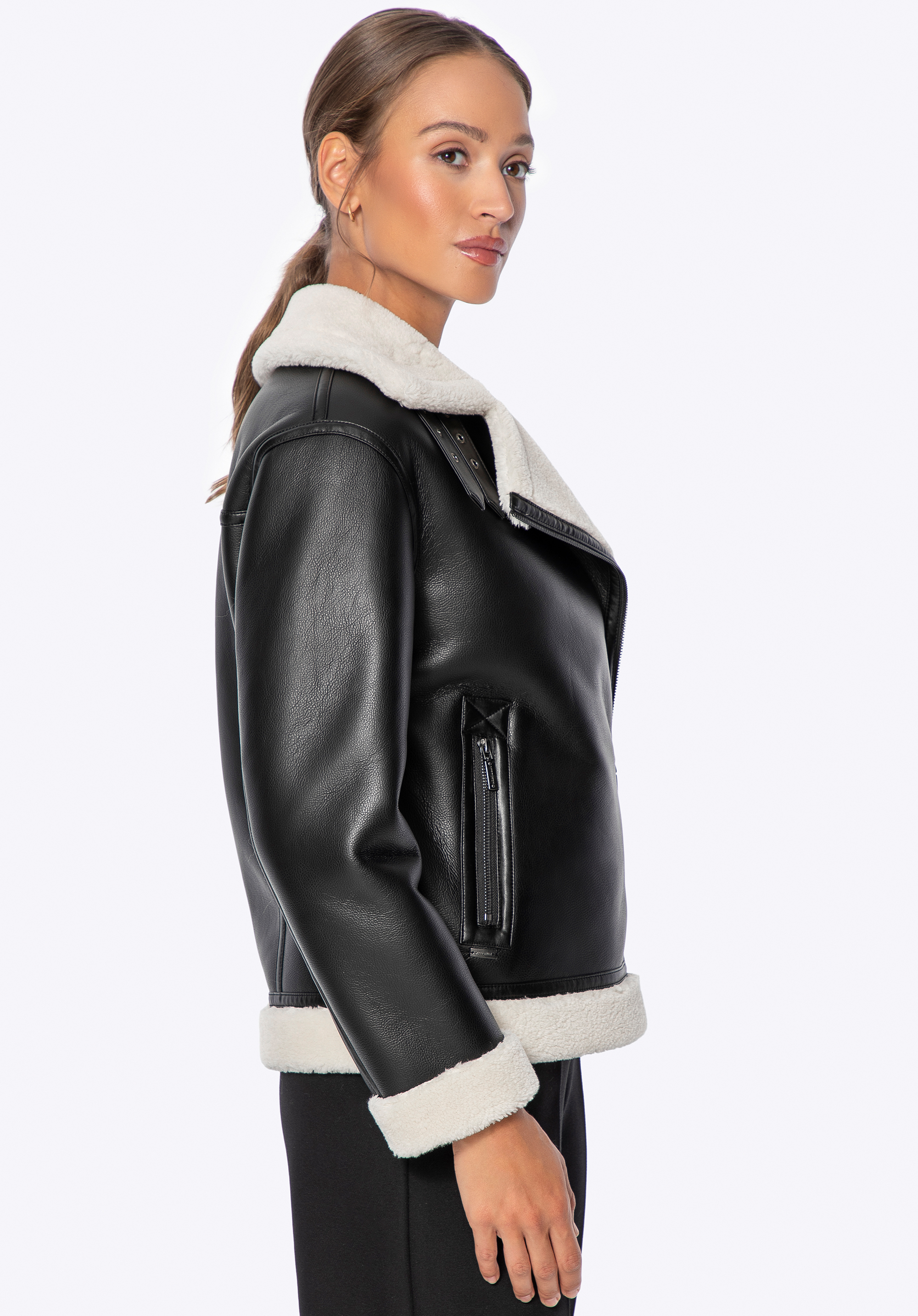 Hledáte svrchní oblečení, které kombinuje výrazný styl s každodenním pohodlím? Tato dámská bunda vyrobená z hladké umělé kůže je moderní odpovědí na chladné počasí – je měkká na dotek, má výrazný vzhled a je ideální do chladného počasí. Jemně lesklý materiál imituje pravou kůži, zatímco plyšová podšívka z umělé kožešiny vás udrží v teple a pohodlí. Volný střih nabízí volnost pohybu a perfektně se hodí k vrstveným outfitům, zatímco asymetrický zip a ramínka u krku dodávají módní nádech.