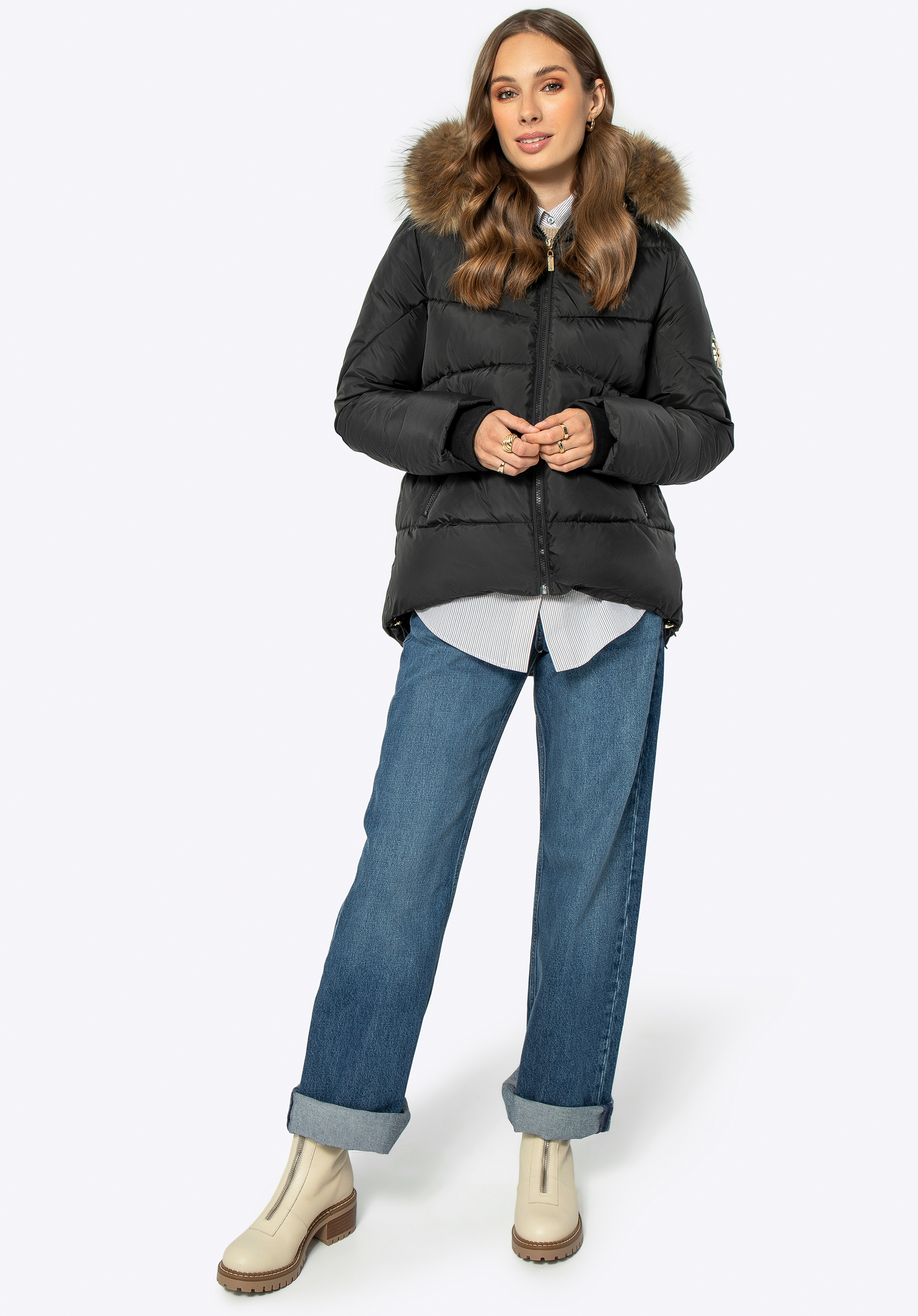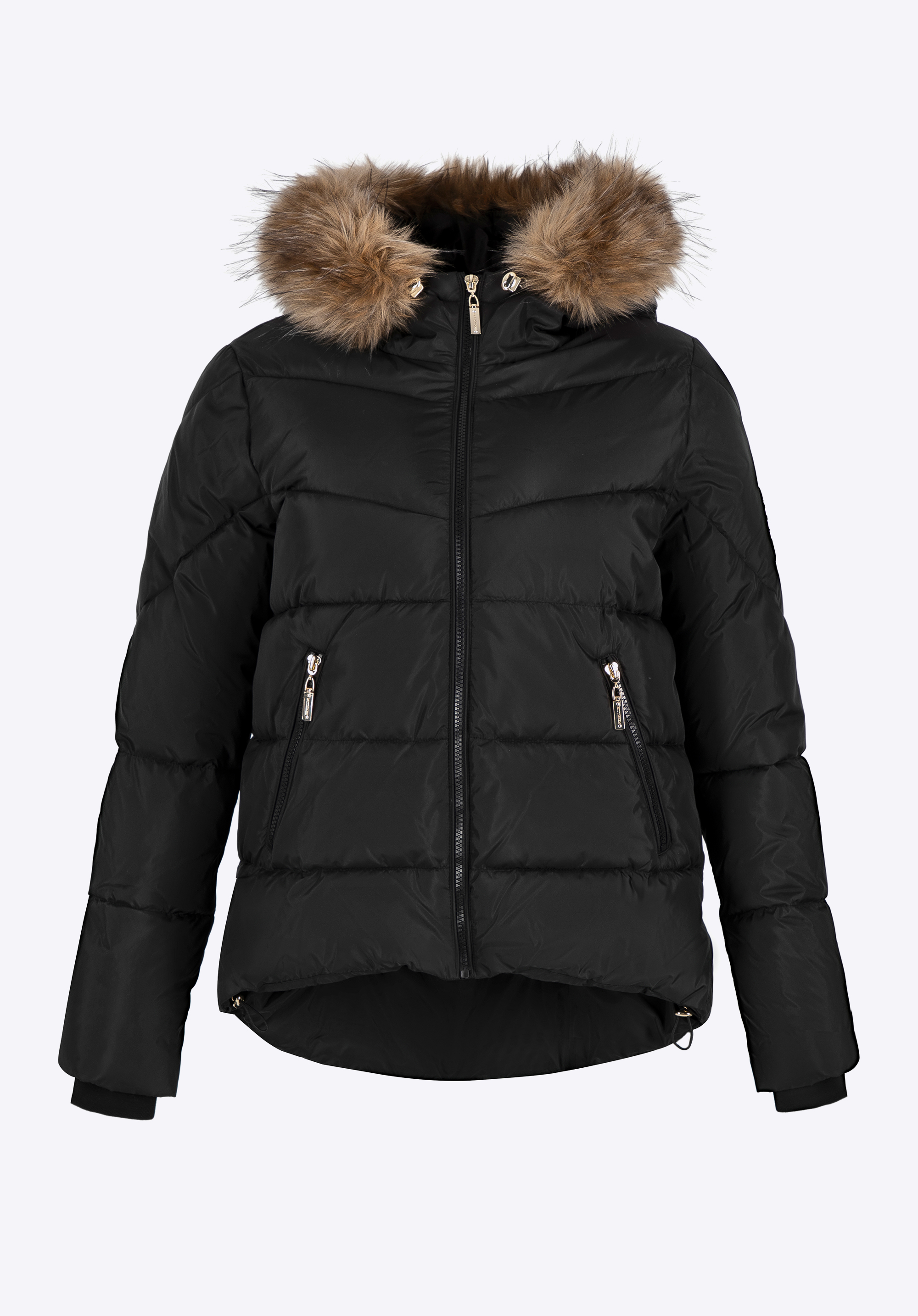 Dámská péřová bunda s odepínací kožešinovou kapucí