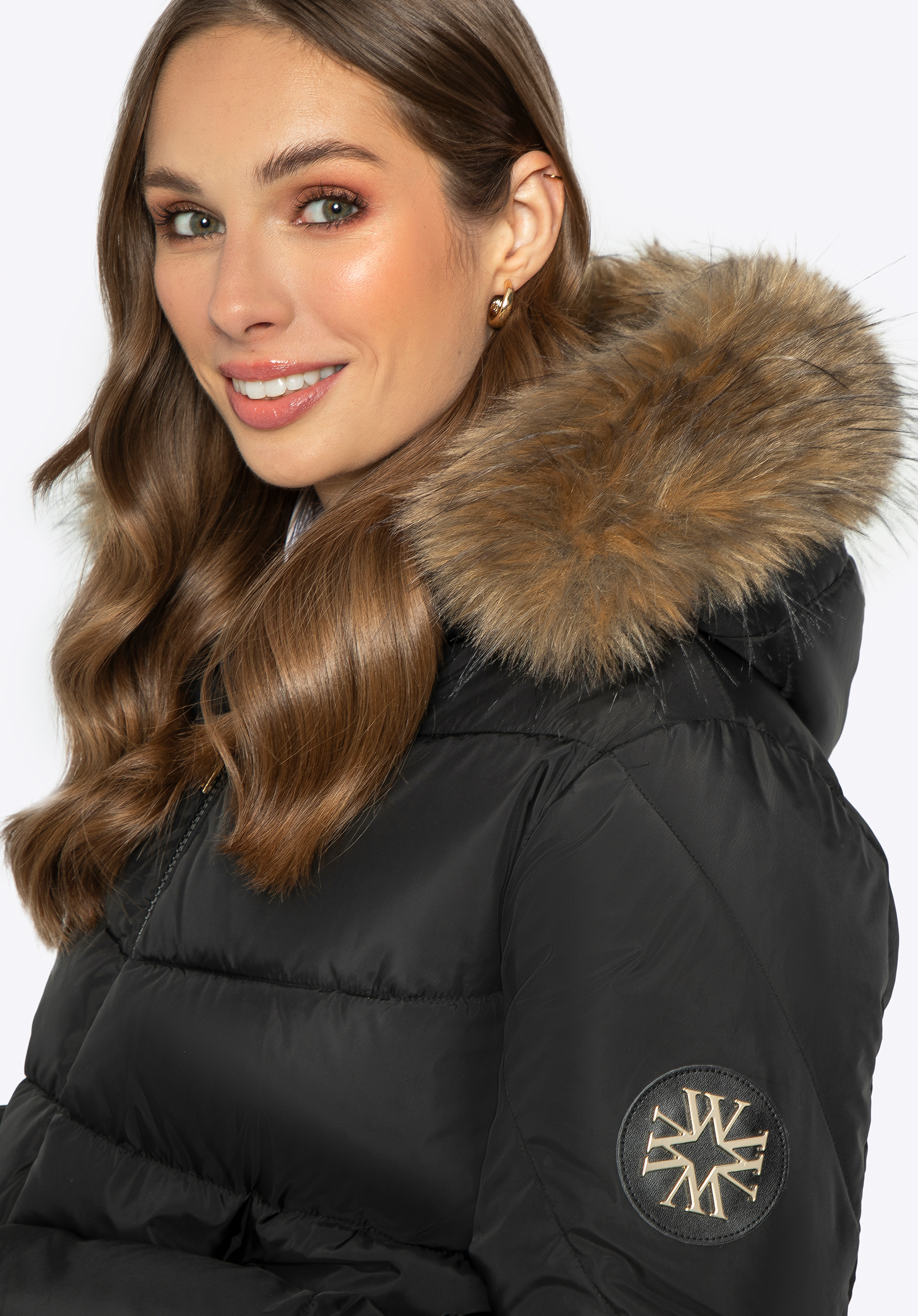 - Detaily: Kapuce zakončená ekologickou kožešinou dodává eleganci a je praktická - lze ji snadno odepnout v závislosti na počasí. Na levém rameni je monogram výrobce, který zdůrazňuje charakter značky bundy.
