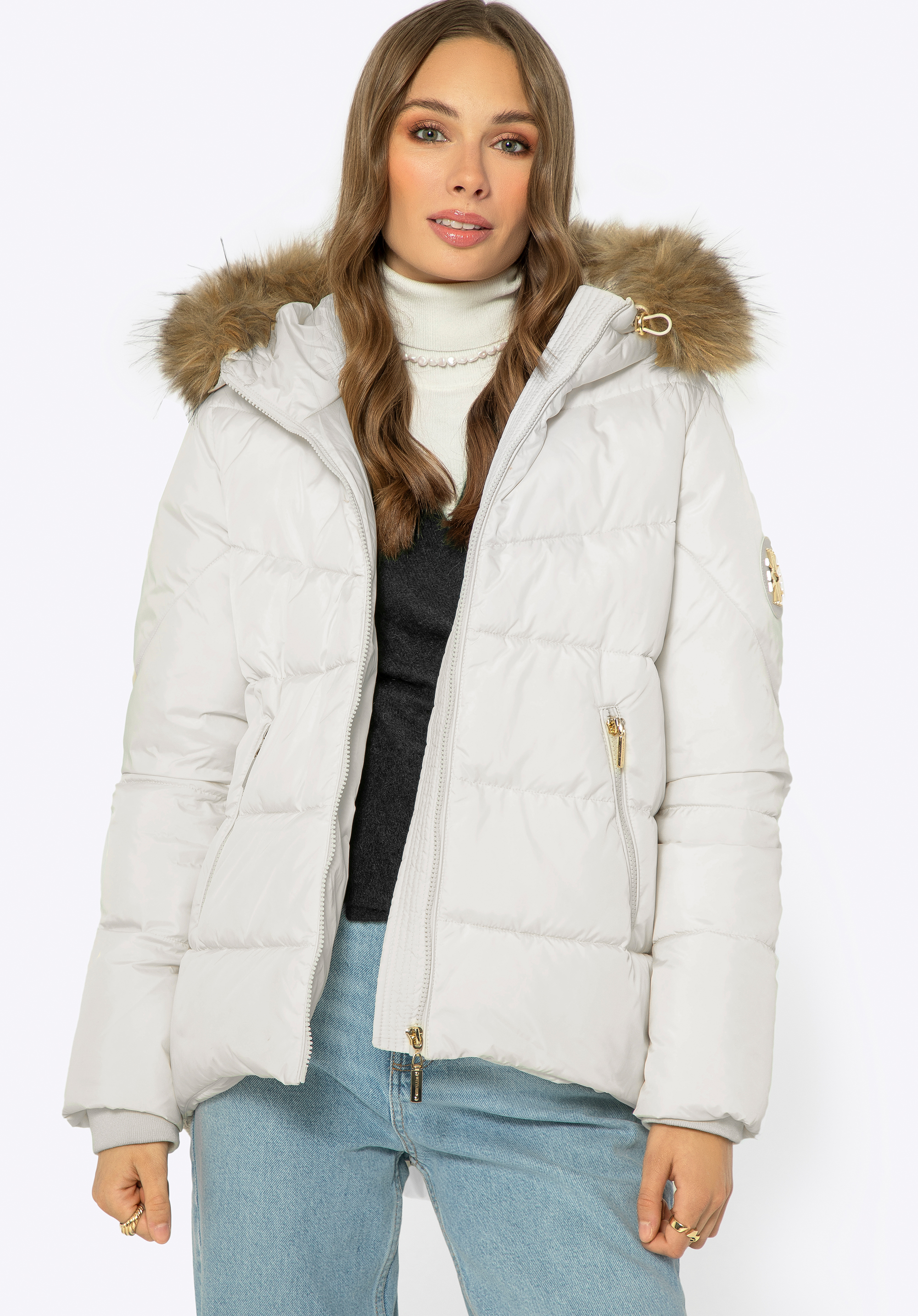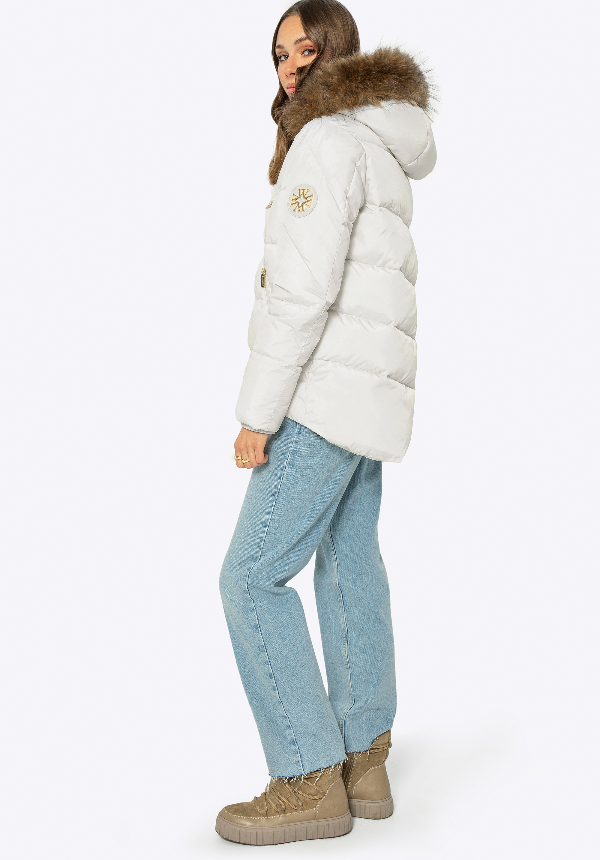Pro koho: Péřová bunda s odepínací kožešinovou kapucí je stvořená pro ženy, které oceňují eleganci spojenou s funkčností.