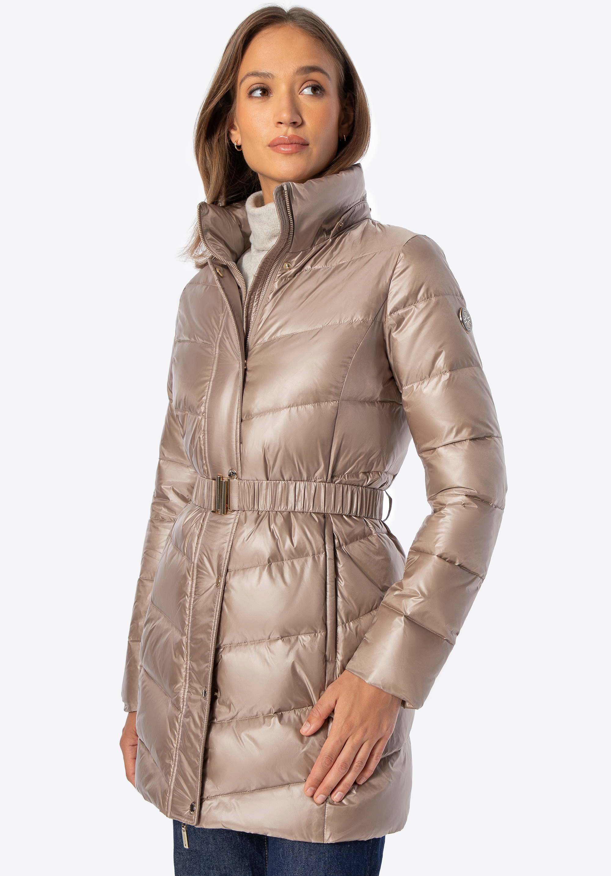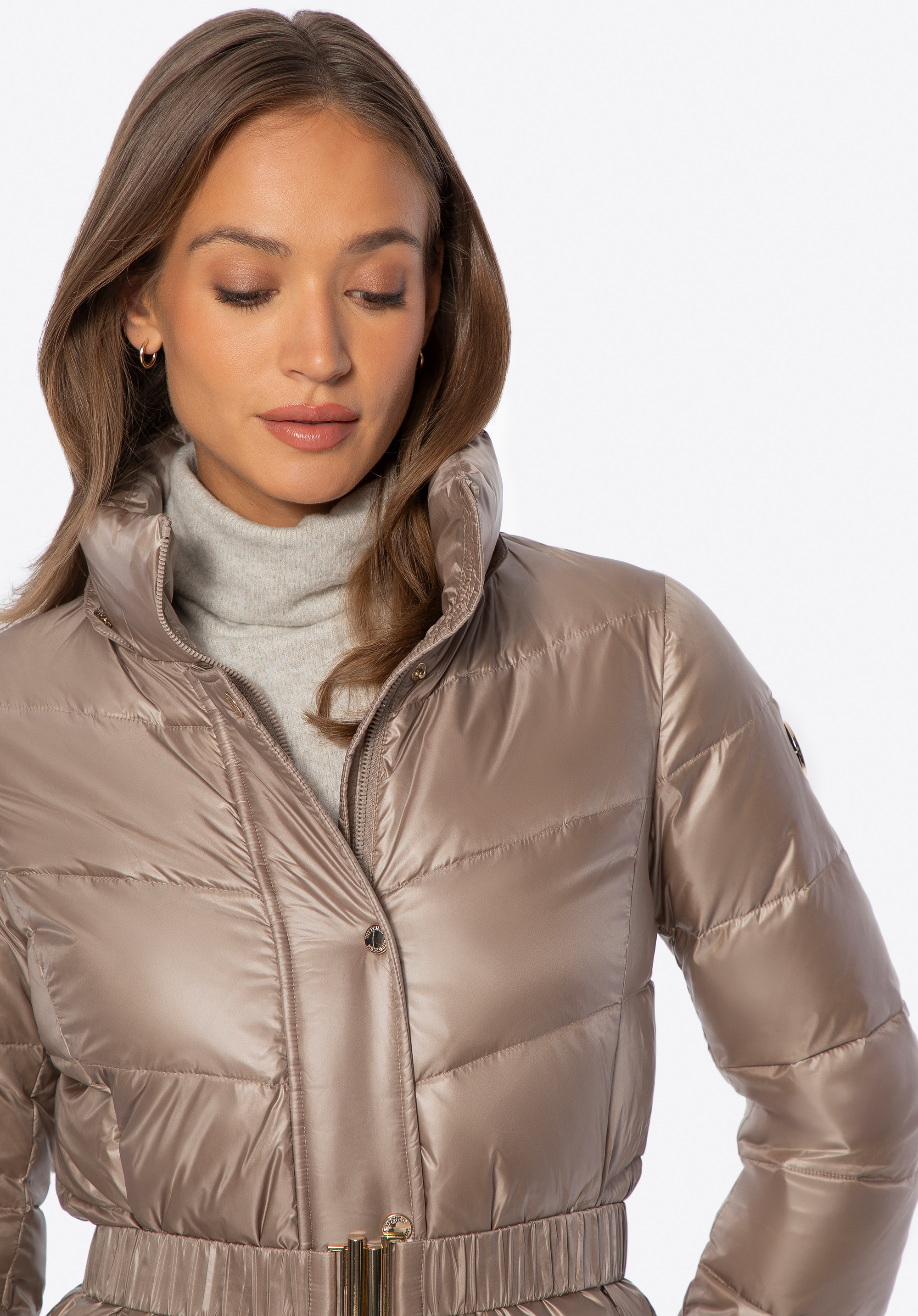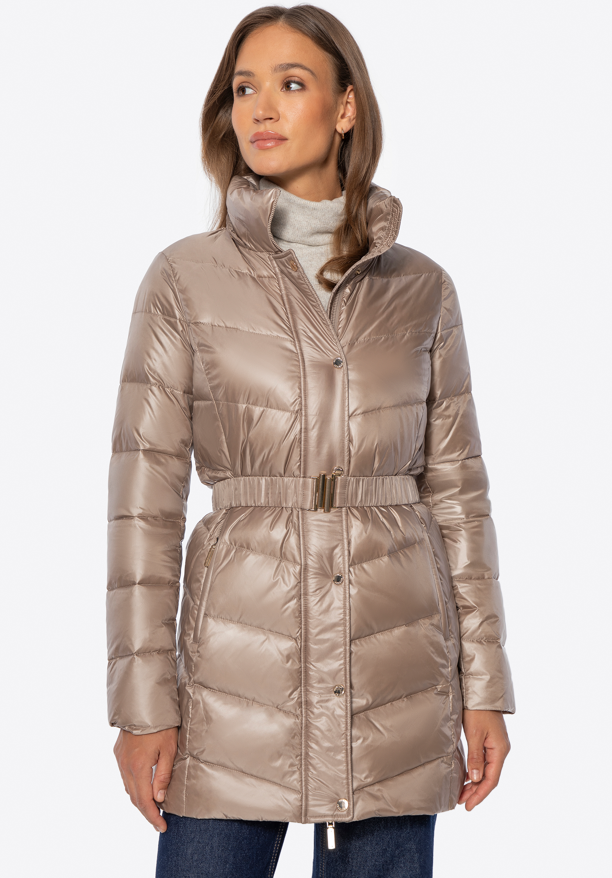 Dámská prošívaná bunda s páskem – elegance a teplo v zimním provedení