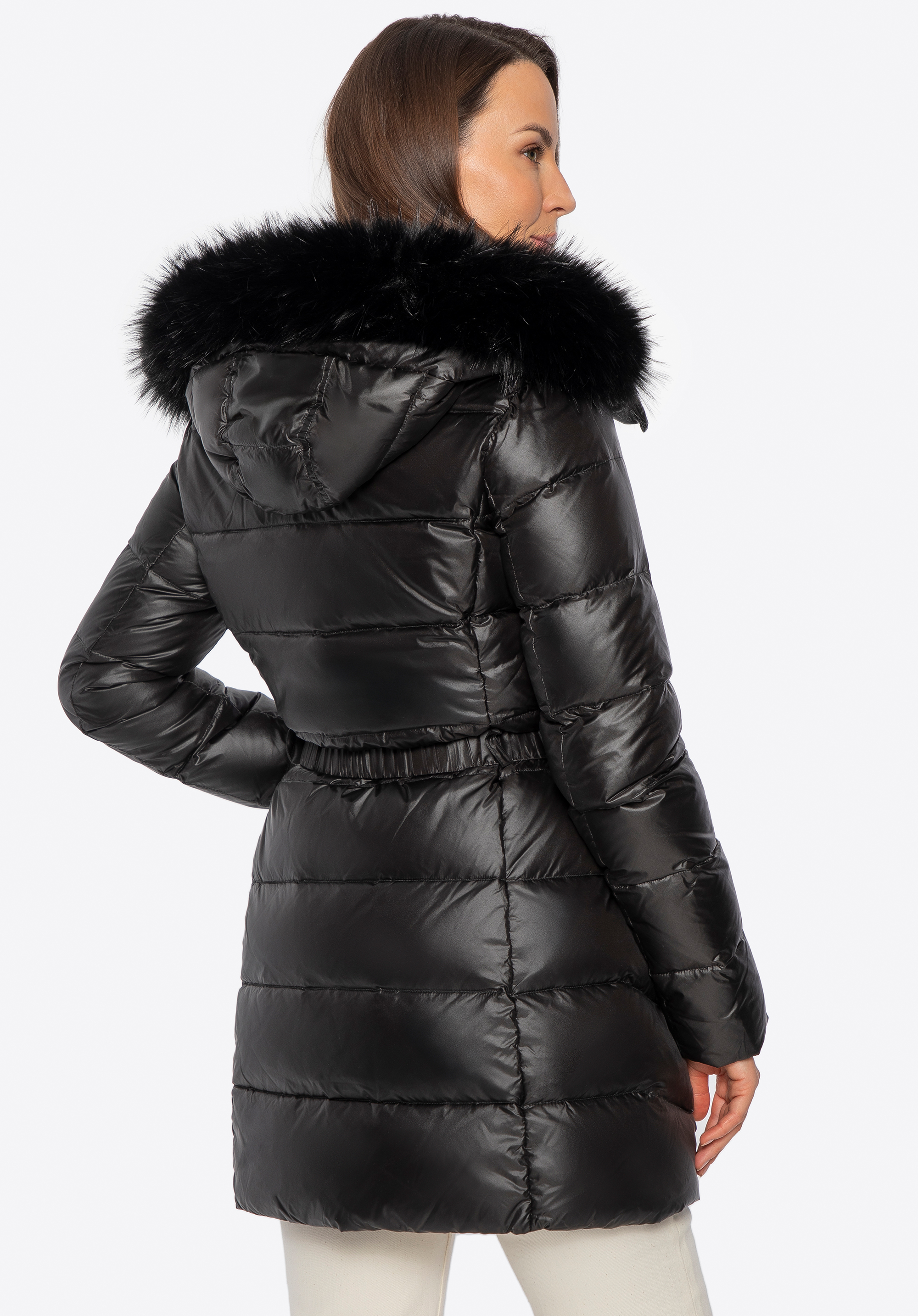 - Odnímatelná kapuce: Zdobená měkkou umělou kožešinou , která dodává eleganci a umožňuje vám přizpůsobit vzhled různým příležitostem.
