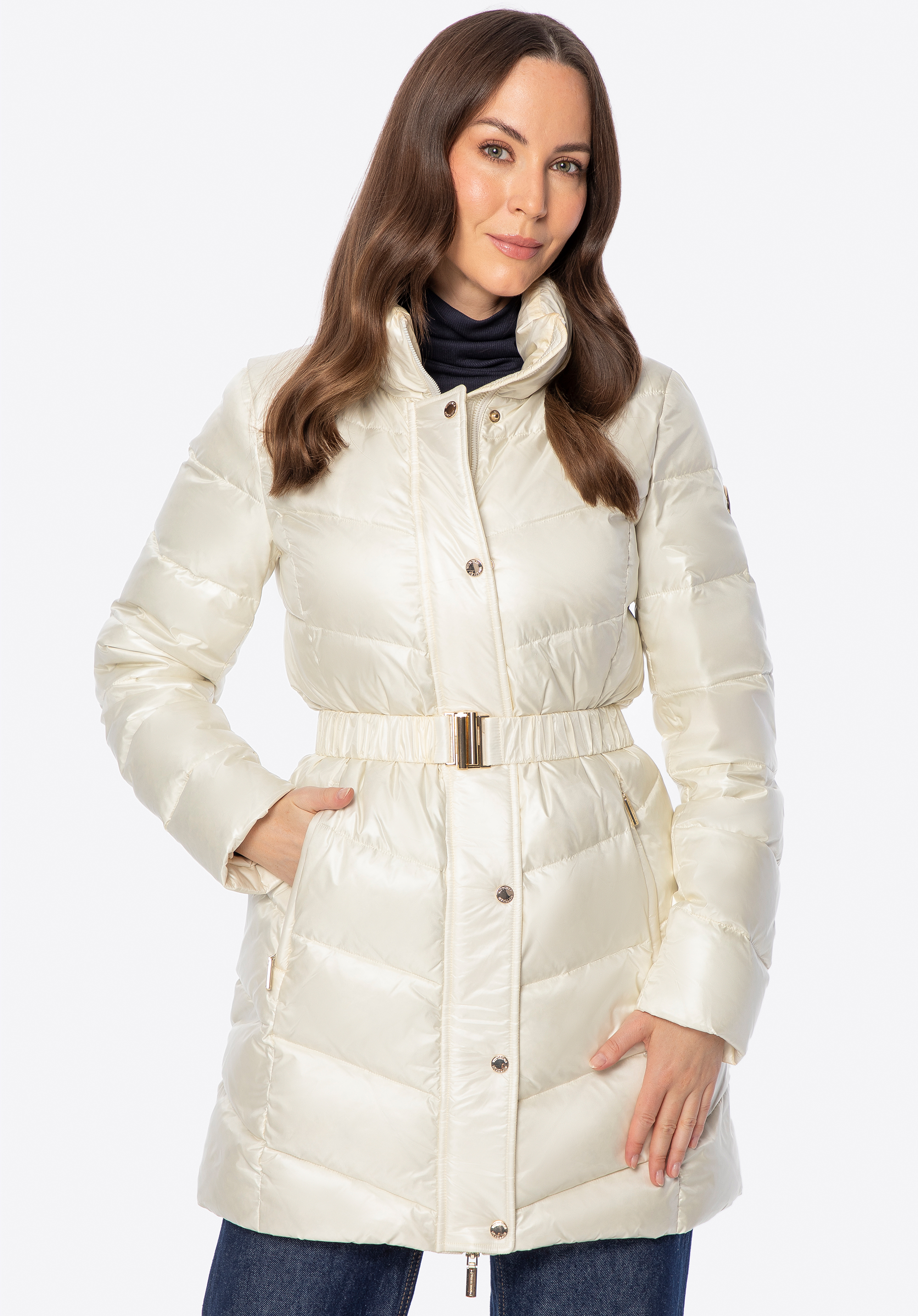 Dámská prošívaná bunda s páskem – elegance a teplo v zimním provedení