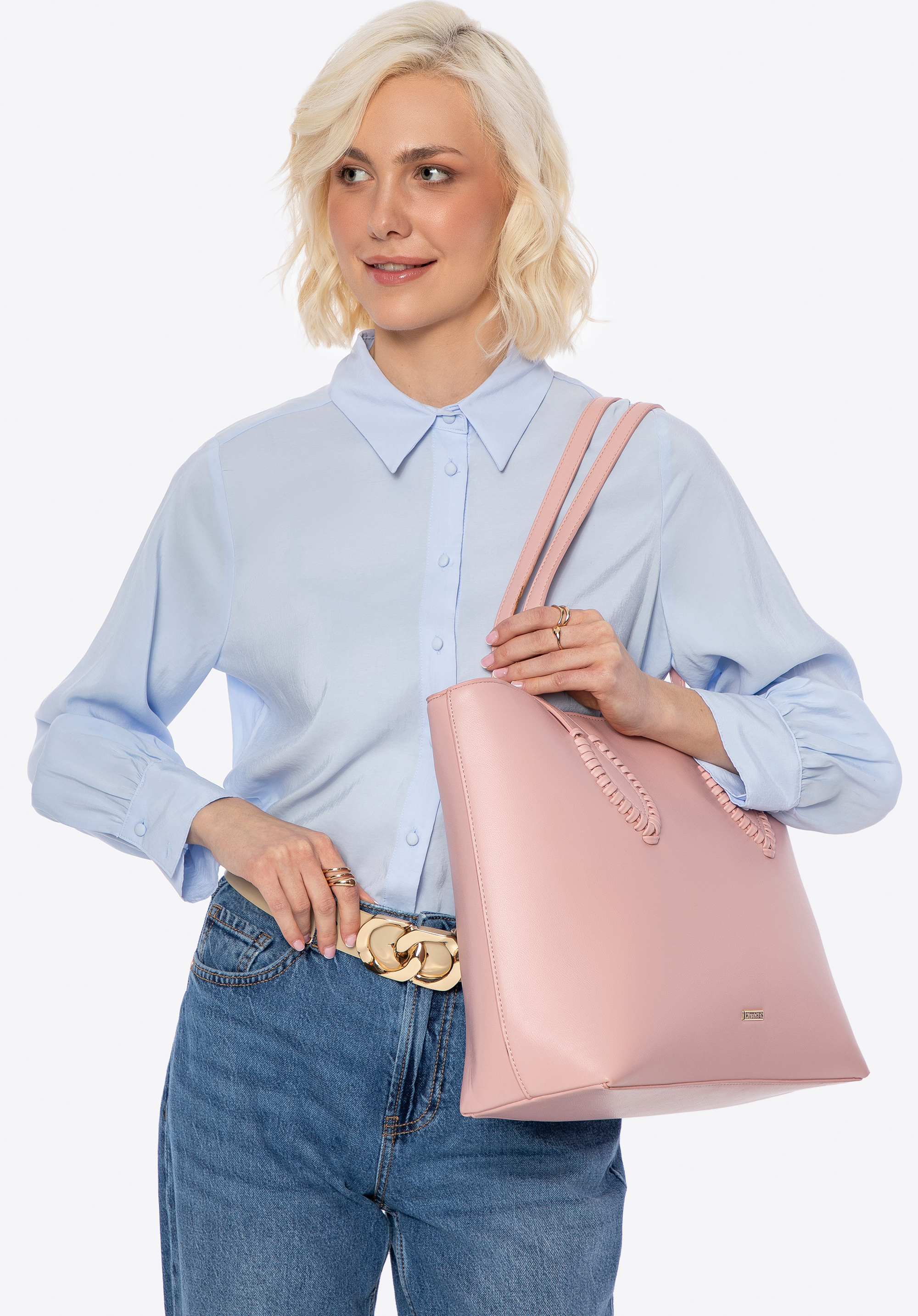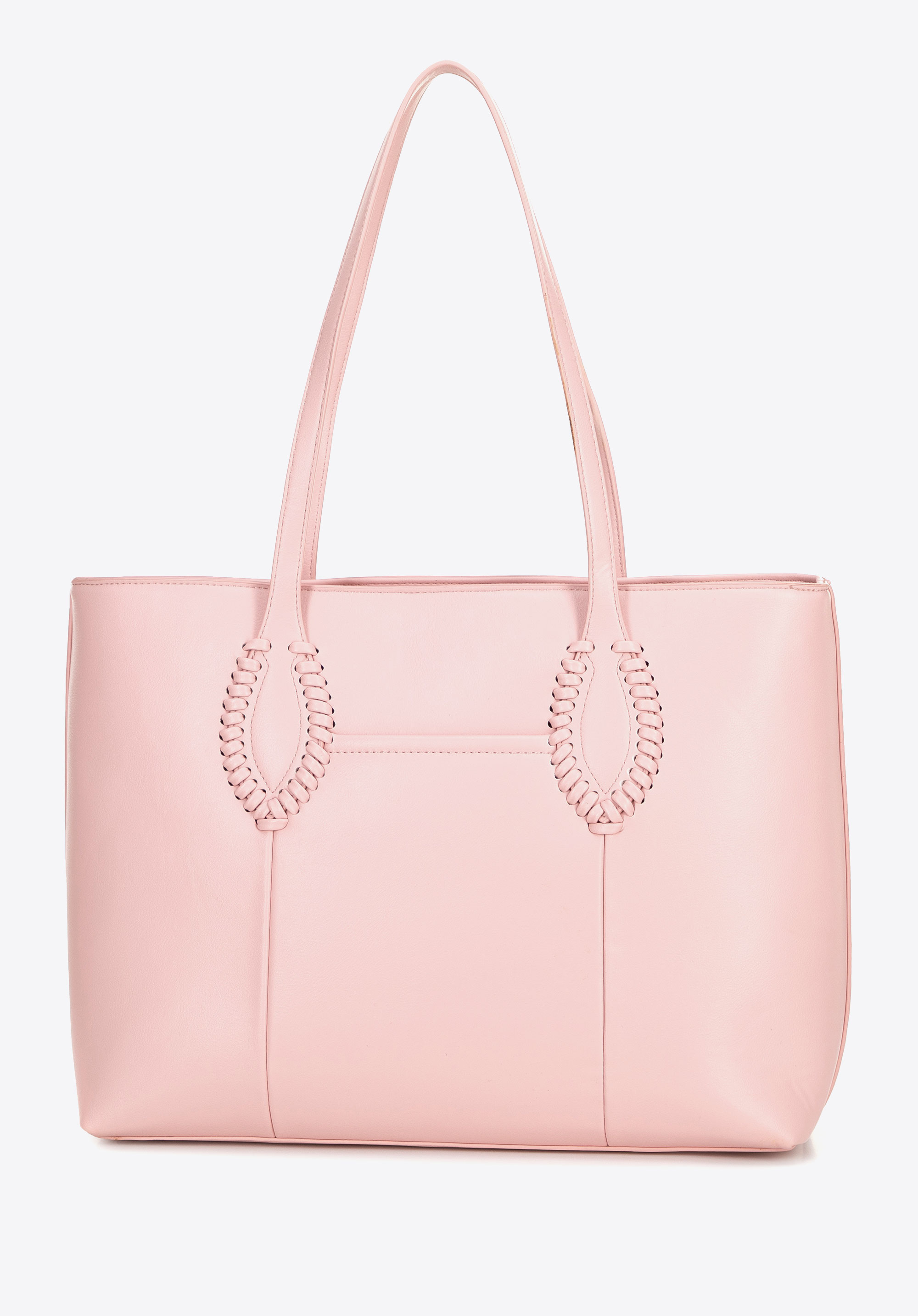 Stylová, prostorná a dokonale organizovaná – tato nákupní taška je nutností pro každodenní outfity. Díky klasickému designu doplněnému o jemné detaily se perfektně hodí k elegantnímu i neformálnímu vzhledu. Dvě pohodlná ucha umožňují snadné nošení přes rameno, zatímco ozdobný tkaný detail na rukojetích dodává jedinečný nádech. Taška se zapíná na zip a uvnitř najdete tři praktické kapsy , z toho jednu na zip. Další otevřená kapsa na zadní straně je ideální pro vaše nezbytnosti.