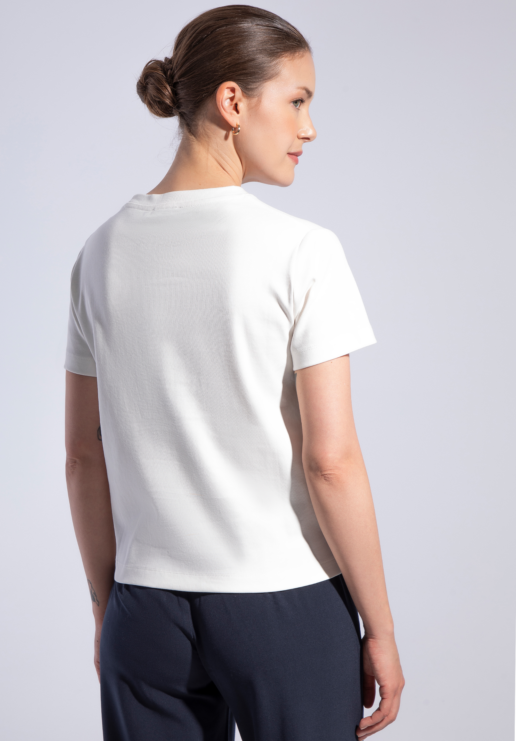 Toto dámské tričko dokonale kombinuje pohodlí, kvalitu a nadčasový styl. Vyrobeno z měkké , přírodní bavlny , jemně obepíná pokožku a poskytuje celodenní pohodlí. Klasický kulatý výstřih a krátké rukávy z něj činí ideální základ pro každodenní i elegantnější outfity. Decentní vyšívané logo ve tvaru „W“ s vavřínovým listem dodává eleganci a zdůrazňuje charakter značky. Celý kus je pečlivě zakončen dvojitým stehem , který chrání tričko před deformací a pomáhá udržovat bezchybný tvar.