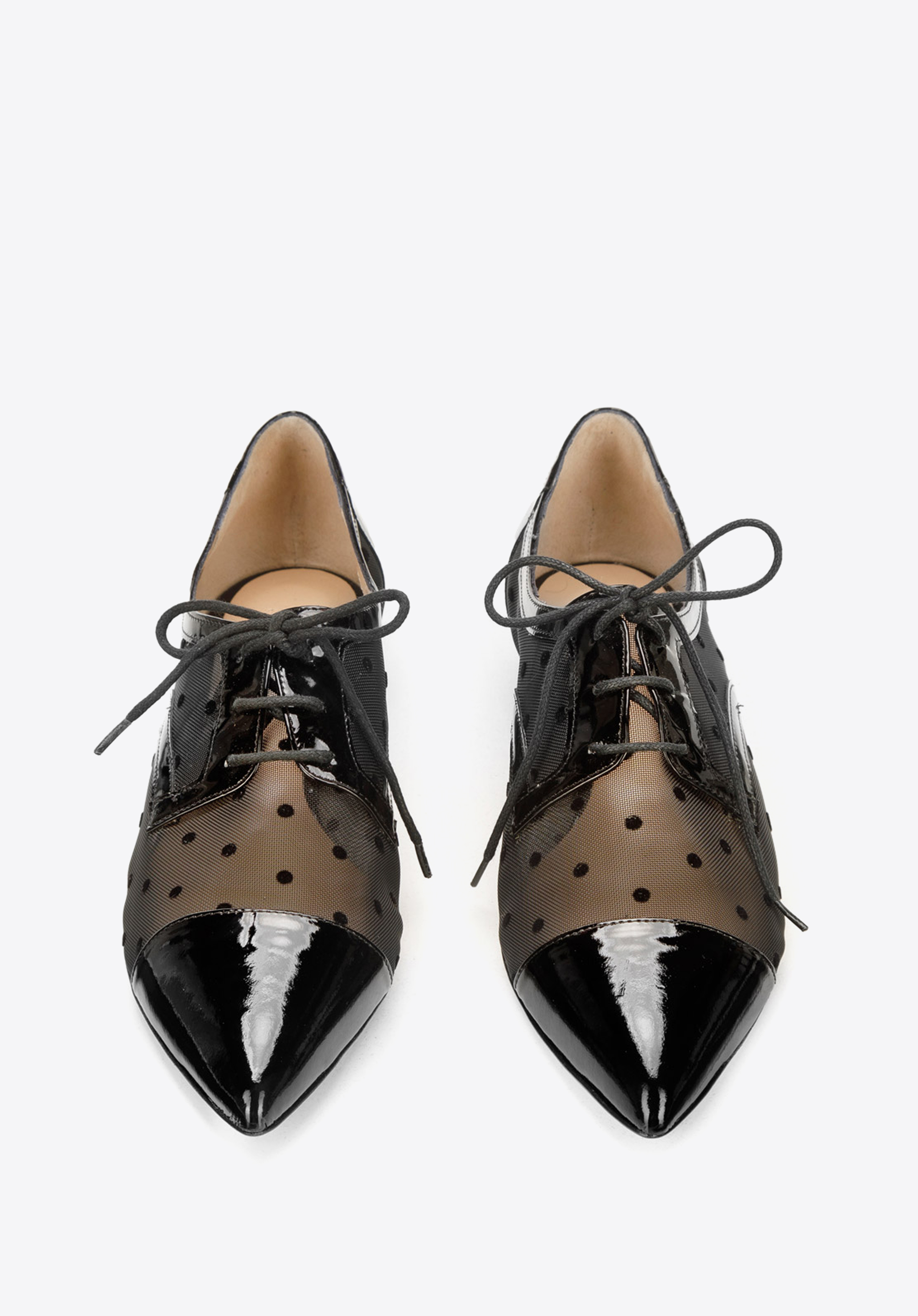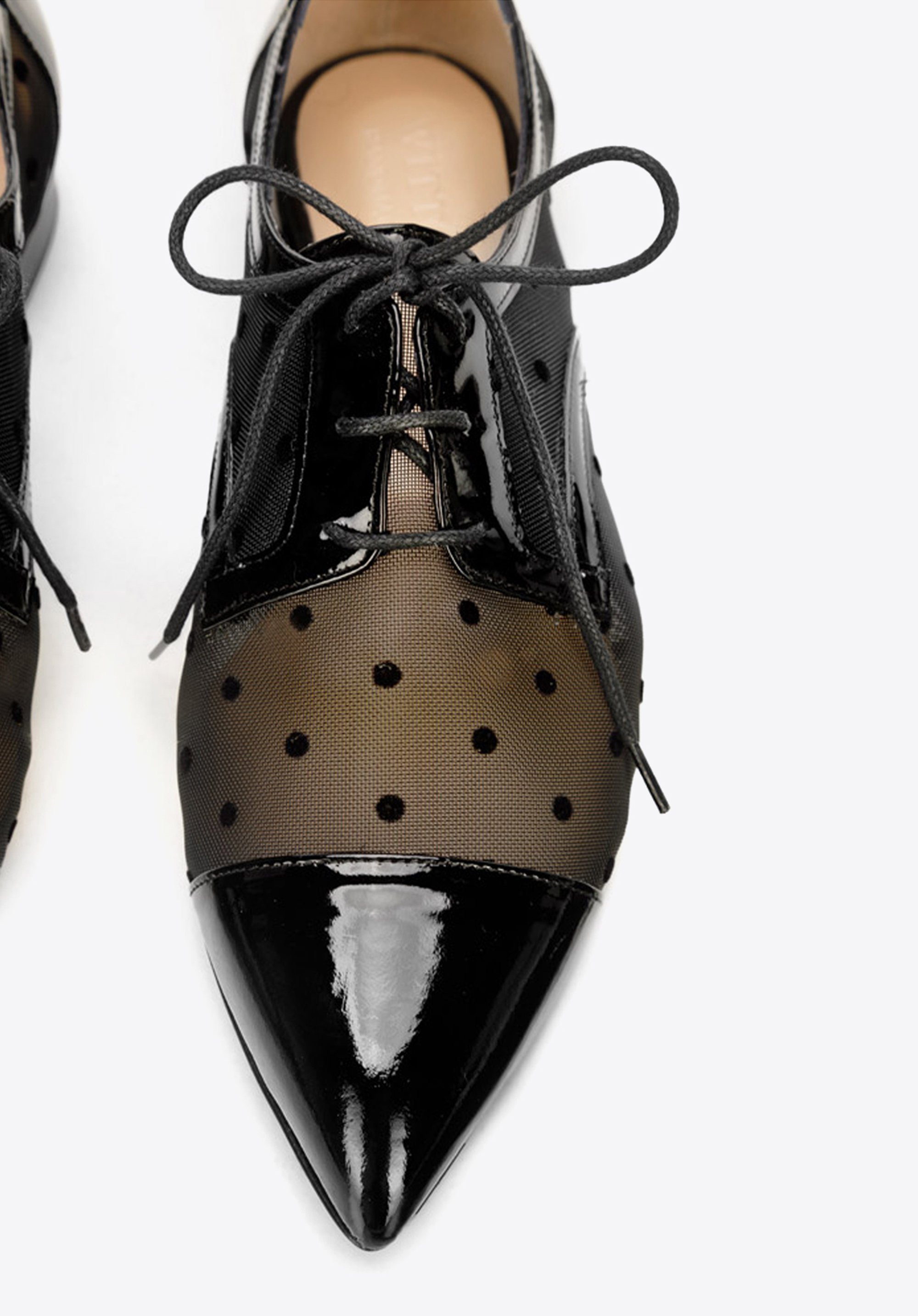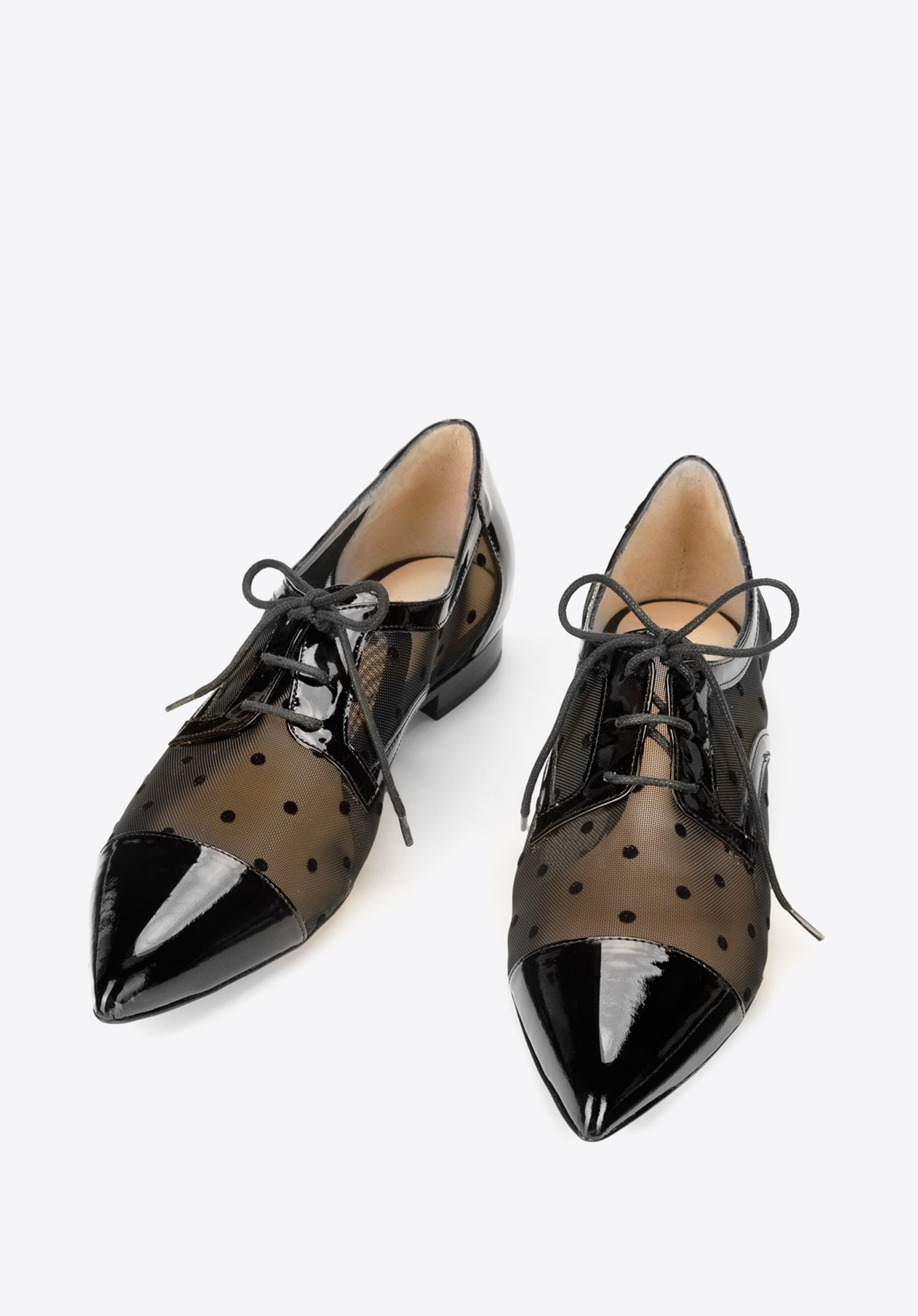 Tyto pohodlné dámské boty jsou inspirovány tanečními botami. Průhlednéboky jsou velmi elegantní. Podpatek je vyroben z lakované kůže. Kožená stélka s měkkou podšívkou postará se o pohodlí. Boty jsou ručně vyrobené z nejkvalitnější prioritní kůže v Itálii.
