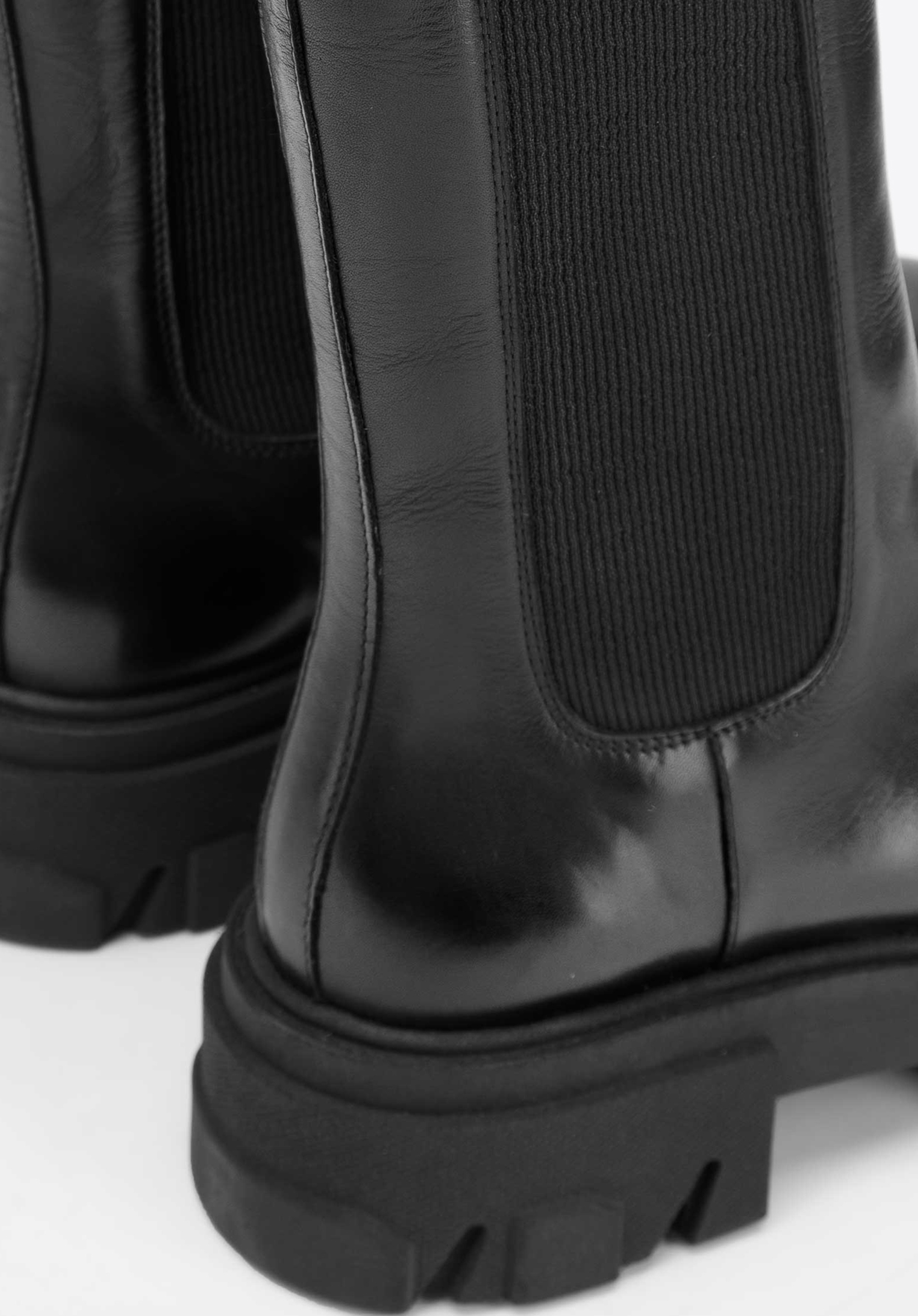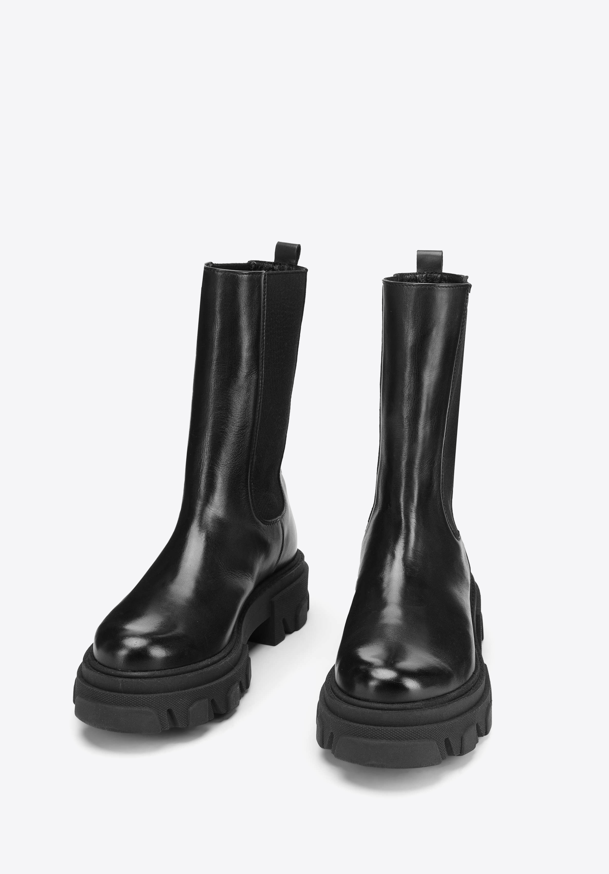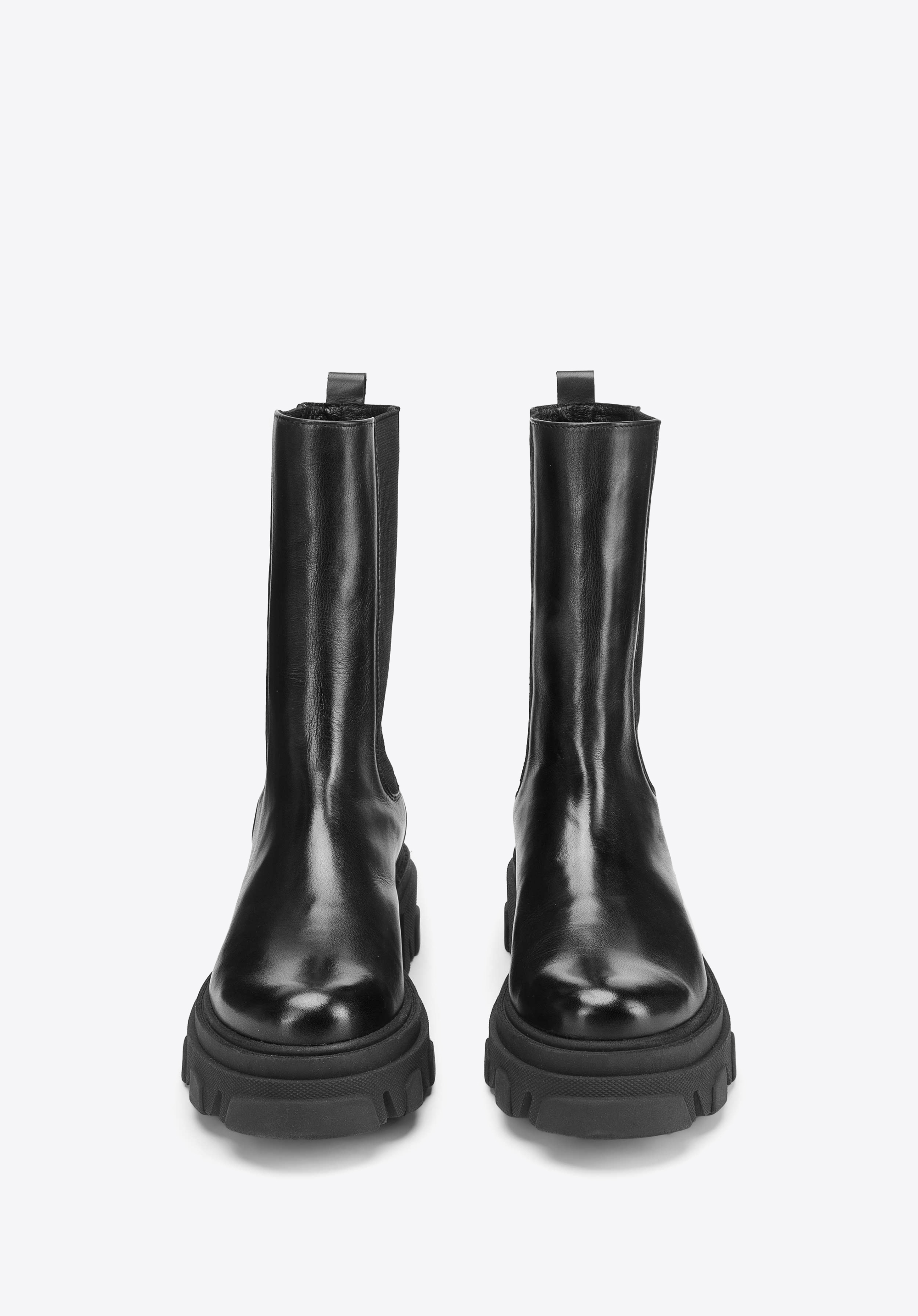 Masivní boty jsou skvělou volbou nejen ke kalhotám, ale i k vzdušným šatům. Byly vyrobené z přírodní kůží nejvyšší kvality. Mají mnohem vyšší svršek než klasické boty a dvě gumičky na bocích. .Podrážka dokonale izoluje od chladu, poskytuje stabilizaci a vypadá stylově. Dámské kožené boty se silnou podrážkou jsou velmi elegantní. Díky nim dodáte moderní vzhled každému obleku.