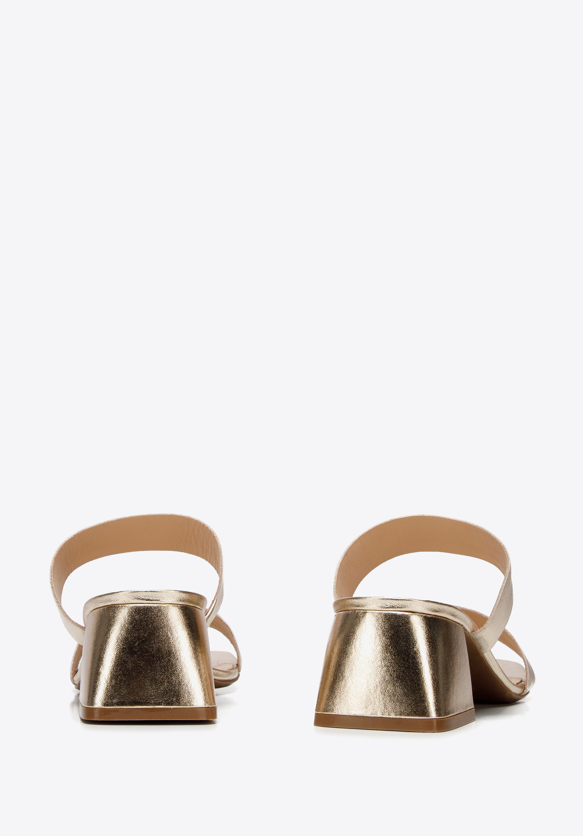 Tyto pohodlné dámské boty jsou určeny na každodenní nošení. Jsou vyrobeny z přírodní kůže s měkkou stélkou. Podpatek má módně střižený tvar a pohodlnou výšku - zdůrazníte postavu a budete pohodlně chodit mnoho hodin. Dva úzké minimalistické pásky pevně drží nohu a opticky ji zeštíhlují. Tento model je univerzální, můžete ho nosit každý den k šatům, stejně jako k džínům a tričku. Dámské kožené boty jsou stylovým doplňkem, který stojí mít za to ve svém šatníku.