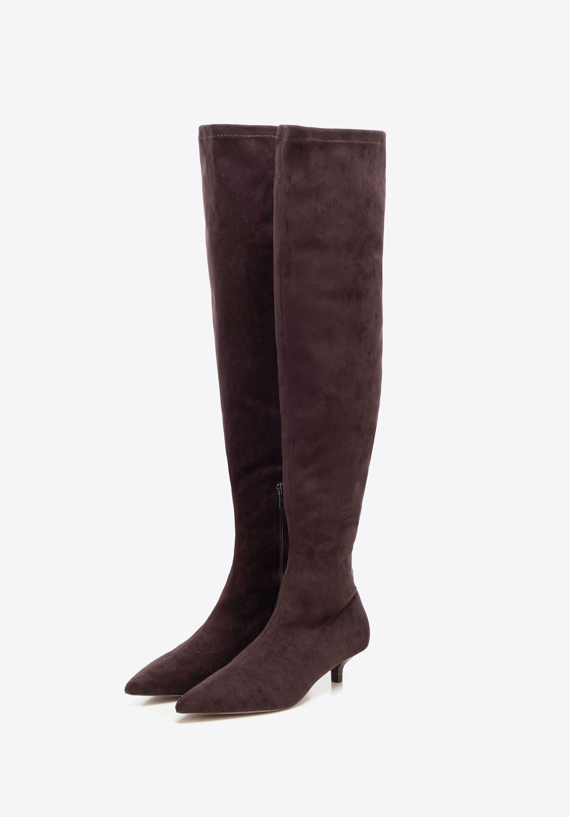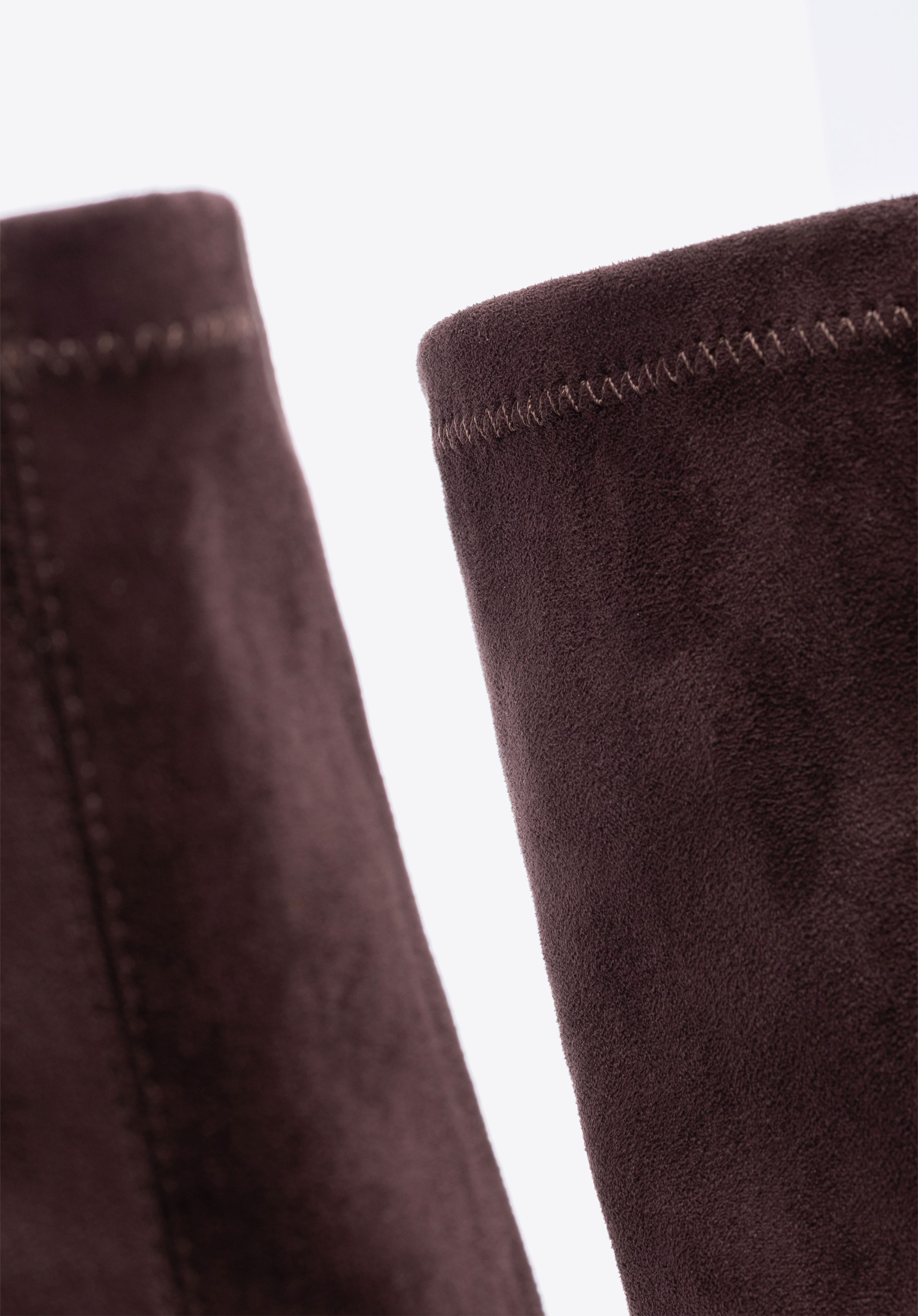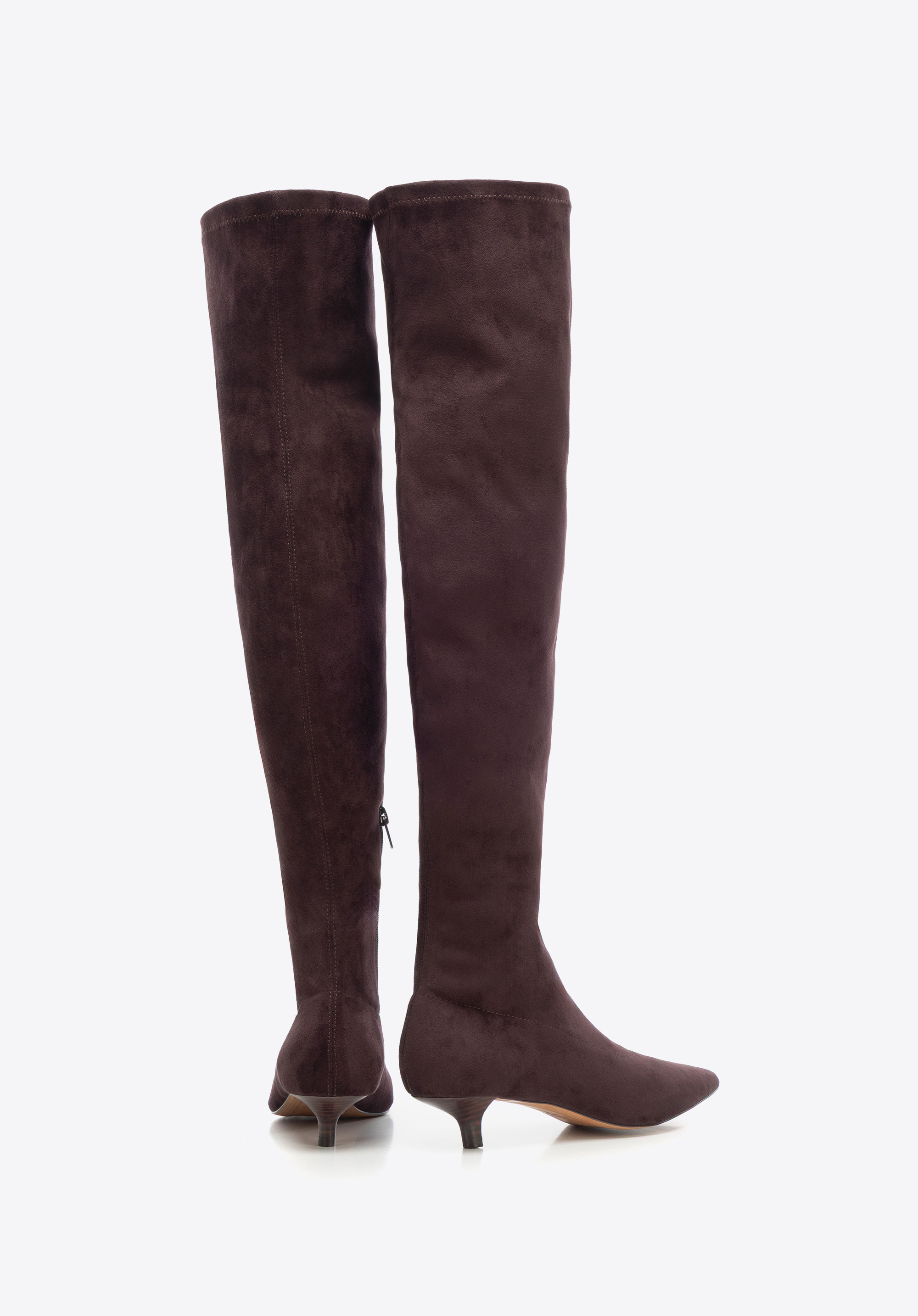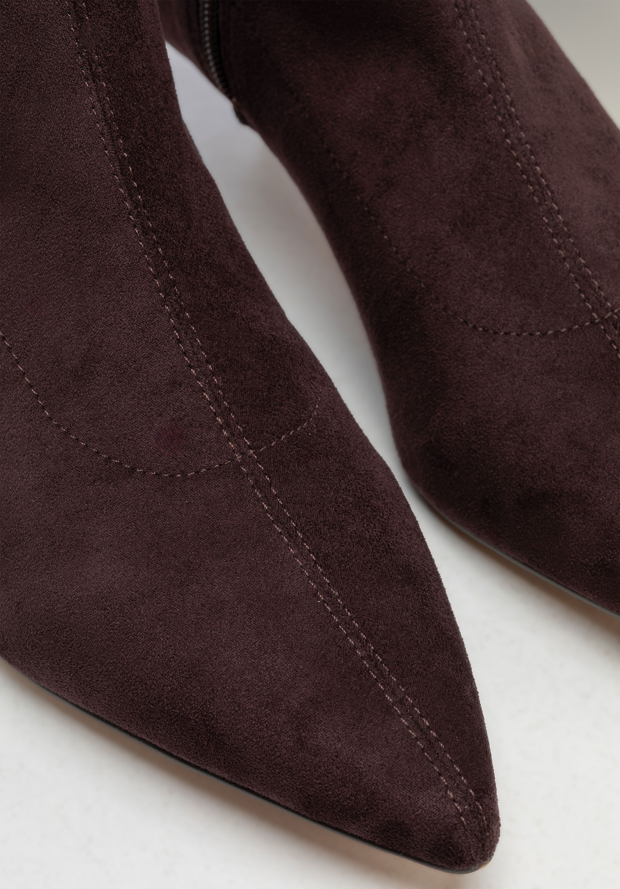 Tyto módní boty kombinují klasickou siluetu s moderními detaily. Přiléhavý svršek krásně zdůrazňuje nohu, zatímco špičatá špička chodidlo zeštíhluje a dodává celkové siluetě nádech lehkosti. Nízký podpatek poskytuje stabilitu a pohodlí po celý den, zatímco ozdobné prošívání dodává nádech elegance a stylu. Jedná se o perfektní styl pro ženy, které si cení kombinace elegance a pohodlí – kozačky, které dokonale doplní každodenní i sofistikovanější outfity.