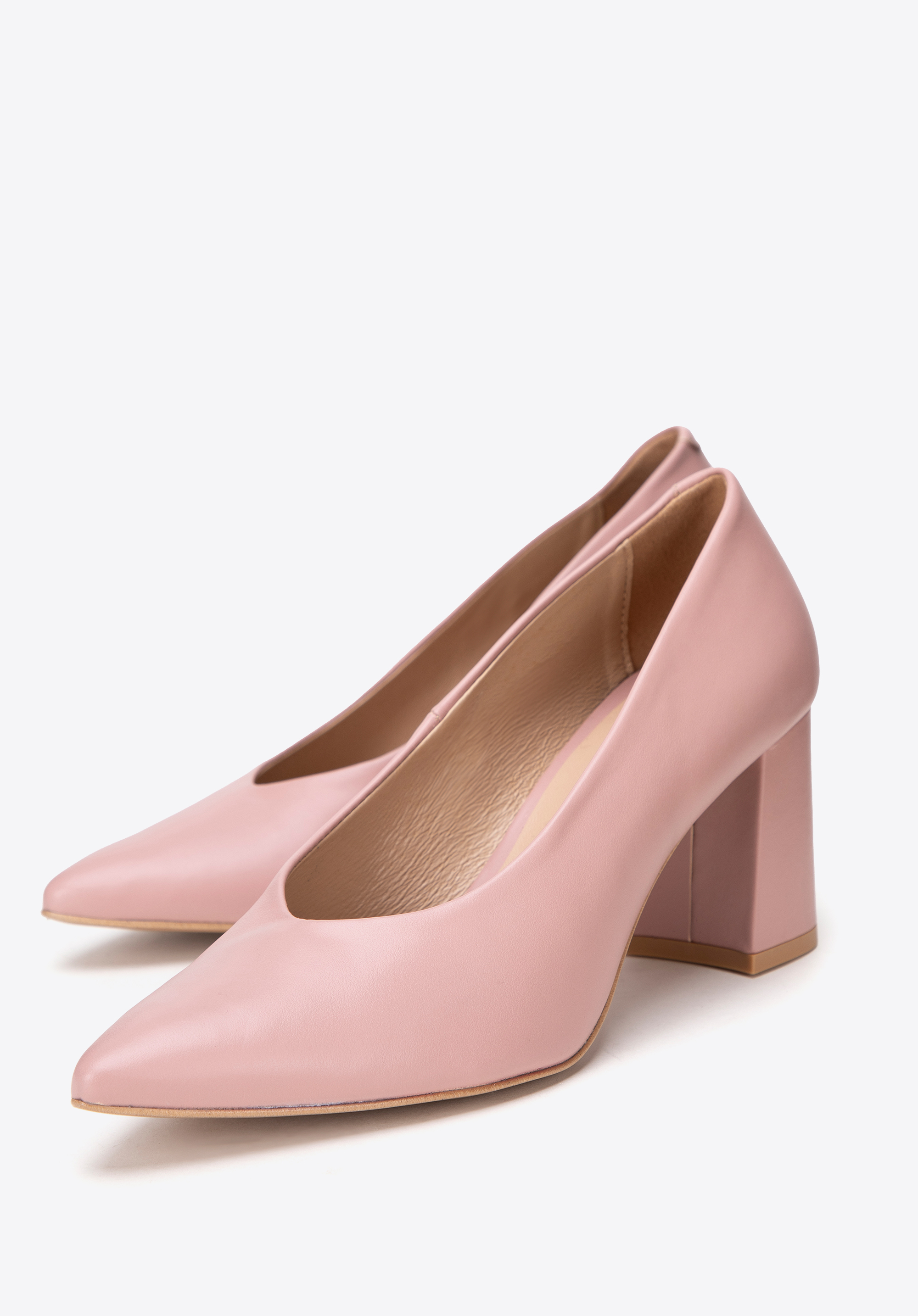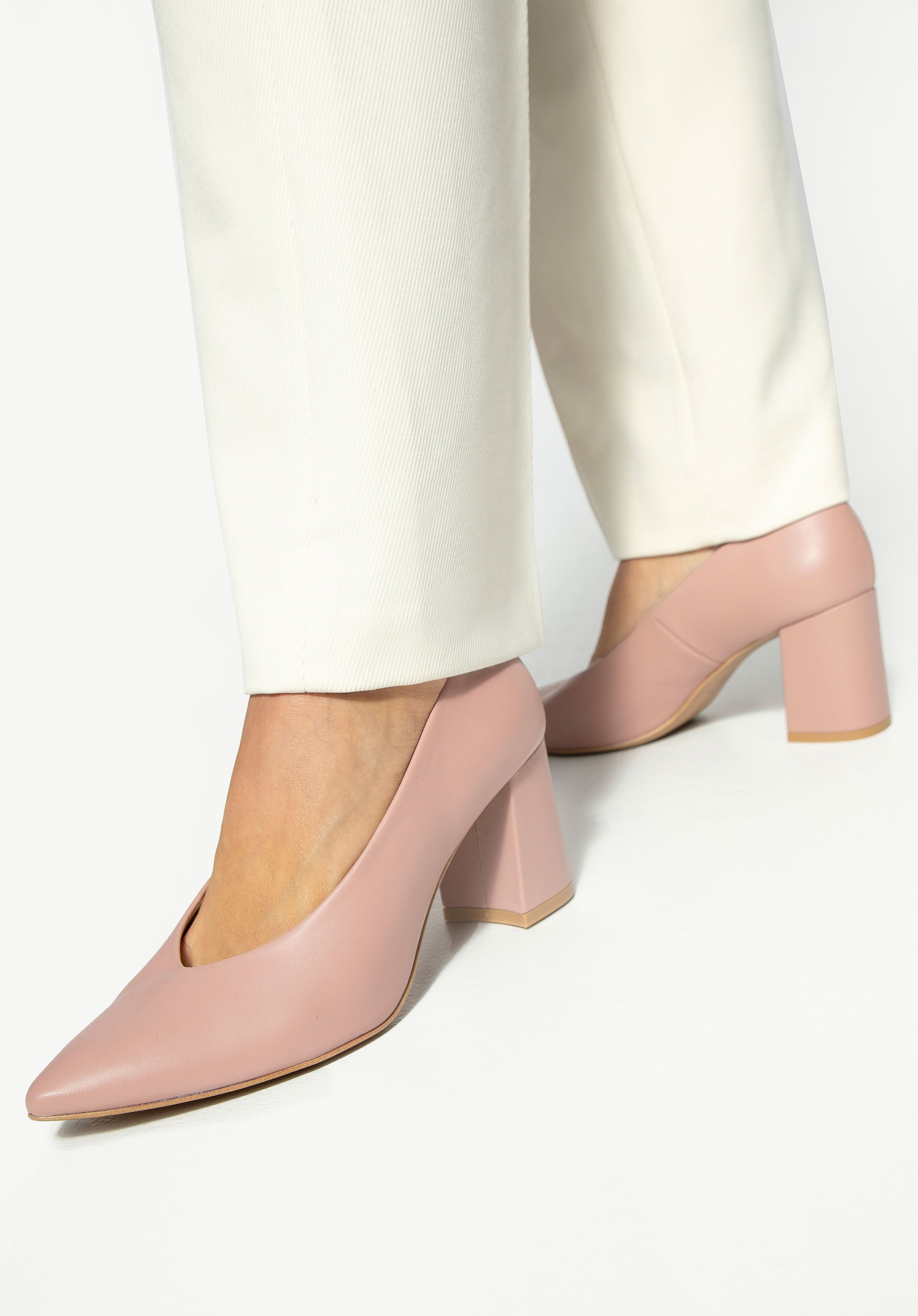 Dámské kožené kurty s blokovým podpatkem Barva: růžová