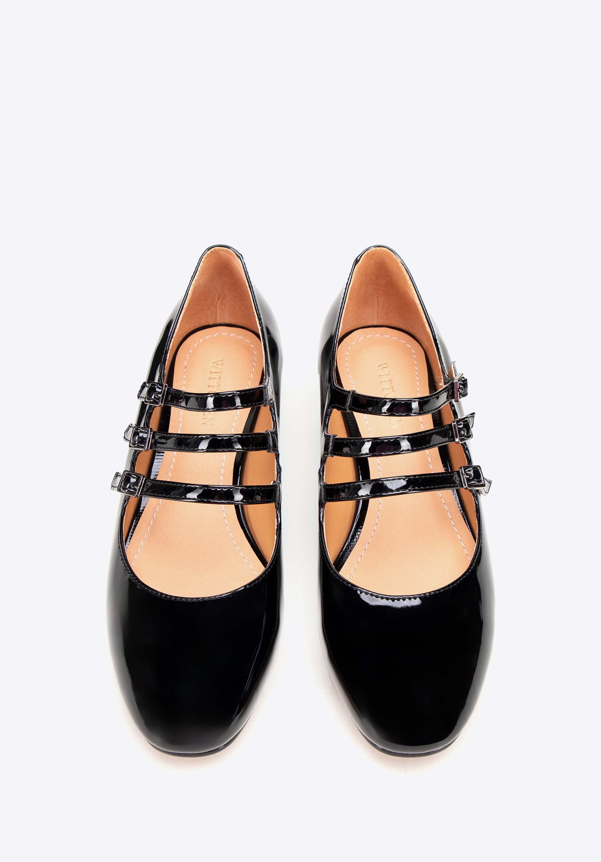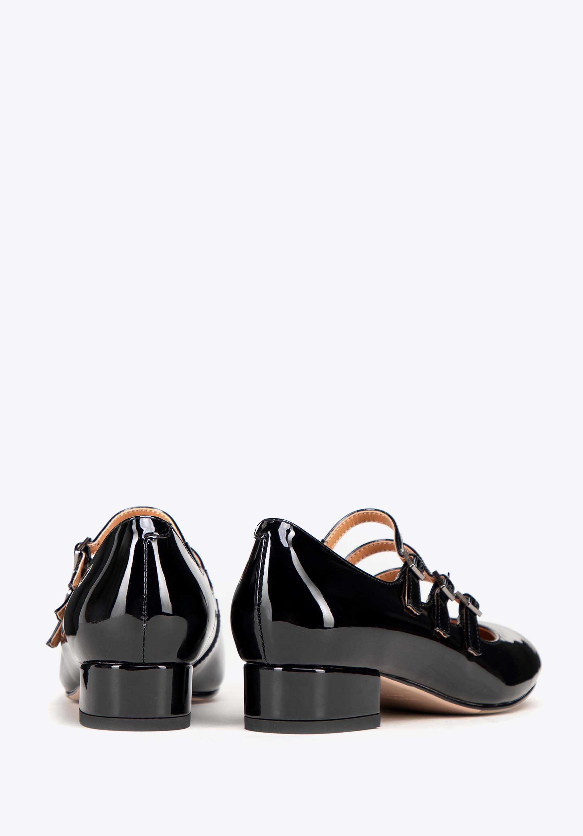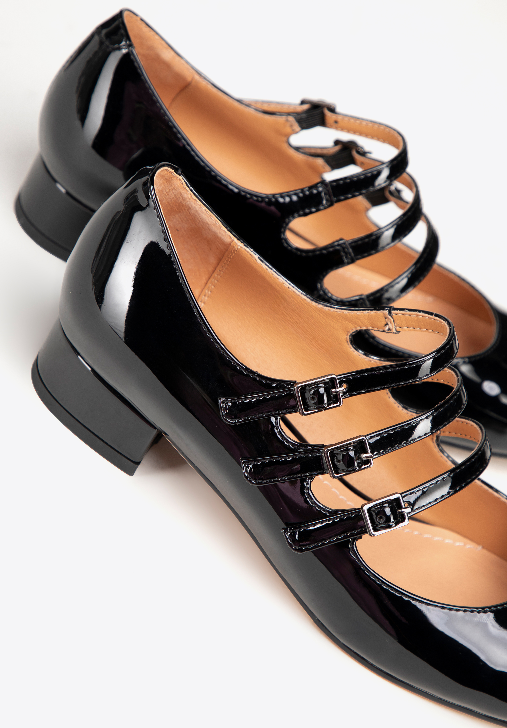 Objevte eleganci a pohodlí s těmito jedinečnými dámskými lakovanými botami. Jsou perfektní volbou pro každou moderní ženu, která chce spojit styl s pohodlím. Stabilní podpatek v podobě kvádru dodává nejen eleganci, ale zajišťuje i jistý krok a každodenní pohodlí. Zapínají se na tři úzké pásky, co umožňuje individuální nastavení a zaručuje stabilitu při nošení. Tato kombinace stylu, pohodlí a praktičnosti z nich dělá perfektní volbu pro každou moderní ženu.