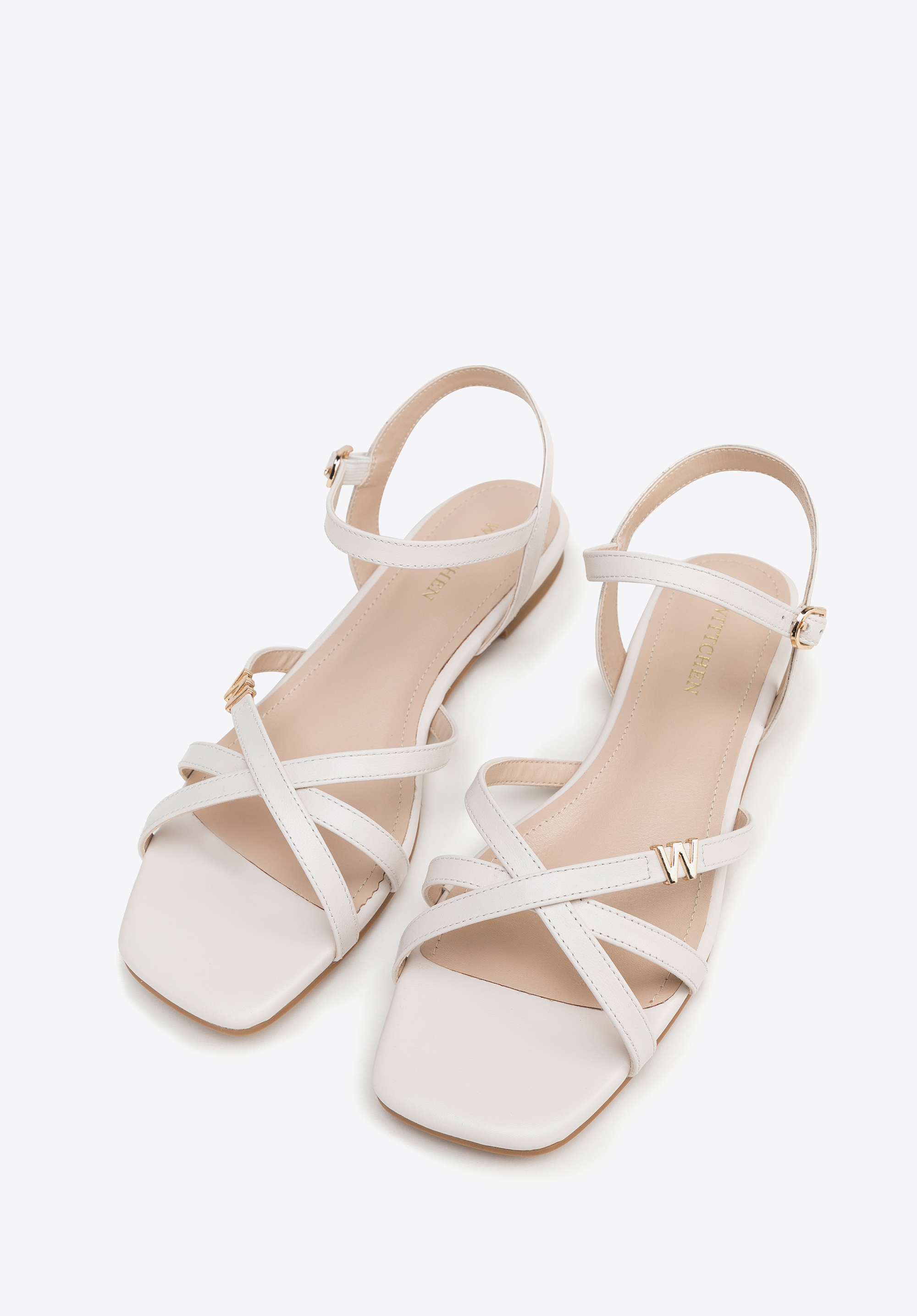 Dámské kožené sandály s křížovým páskem Barva: krémová
