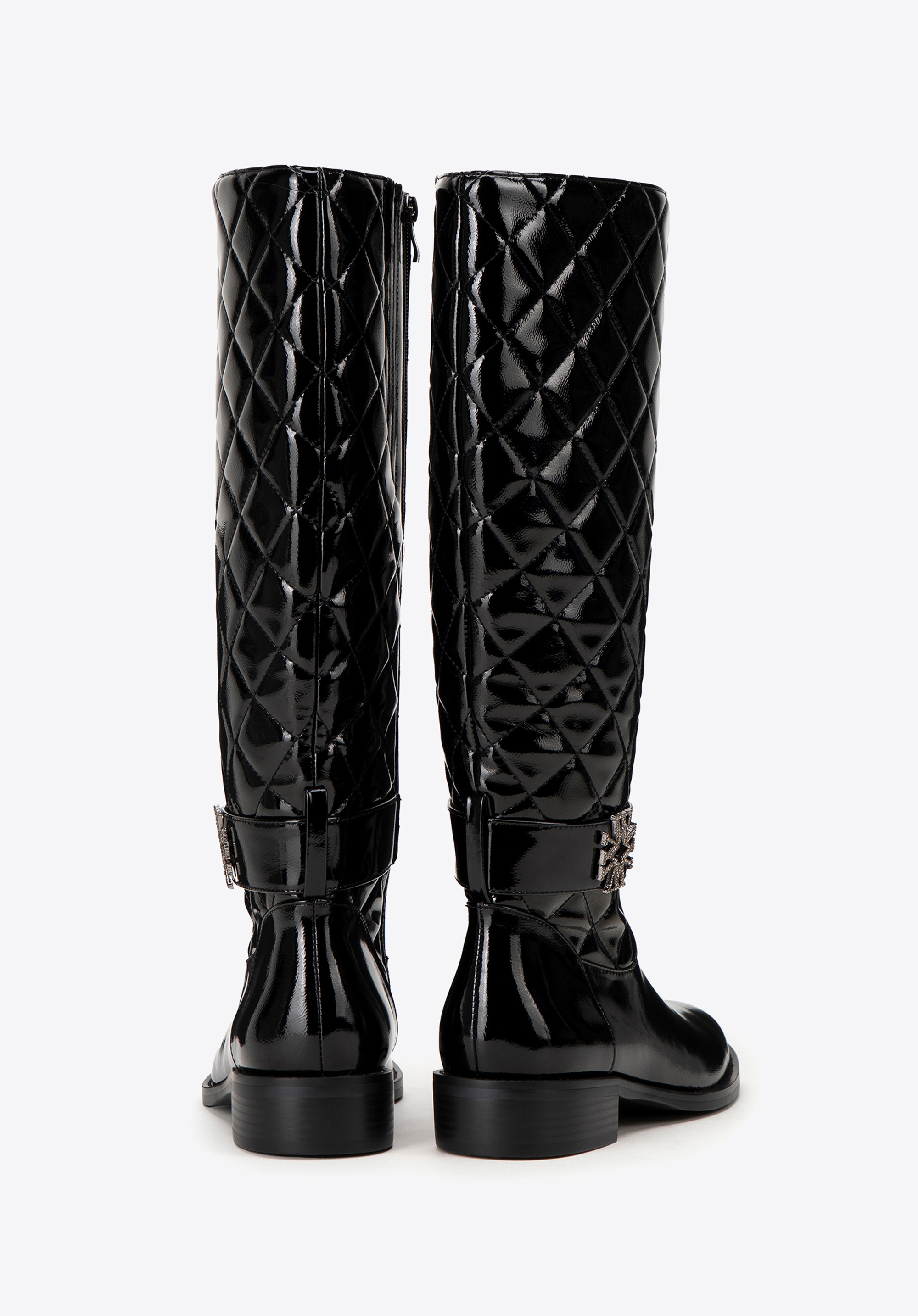 Tyto dámské kozačky jsou esencí pohodlí a elegance, určené pro ženy, které cení styl i pohodlí. Jsou vyrobeny z nejkvalitnější přírodní kůže, zaručují odolnost po léta. Klasický střih je obohacen o prošívaný svršek a stylový pásek do výšky lýtek s ozdobou v podobě propletených písmen "W", která odkazují na značku WITTCHEN. Tyto ploché boty jsou univerzálním doplňkem, který by měl být v každém šatníku.