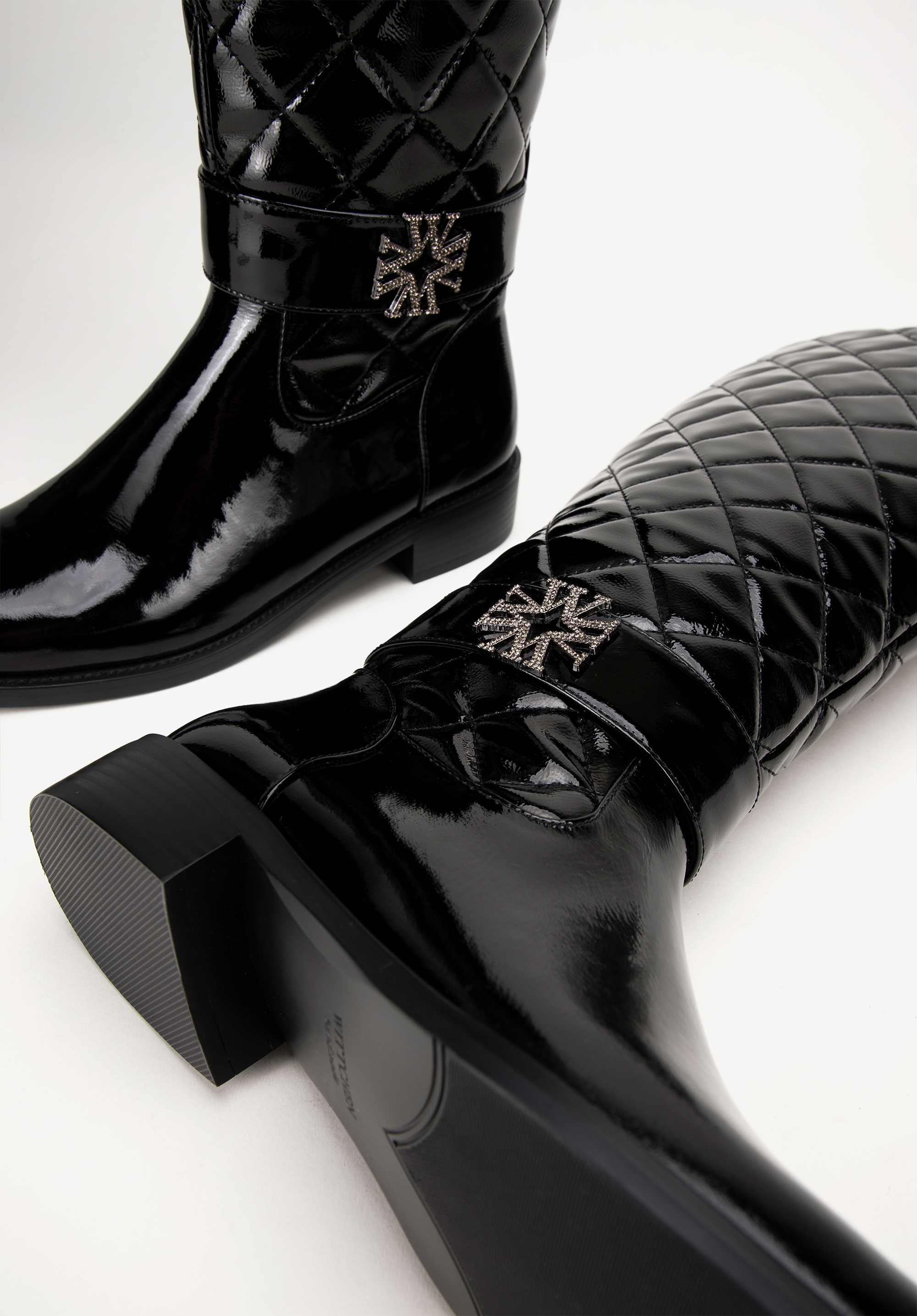 Design: Prošívaný svršek dodává eleganci a pásek s křišťálovou přezkou z propletených písmen "W" odkazuje na značku WITTCHEN.